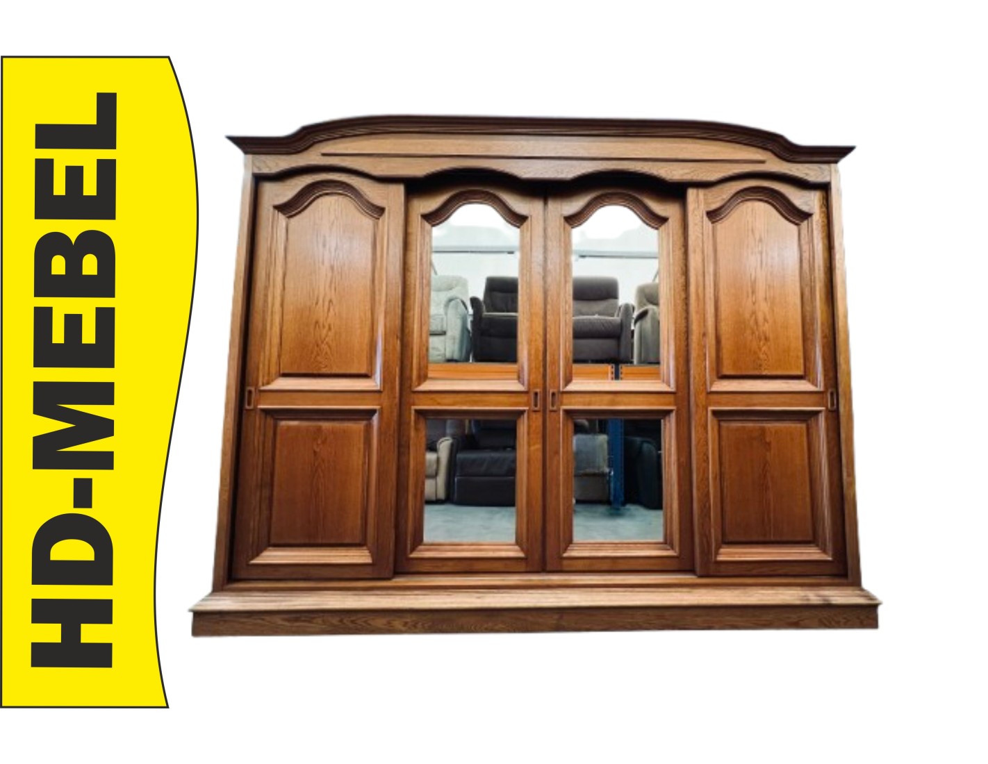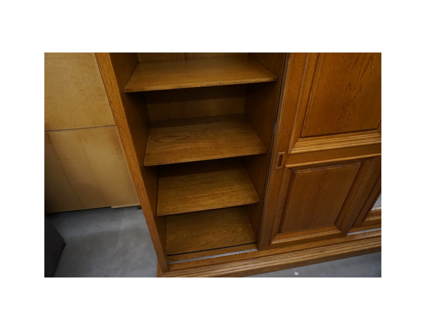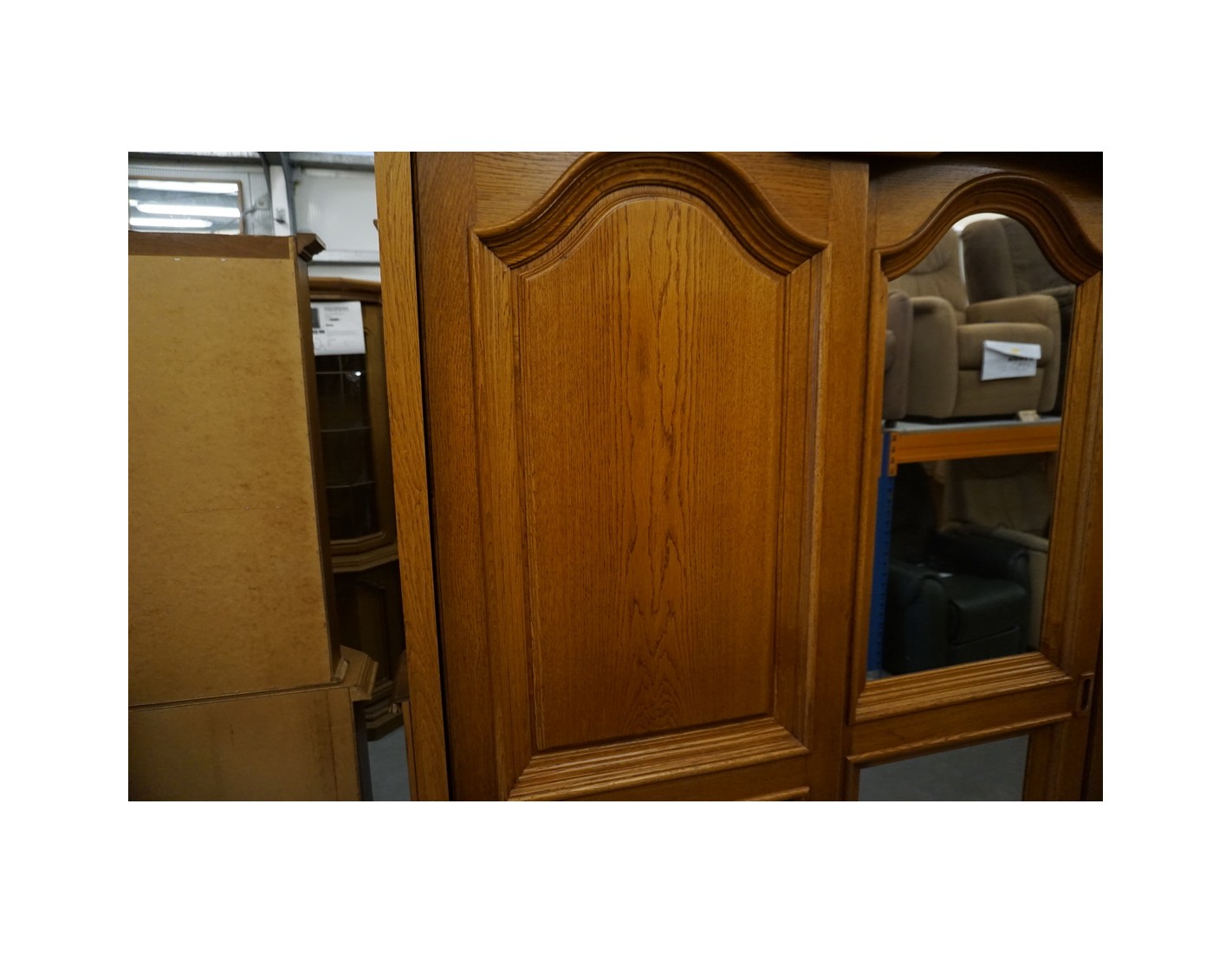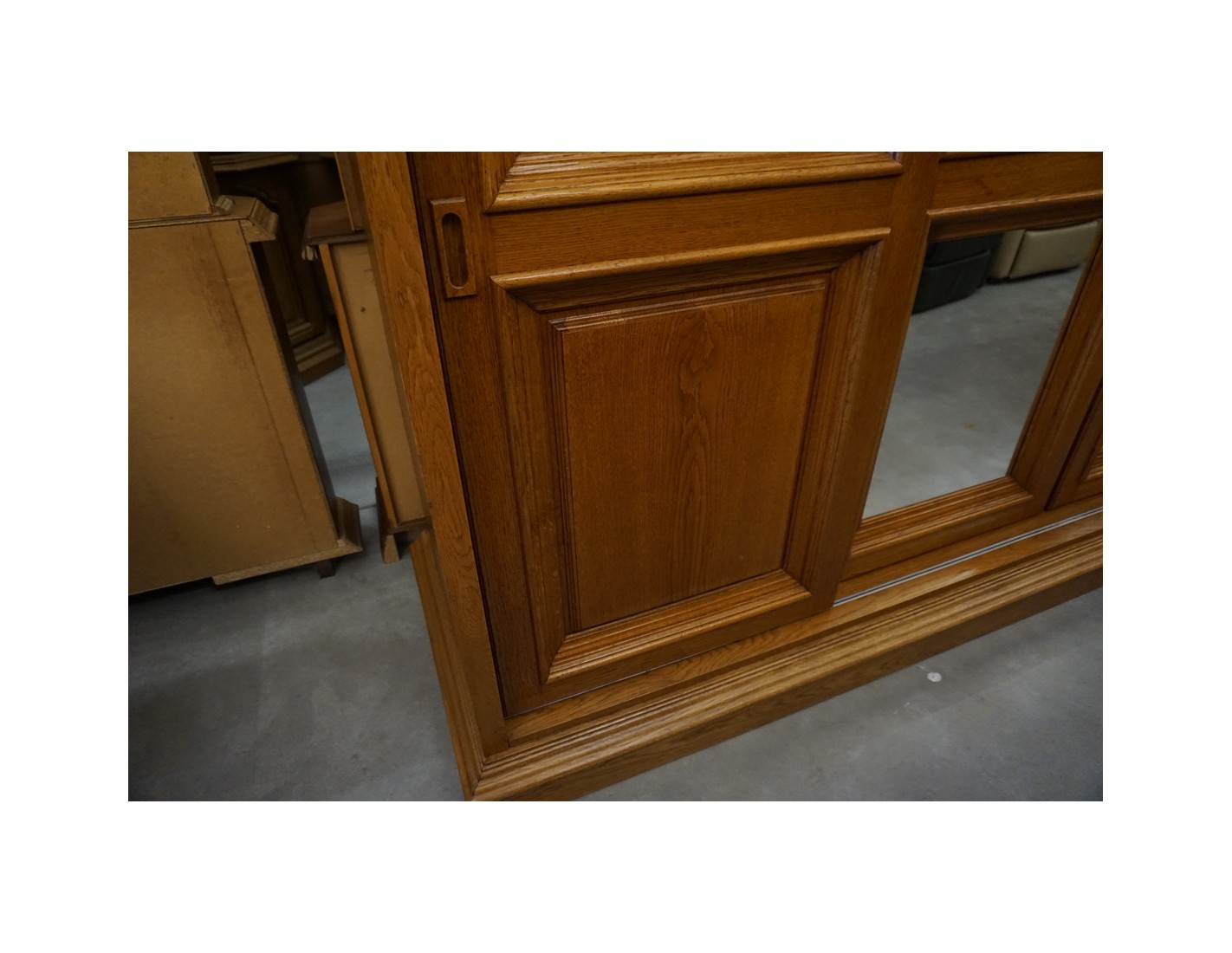 DUŻA SZAFA DĘBOWA Z LUSTREM I DRZWIAMI PRZESUWNYMI