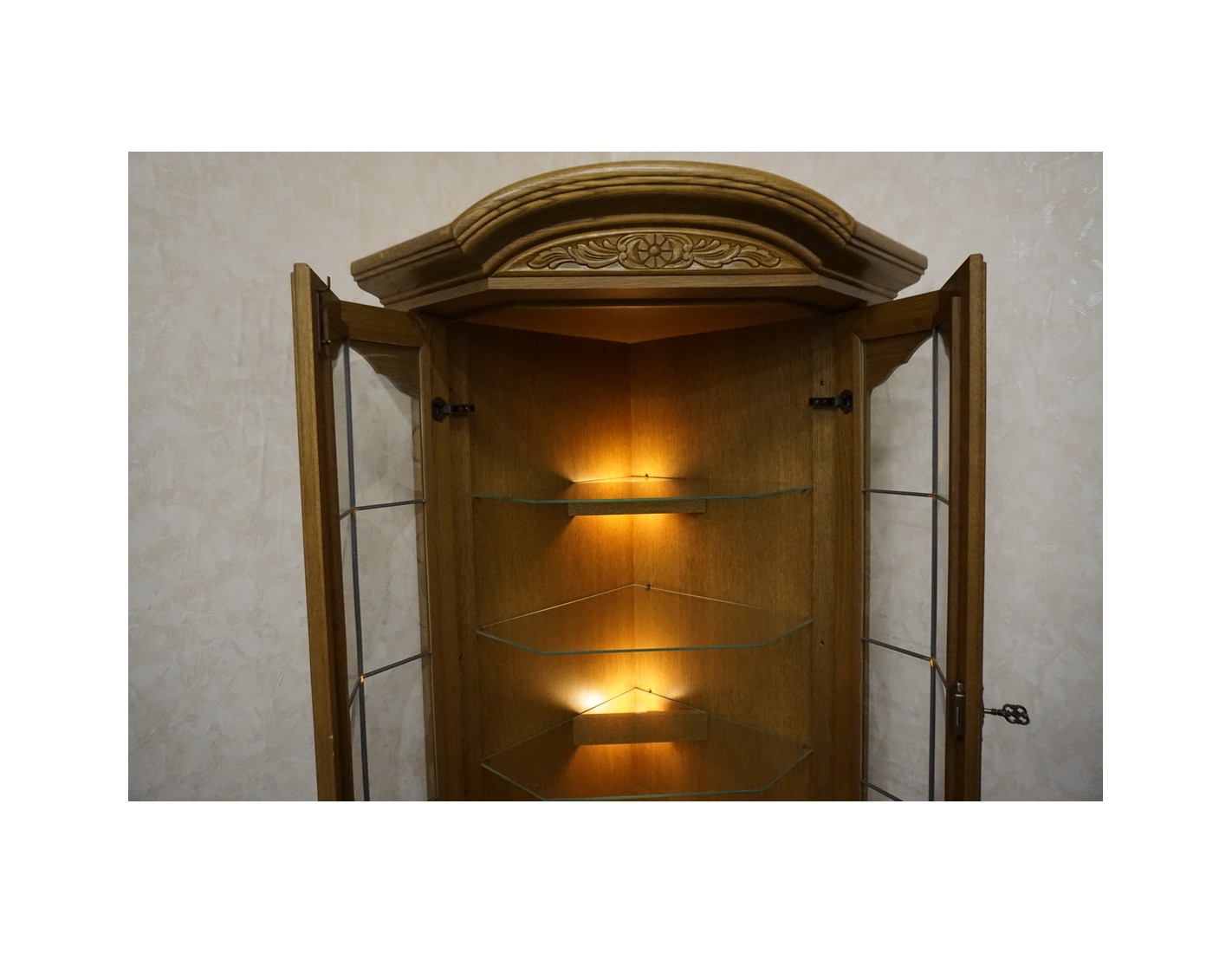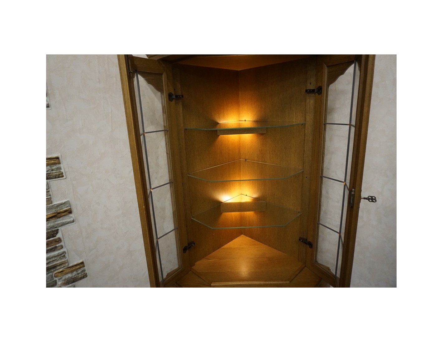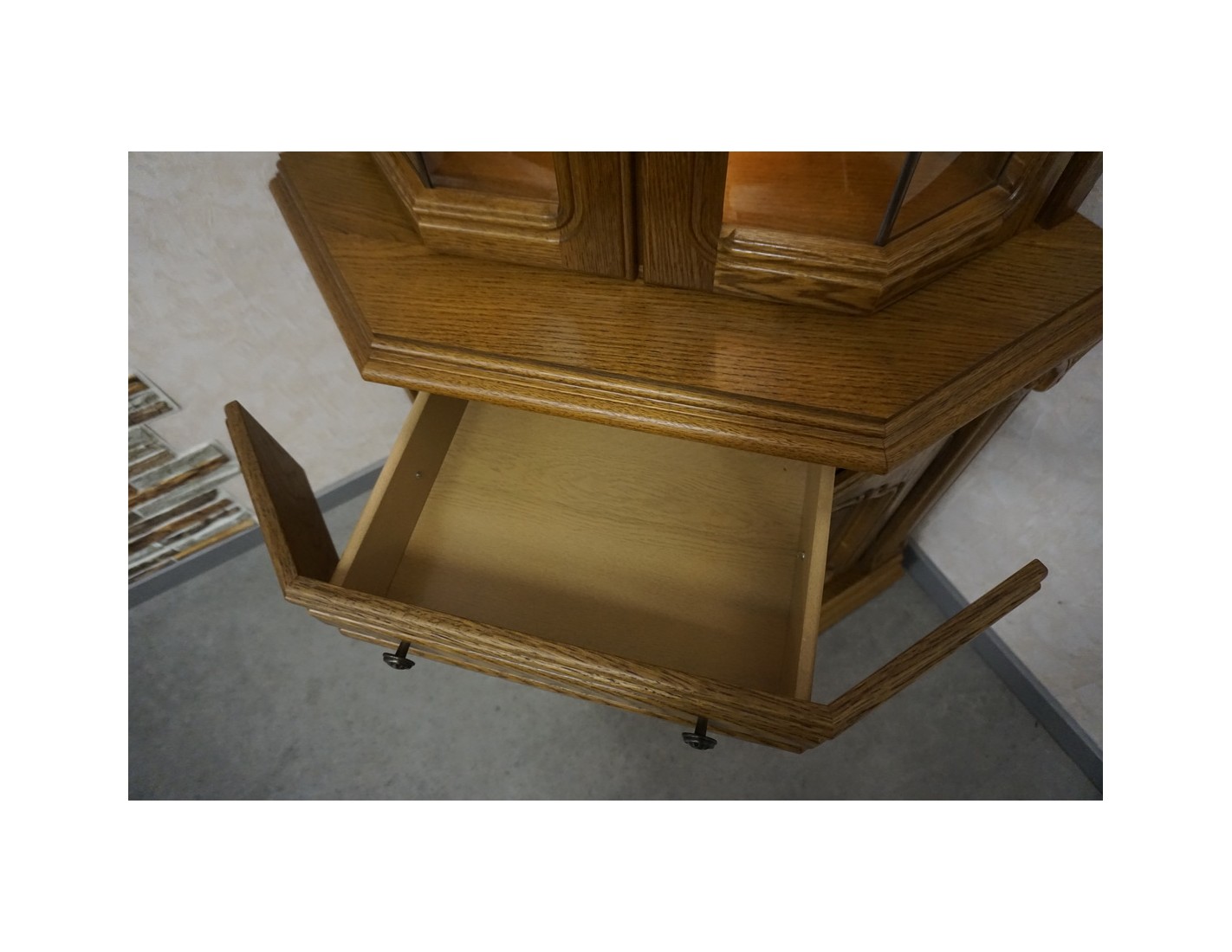 Witryna Narożna Dębowa Podświetlana z 1 Szufladą