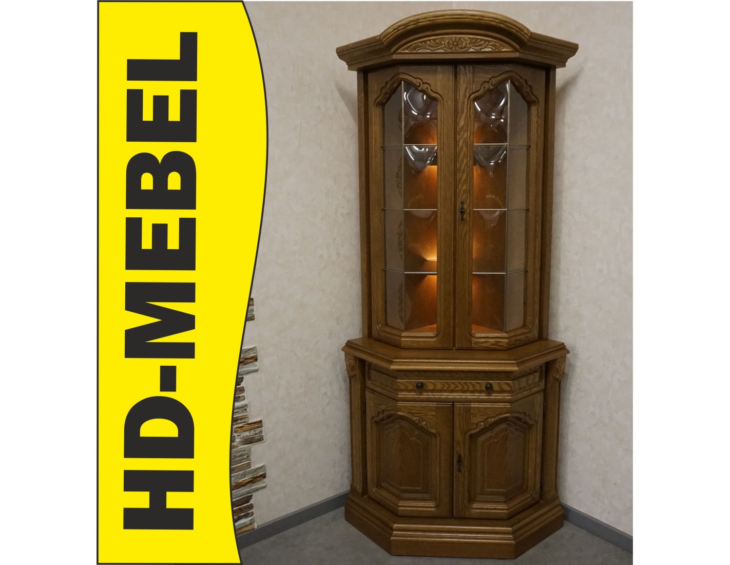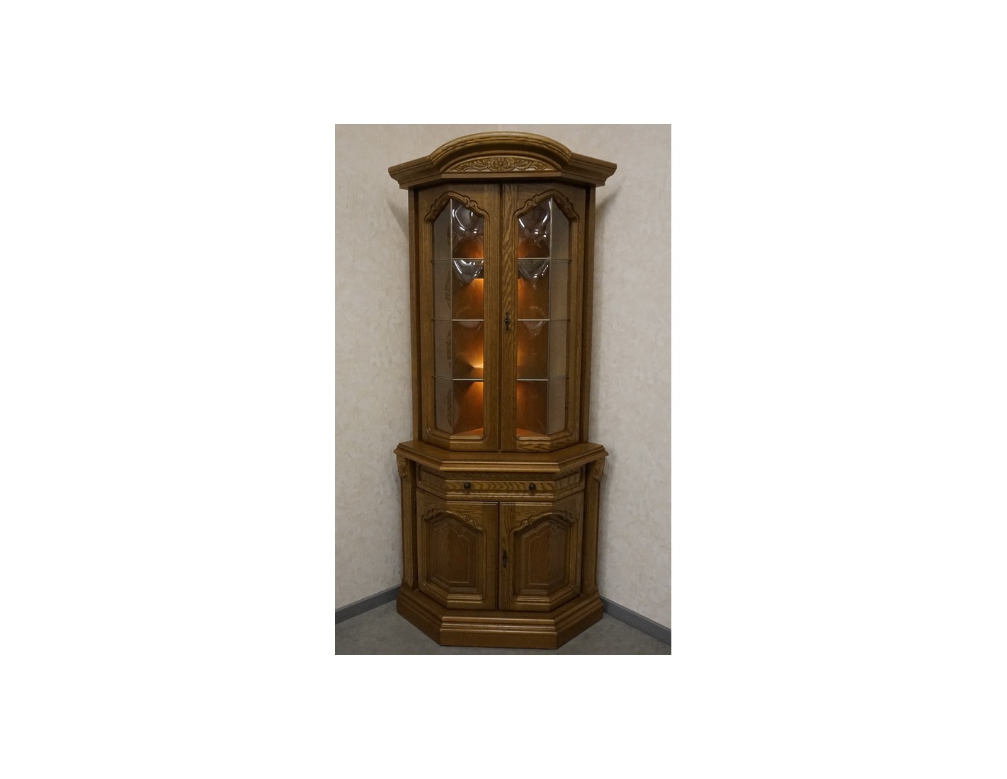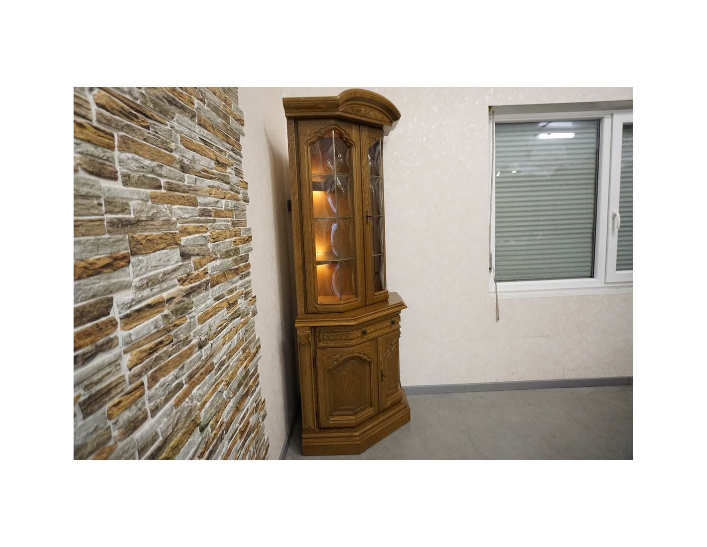 Witryna Narożna Dębowa Podświetlana z 1 Szufladą