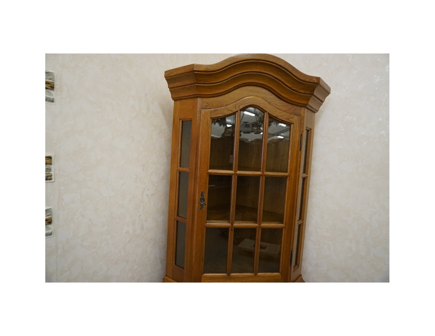 Praktyczna i elegancka witryna dębowa narożna to doskonałe rozwiązanie do zagospodarowania wolnego kąta w salonie, jadalni lub gabinecie. Dzięki swojej narożnej konstrukcji zajmuje niewiele miejsca, jednocześnie oferując funkcjonalną przestrzeń do przechowywania. Posiada dwie drzwiczki oraz praktyczną szufladę w dolnej części.