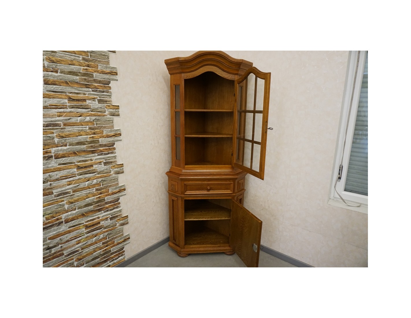 WITRYNA DĘBOWA NAROŻNA Z SZUFLADĄ