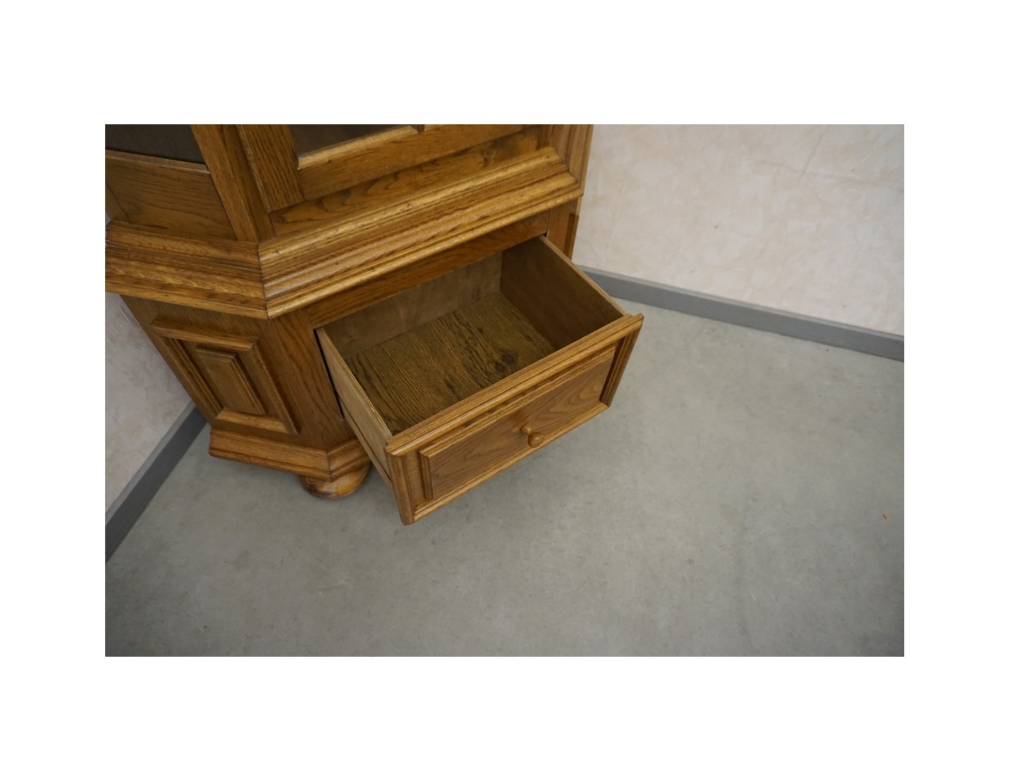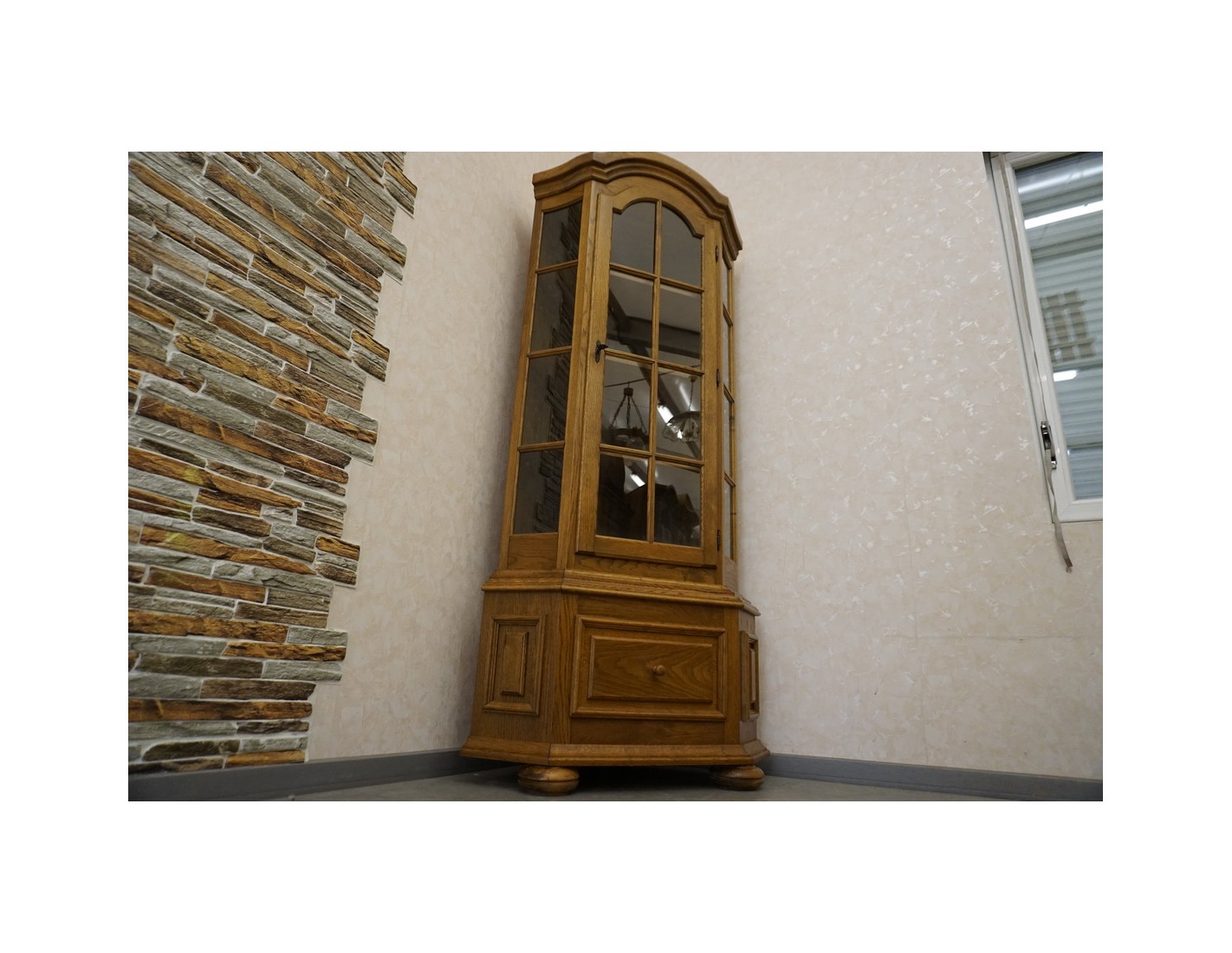 Stylowa witryna narożna, idealna do eleganckich wnętrz, w których liczy się funkcjonalność i estetyka. Dzięki kompaktowej formie doskonale wykorzystuje przestrzeń narożną, zapewniając jednocześnie miejsce do ekspozycji zastawy, szkła lub dekoracji.