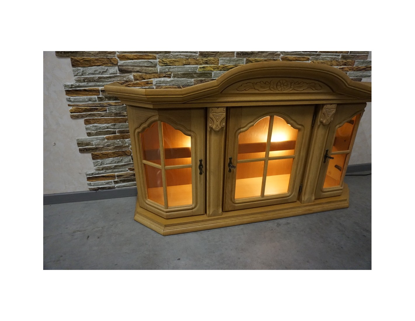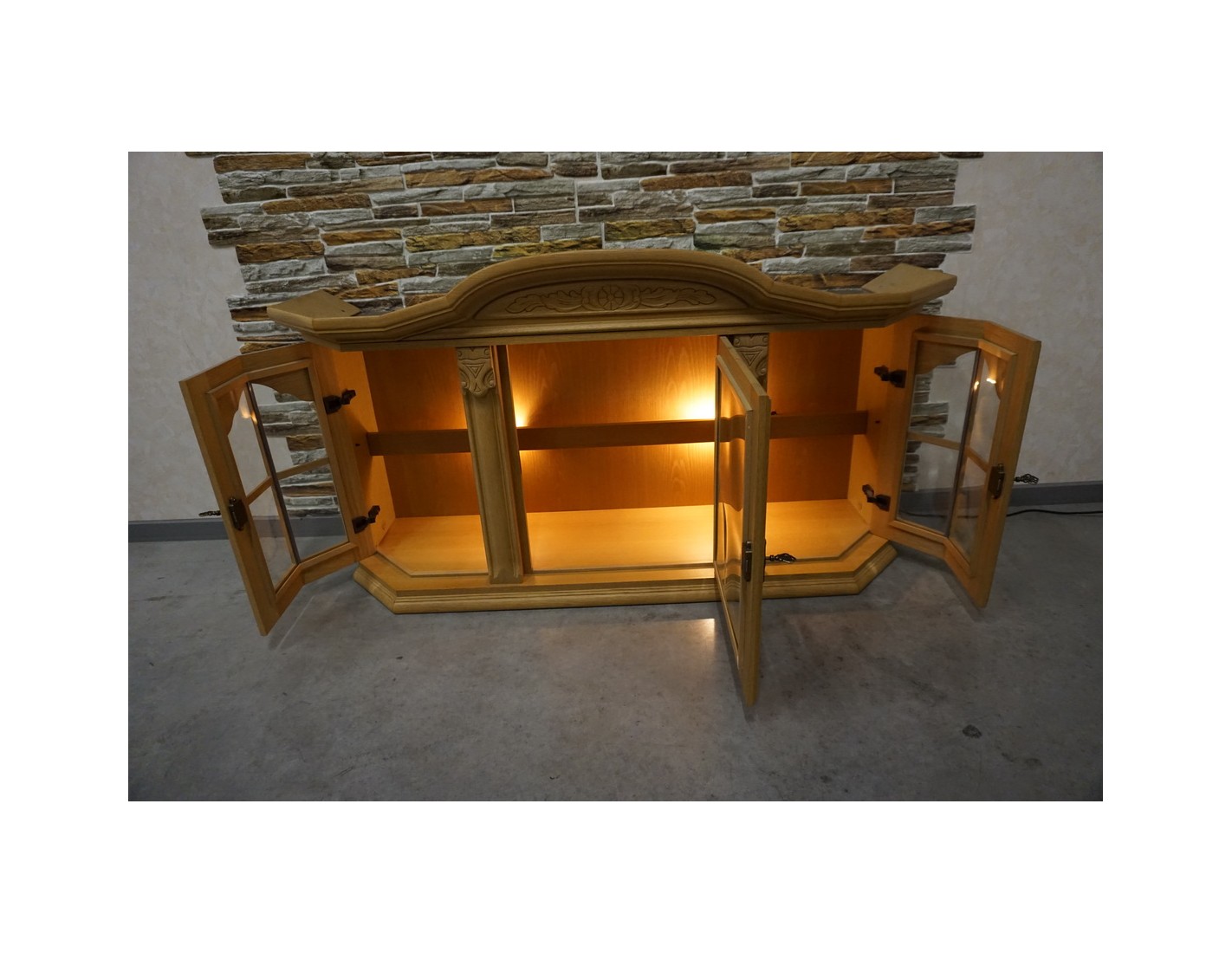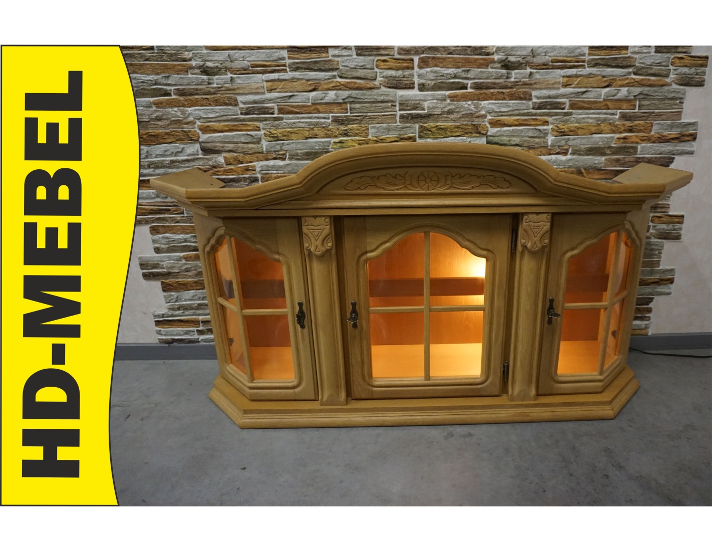Witrynka Wisząca Jasny Dąb Podświetlana, 3 Drzwiczki