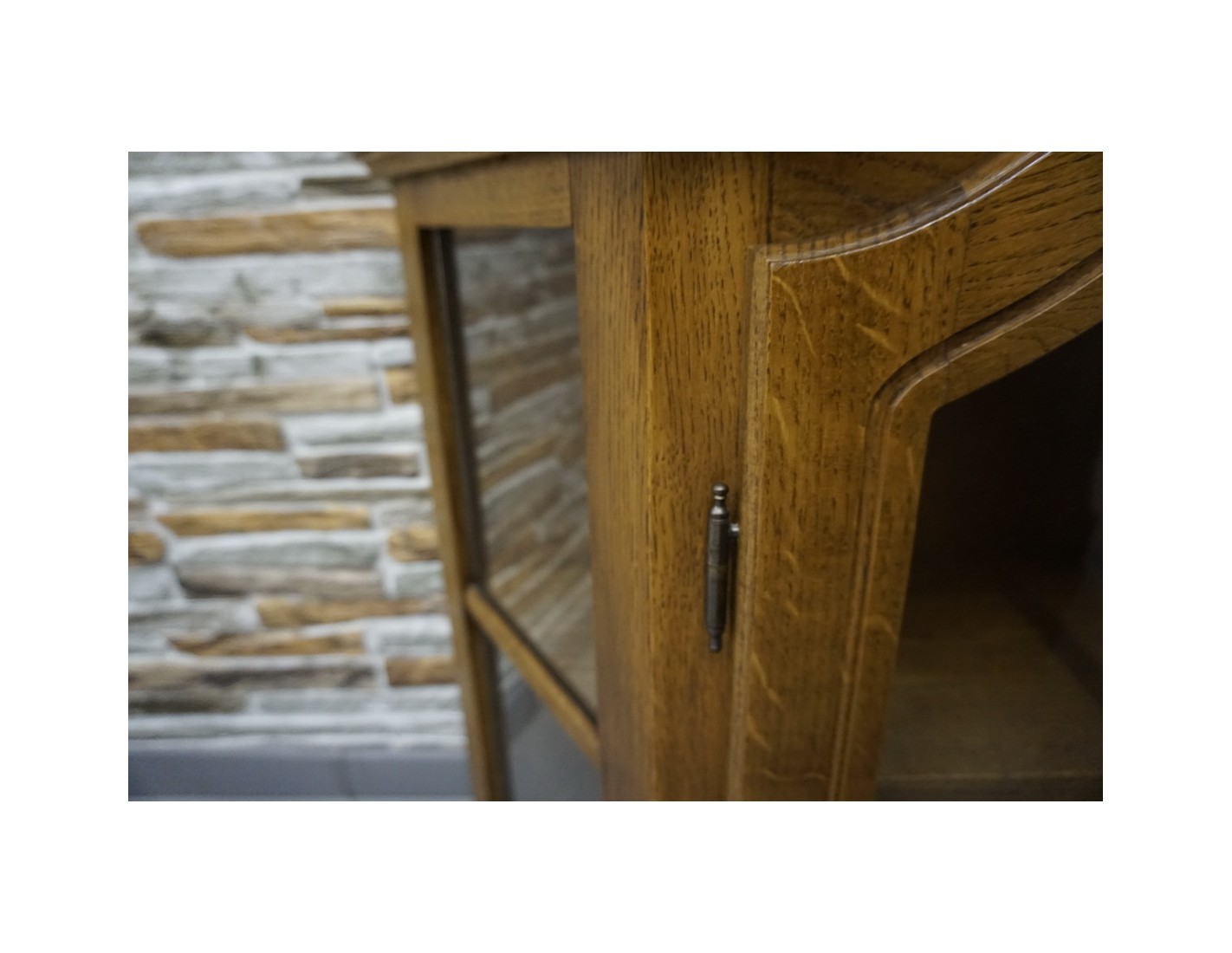 Witrynka stanowi doskonałe uzupełnienie zestawu mebli dębowych lub samodzielny element wyposażenia wnętrza.