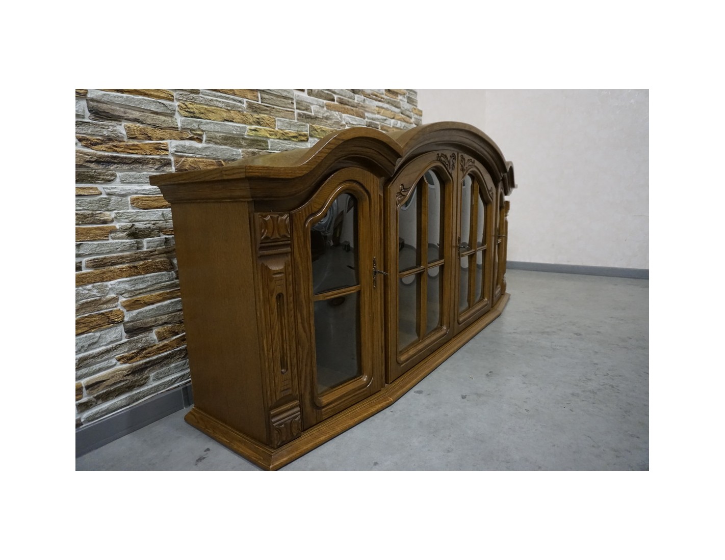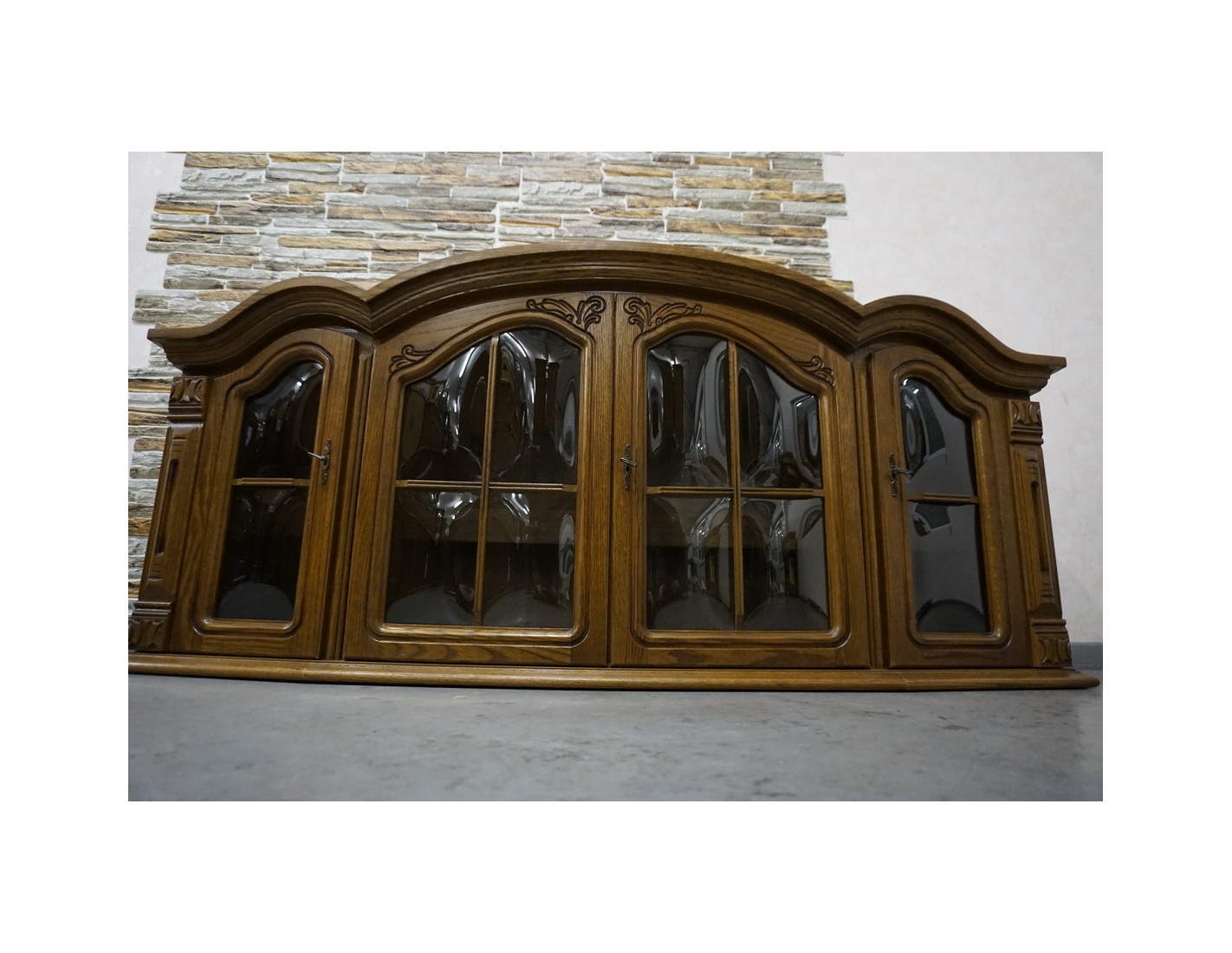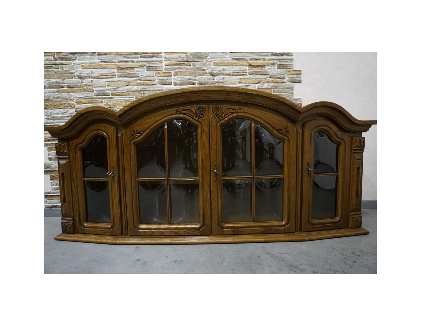 Elegancka i funkcjonalna witrynka wisząca wykonana z dębu, idealna do salonu, jadalni lub kuchni. Dzięki większej szerokości oferuje dużo miejsca do przechowywania i estetycznej ekspozycji szkła, porcelany lub dekoracji.