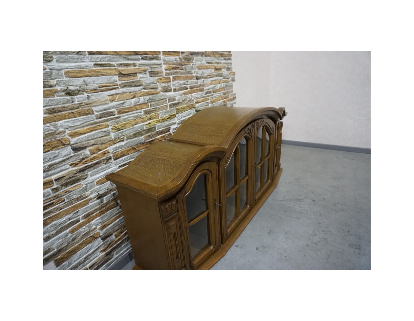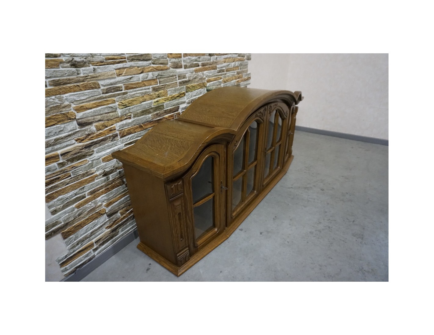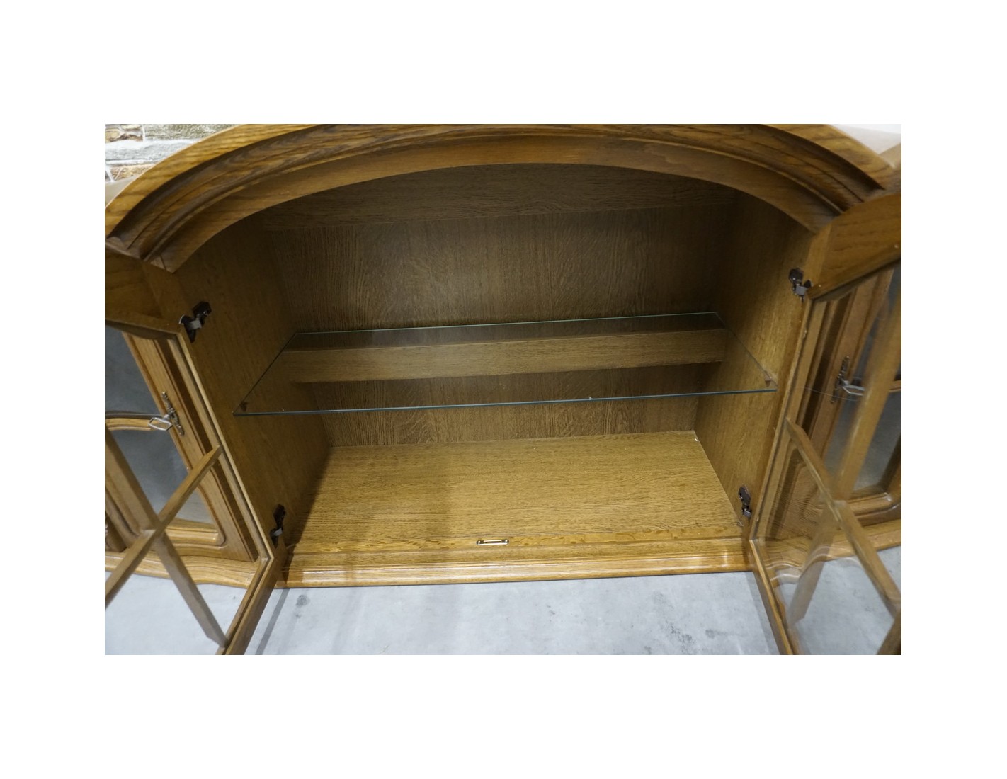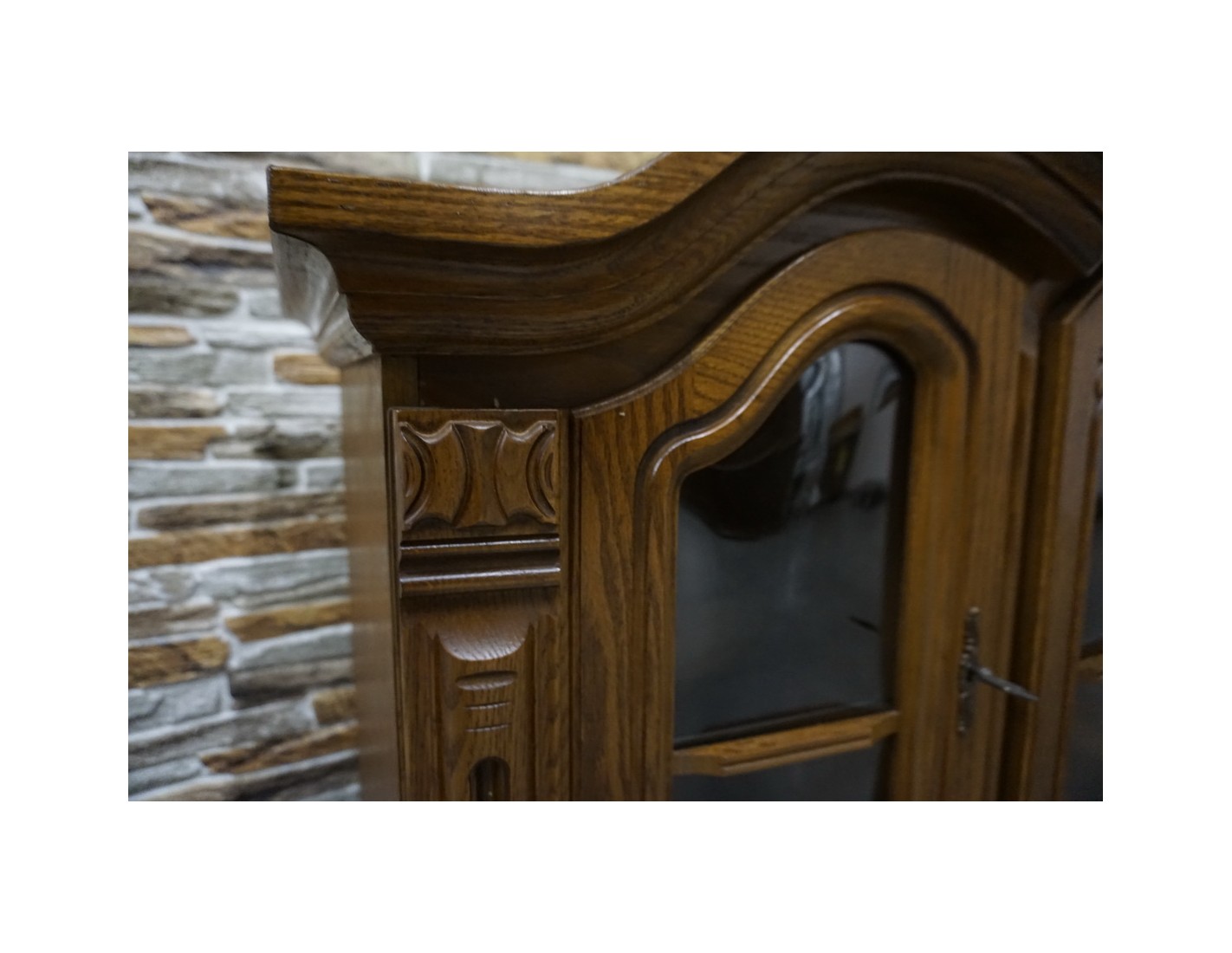 Elegancka i funkcjonalna witrynka wisząca wykonana z dębu, idealna do salonu, jadalni lub kuchni. Dzięki większej szerokości oferuje dużo miejsca do przechowywania i estetycznej ekspozycji szkła, porcelany lub dekoracji.