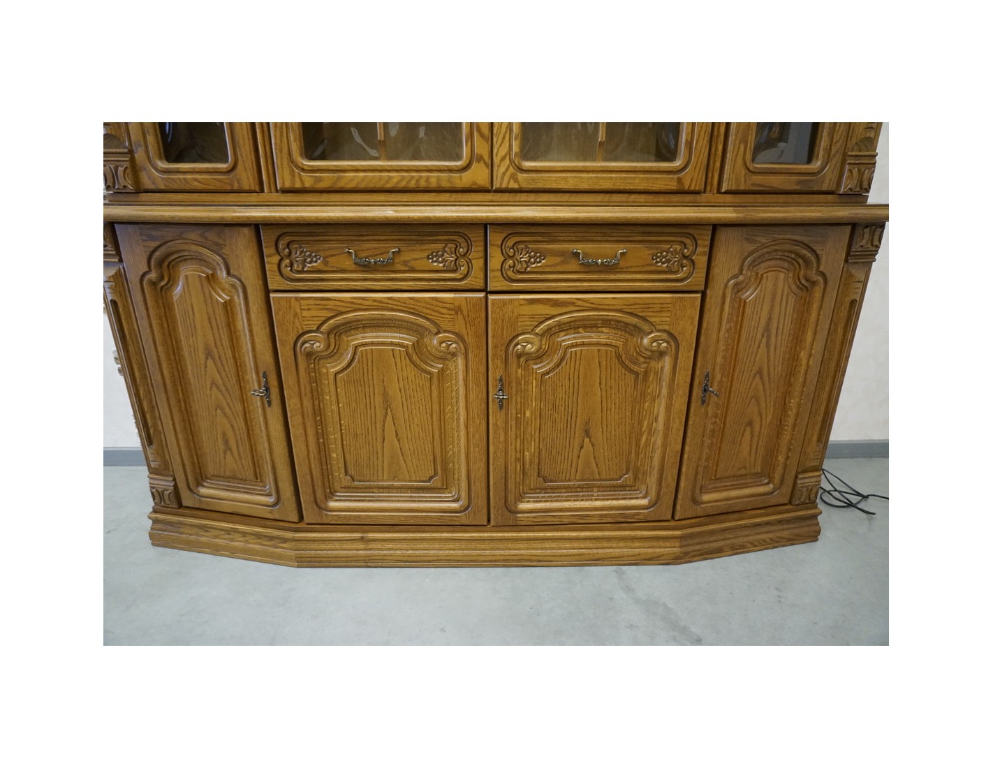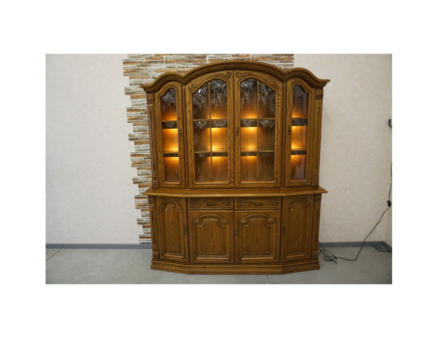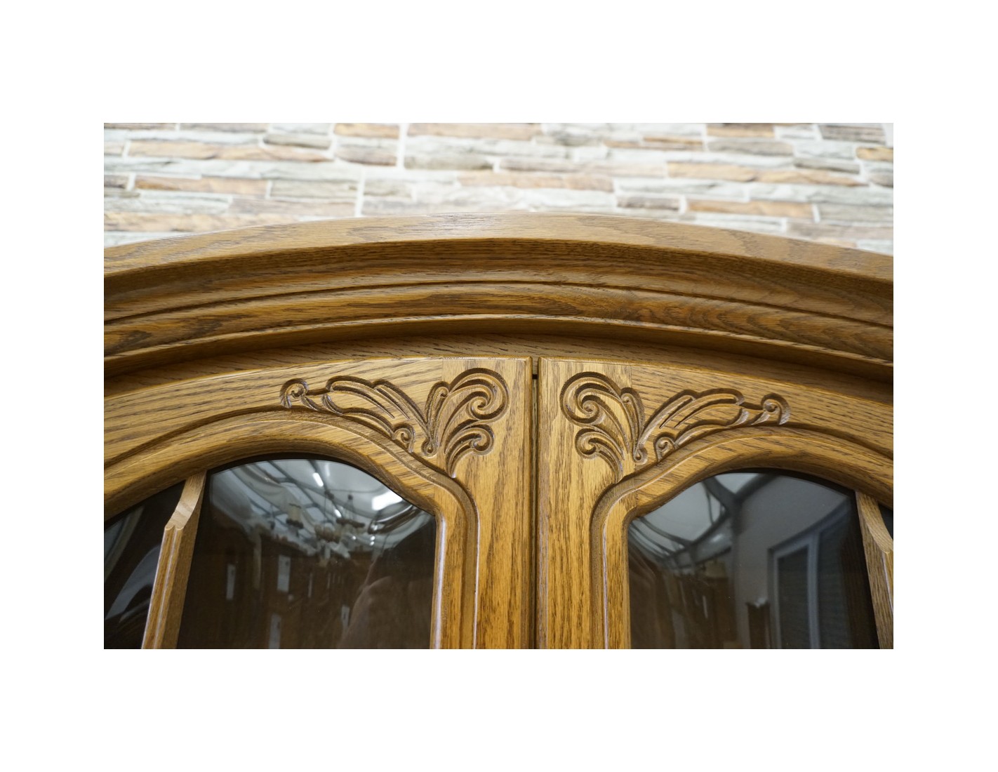 WITRYNA DĘBOWA Z KOMODĄ ŁĄCZY STYL I FUNKCJONALNOŚĆ. Z IMPONUJĄCYMI WYMIARAMI (SZEROKOŚĆ 177 CM, GŁĘBOKOŚĆ 46 CM, WYSOKOŚĆ 202 CM), TA WITRYNA TO CENTRALNY PUNKT TWOJEGO WNĘTRZA. JEJ GÓRNA CZĘŚĆ JEST WYPOSAŻONA W DWIE SZKLANE PÓŁKI, KTÓRE DOSKONALE NADAJĄ SIĘ DO EKSPONOWANIA TWOICH UKOCHANYCH DEKORACJI CZY KOLEKCJI. PODŚWIETLENIE WNĘTRZA NADAJE DODATKOWEGO EFEKTU I PODKREŚLA PIĘKNO PRZECHOWYWANYCH PRZEDMIOTÓW.