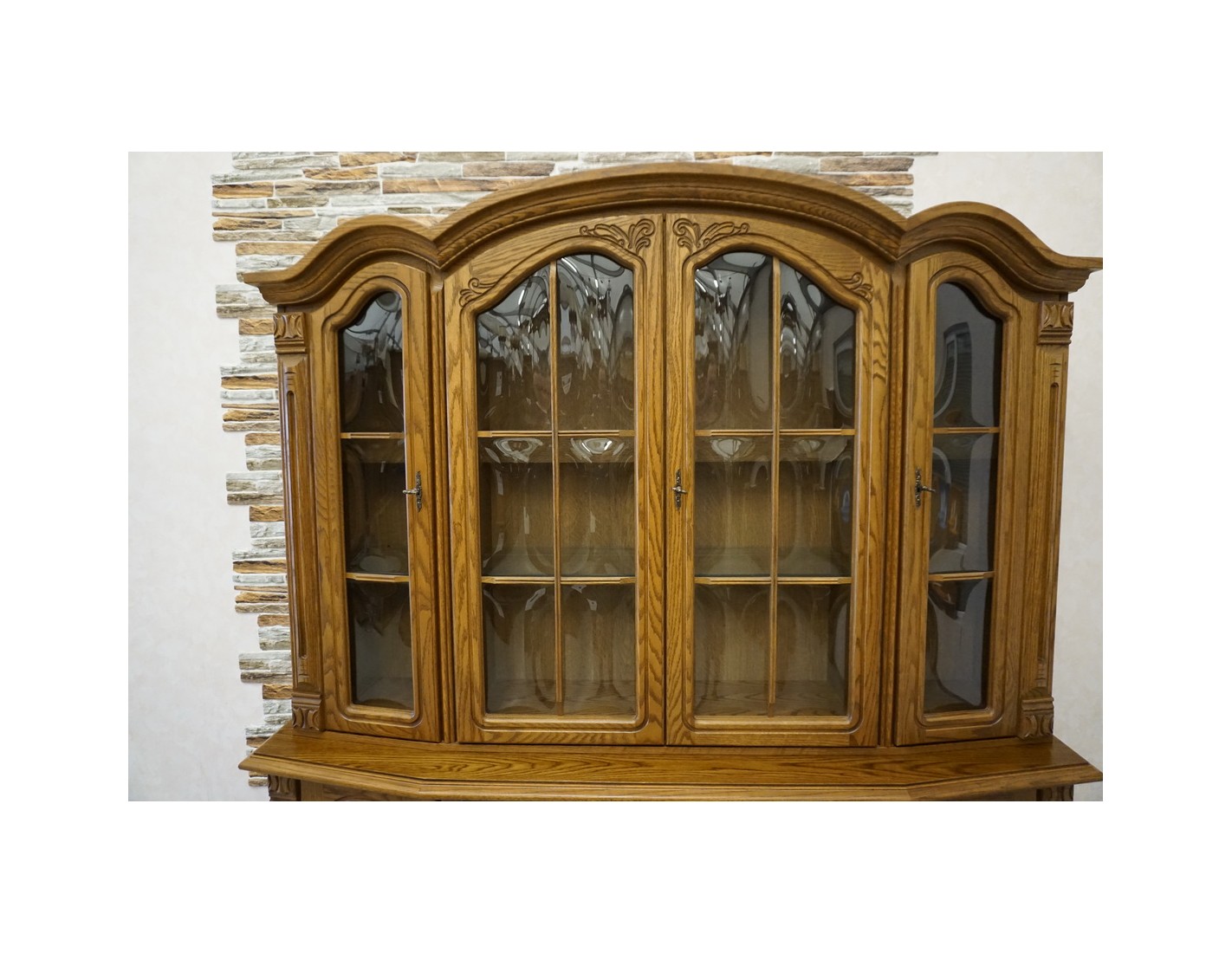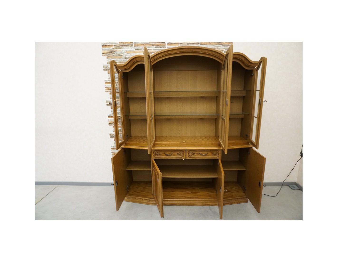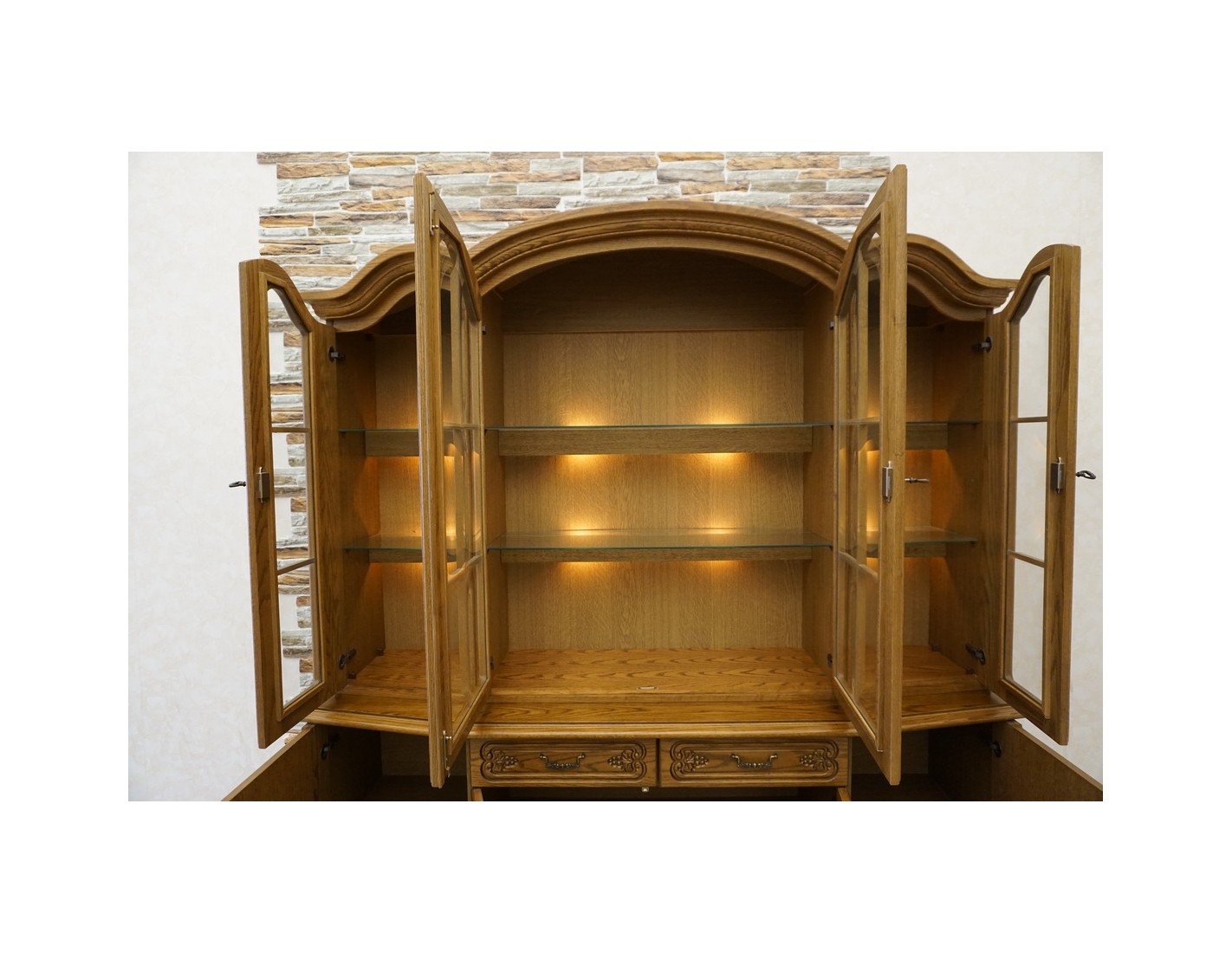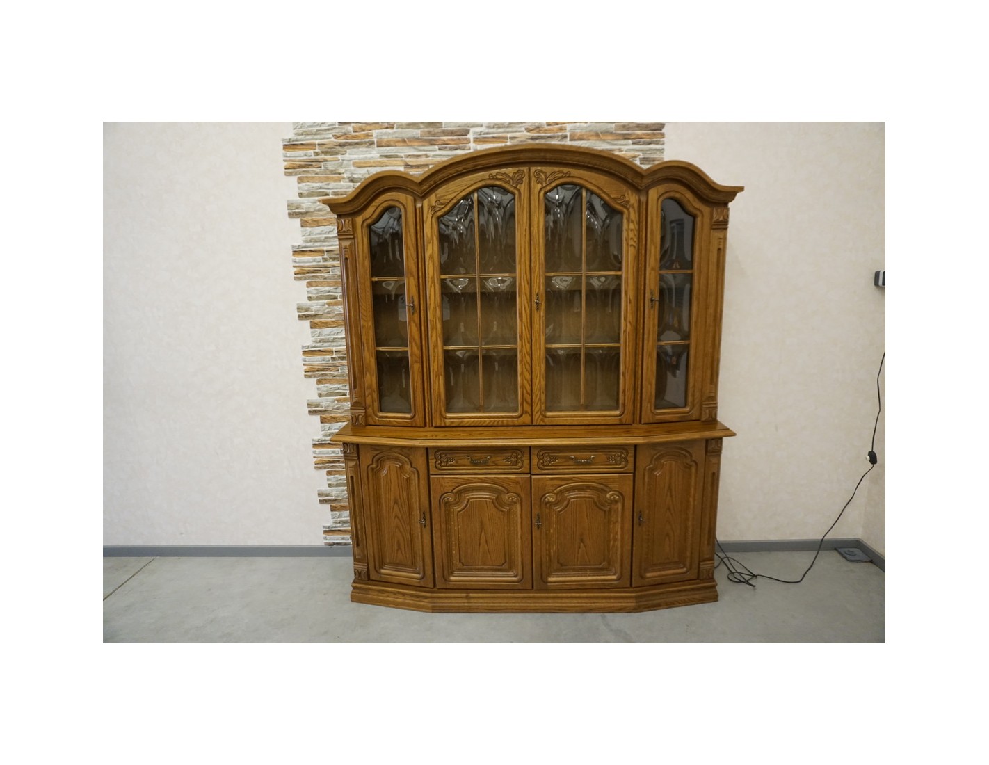 WITRYNA DĘBOWA Z KOMODĄ ŁĄCZY STYL I FUNKCJONALNOŚĆ. Z IMPONUJĄCYMI WYMIARAMI (SZEROKOŚĆ 177 CM, GŁĘBOKOŚĆ 46 CM, WYSOKOŚĆ 202 CM), TA WITRYNA TO CENTRALNY PUNKT TWOJEGO WNĘTRZA. JEJ GÓRNA CZĘŚĆ JEST WYPOSAŻONA W DWIE SZKLANE PÓŁKI, KTÓRE DOSKONALE NADAJĄ SIĘ DO EKSPONOWANIA TWOICH UKOCHANYCH DEKORACJI CZY KOLEKCJI. PODŚWIETLENIE WNĘTRZA NADAJE DODATKOWEGO EFEKTU I PODKREŚLA PIĘKNO PRZECHOWYWANYCH PRZEDMIOTÓW.