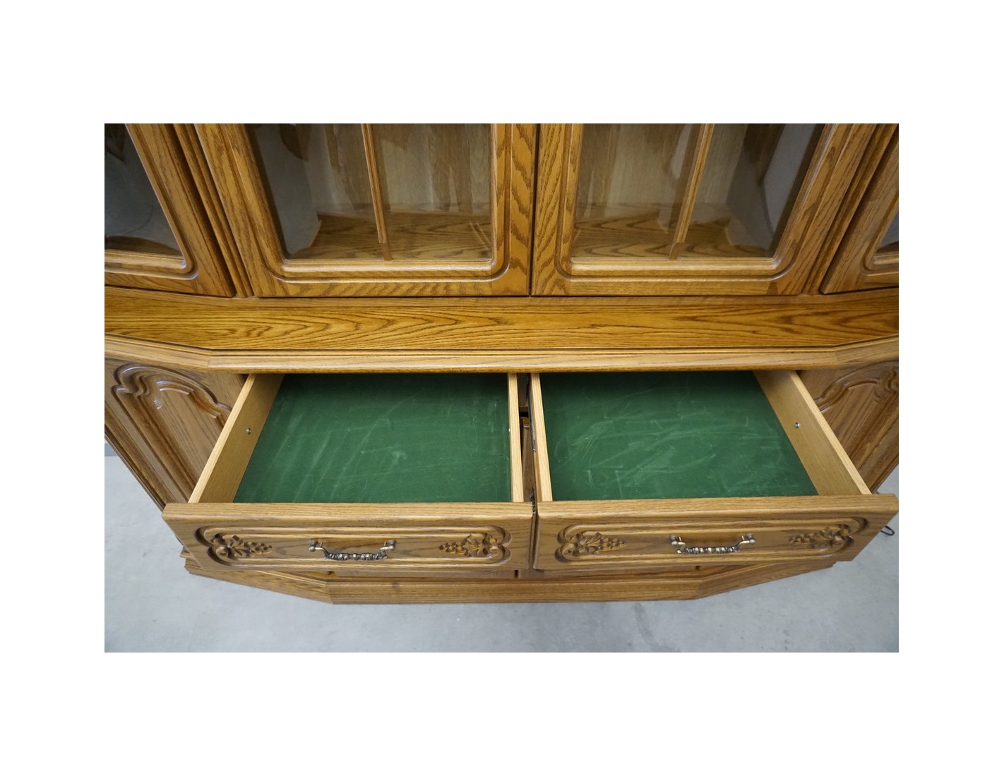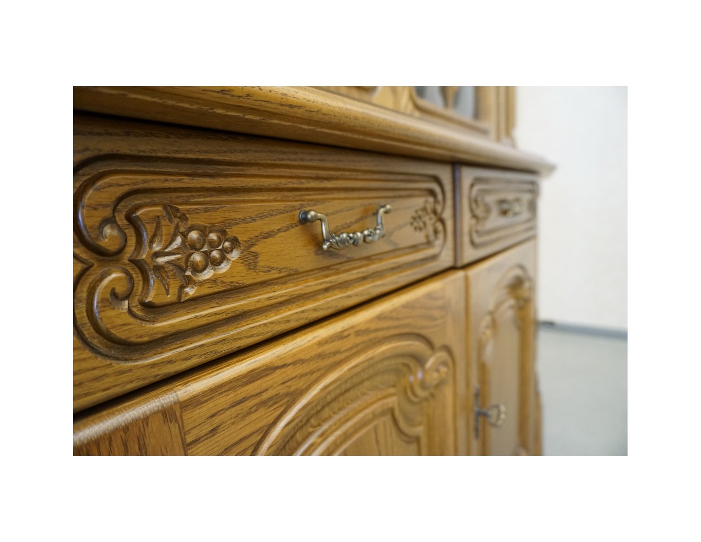 PONADTO, WITRYNA ZAWIERA KOMODĘ, CO SPRAWIA, ŻE JEST TO ROZWIĄZANIE KOMPLEKSOWE DO PRZECHOWYWANIA. DĘBOWE WYKOŃCZENIE NADAJE MEBLOWI WYJĄTKOWEGO CHARAKTERU, A SOLIDNA KONSTRUKCJA ZAPEWNIA TRWAŁOŚĆ NA LATA.