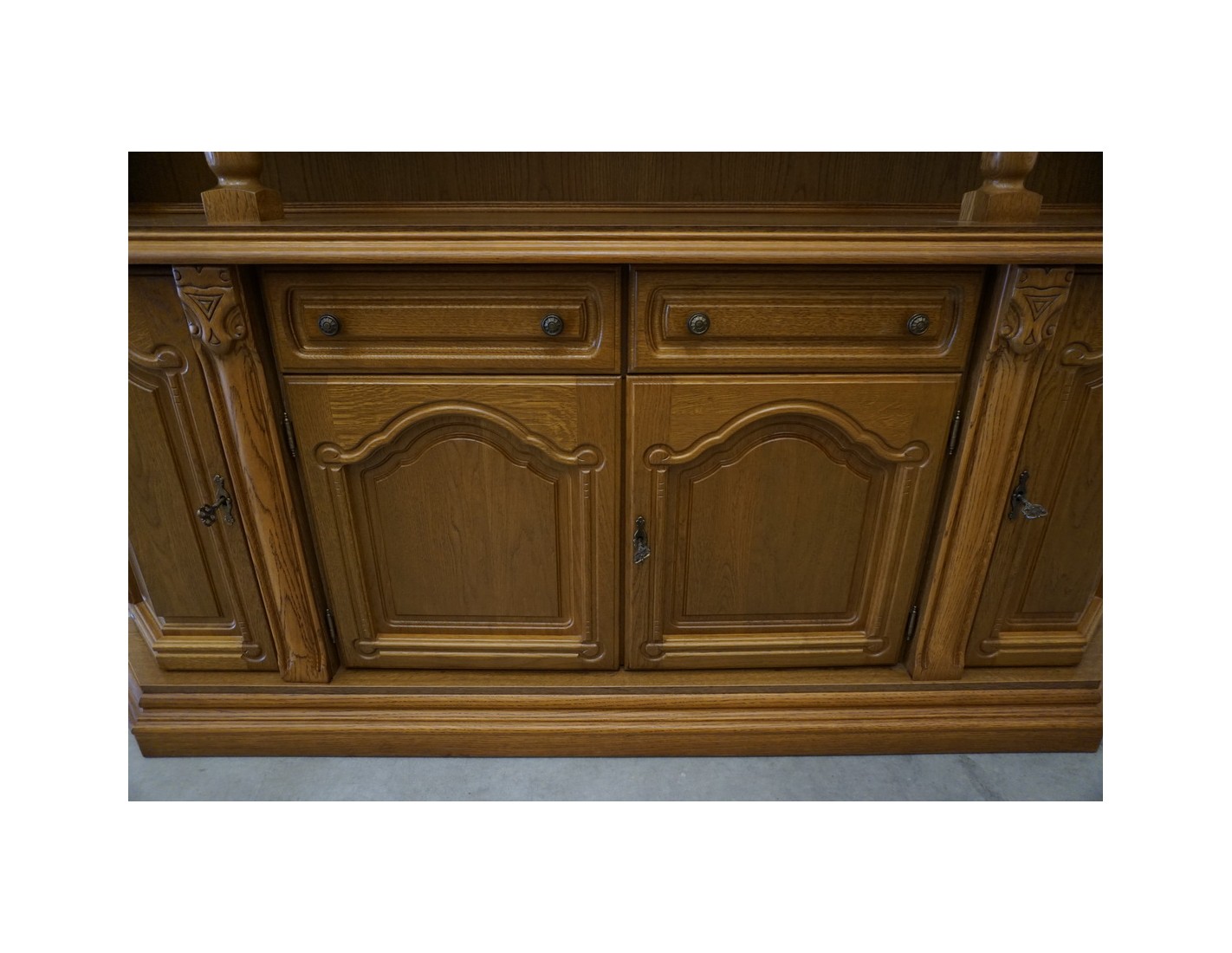 TEN IMPONUJĄCY KREDENS Z WITRYNĄ MA SZEROKOŚĆ 187 CM, GŁĘBOKOŚĆ 48 CM I WYSOKOŚĆ 206 CM, CO DAJE MNÓSTWO PRZESTRZENI DO PRZECHOWYWANIA I EKSPONOWANIA TWOICH ULUBIONYCH PRZEDMIOTÓW.