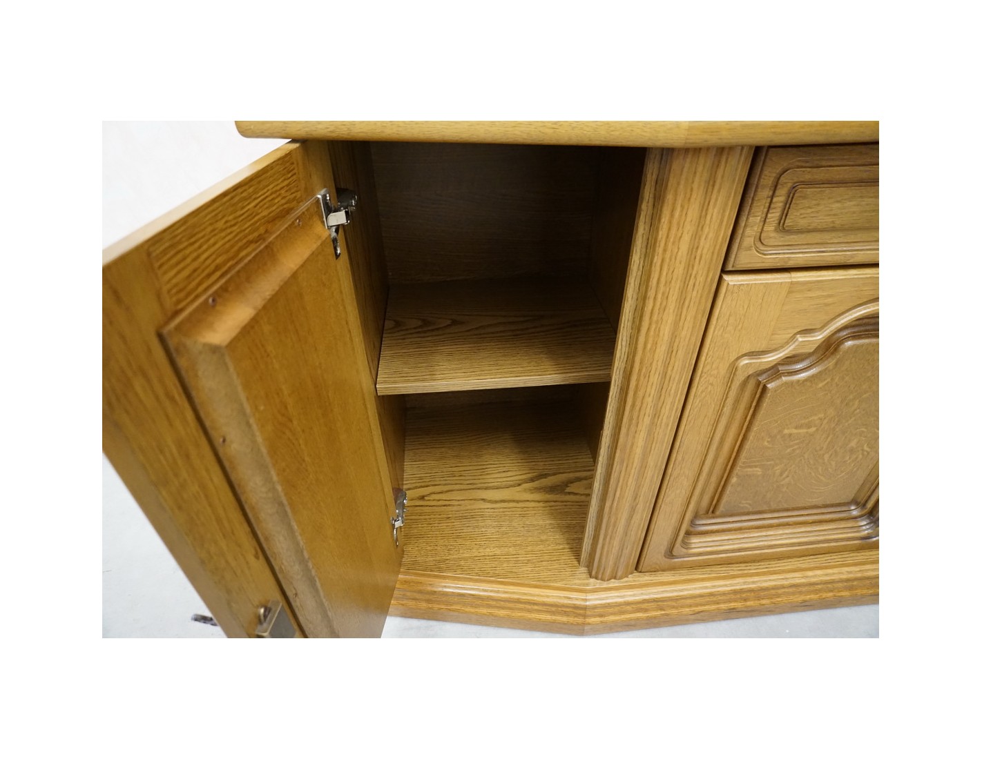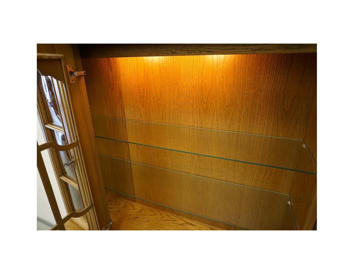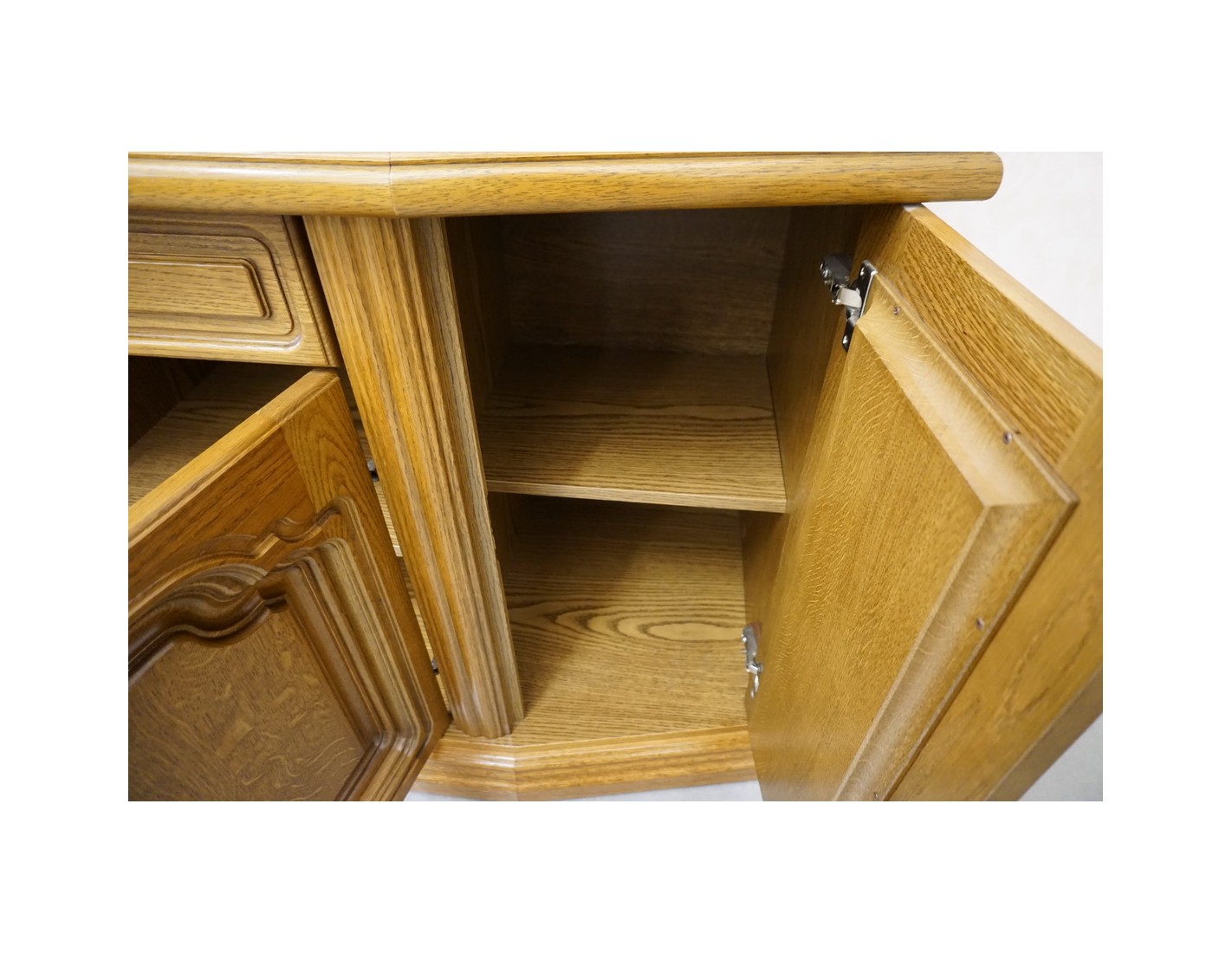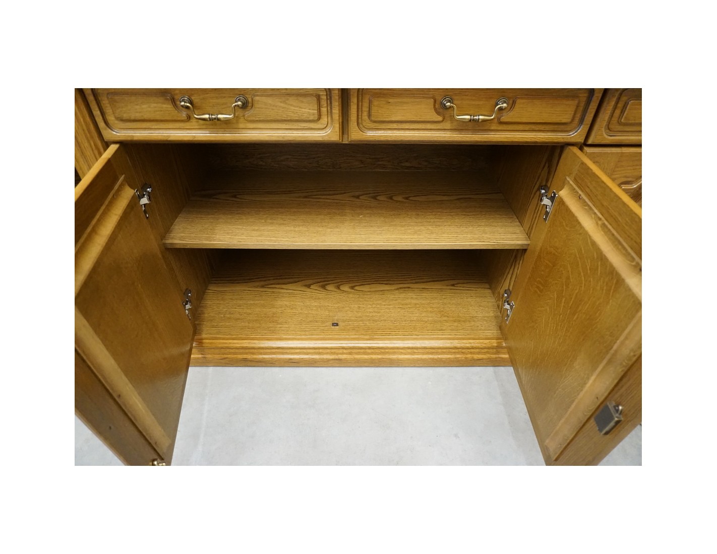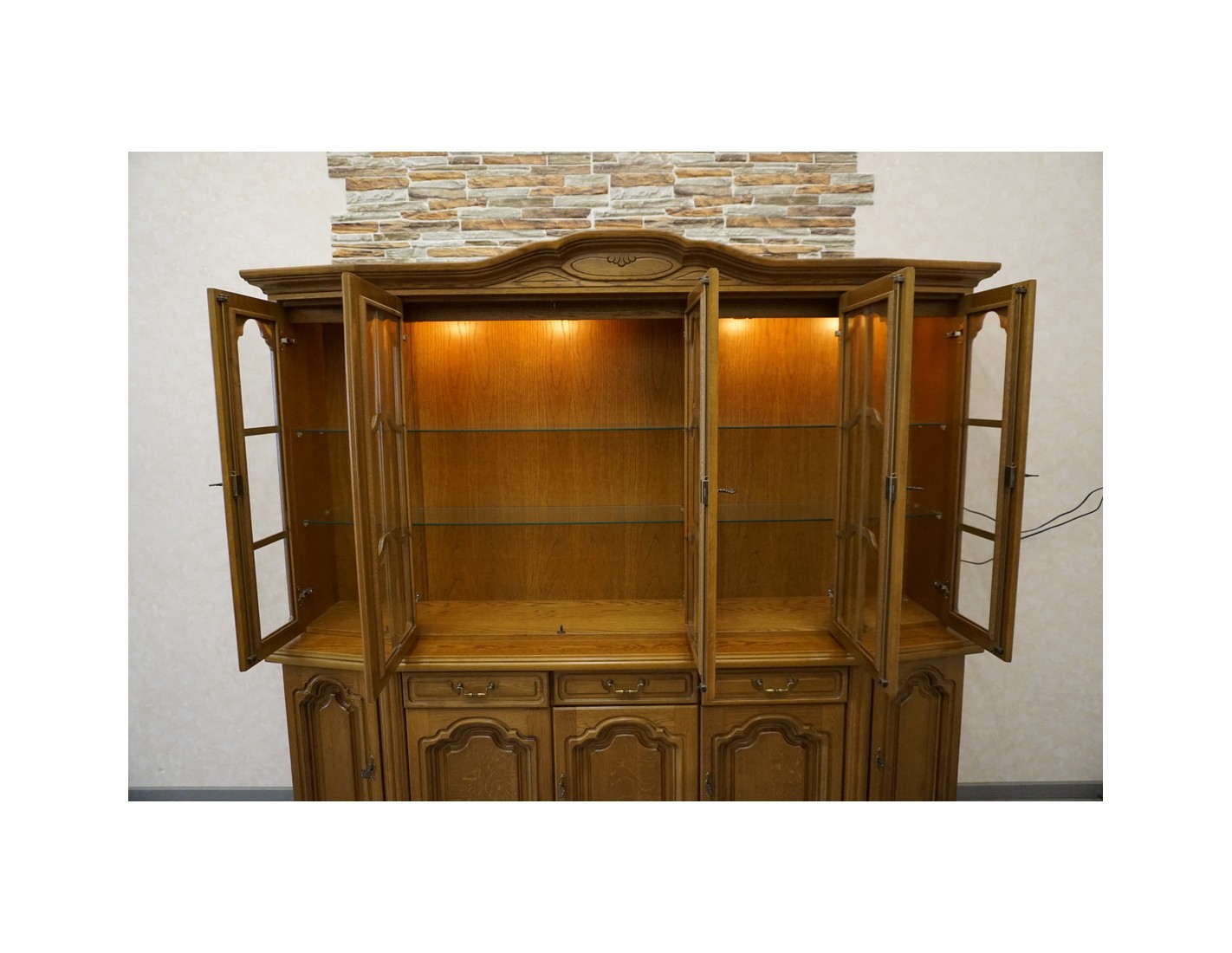TA DUŻA WITRYNA Z KOMODĄ DĘBOWA TO PRAWDZIWA PERŁA WNĘTRZA, ŁĄCZĄCA W SOBIE FUNKCJONALNOŚĆ Z WYRAFINOWANYM STYLEM. O SZEROKOŚCI 219 CM, GŁĘBOKOŚCI 47 CM I IMPONUJĄCEJ WYSOKOŚCI 201 CM, TA WITRYNA OFERUJE OBFITOŚĆ PRZESTRZENI DO PRZECHOWYWANIA I EKSPONOWANIA RÓŻNORODNYCH PRZEDMIOTÓW.