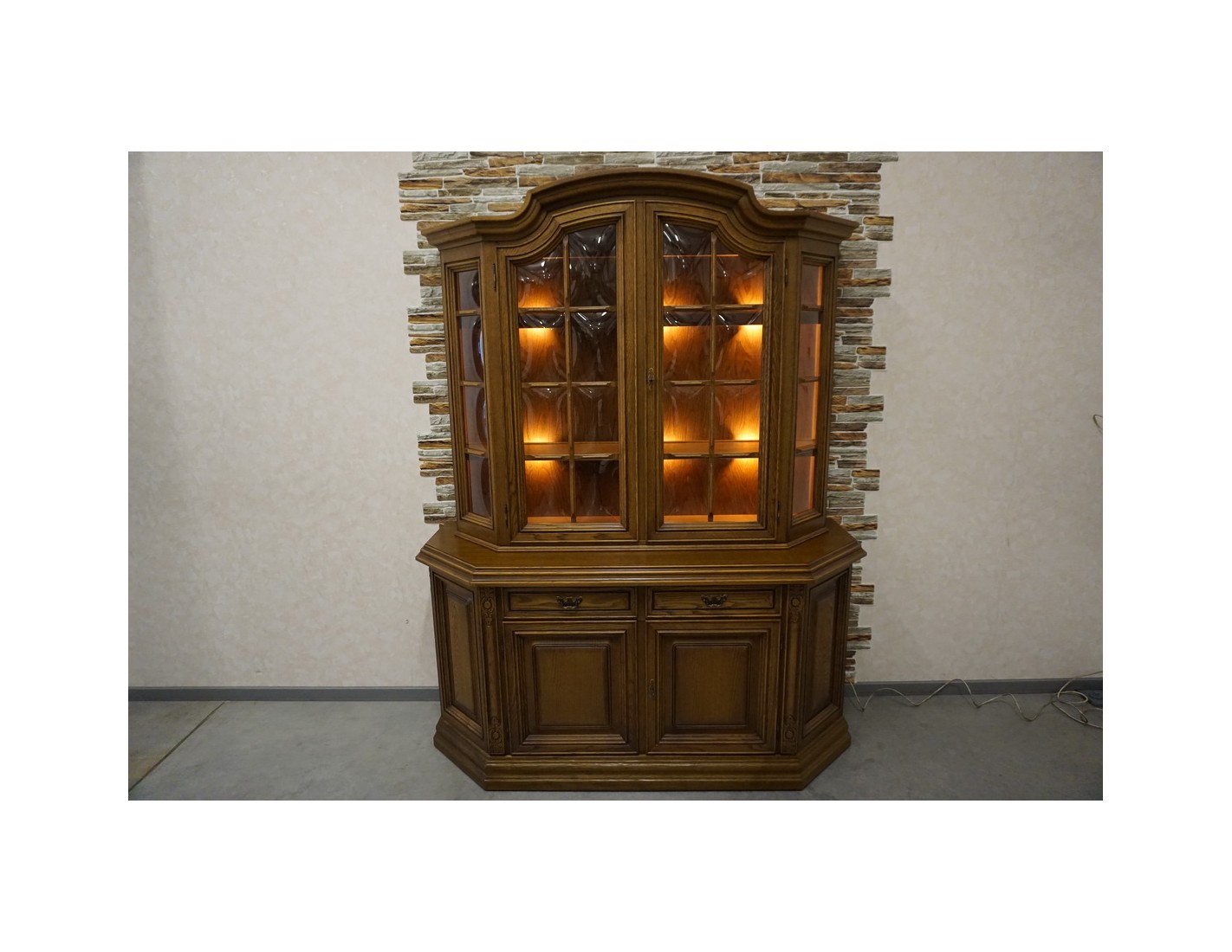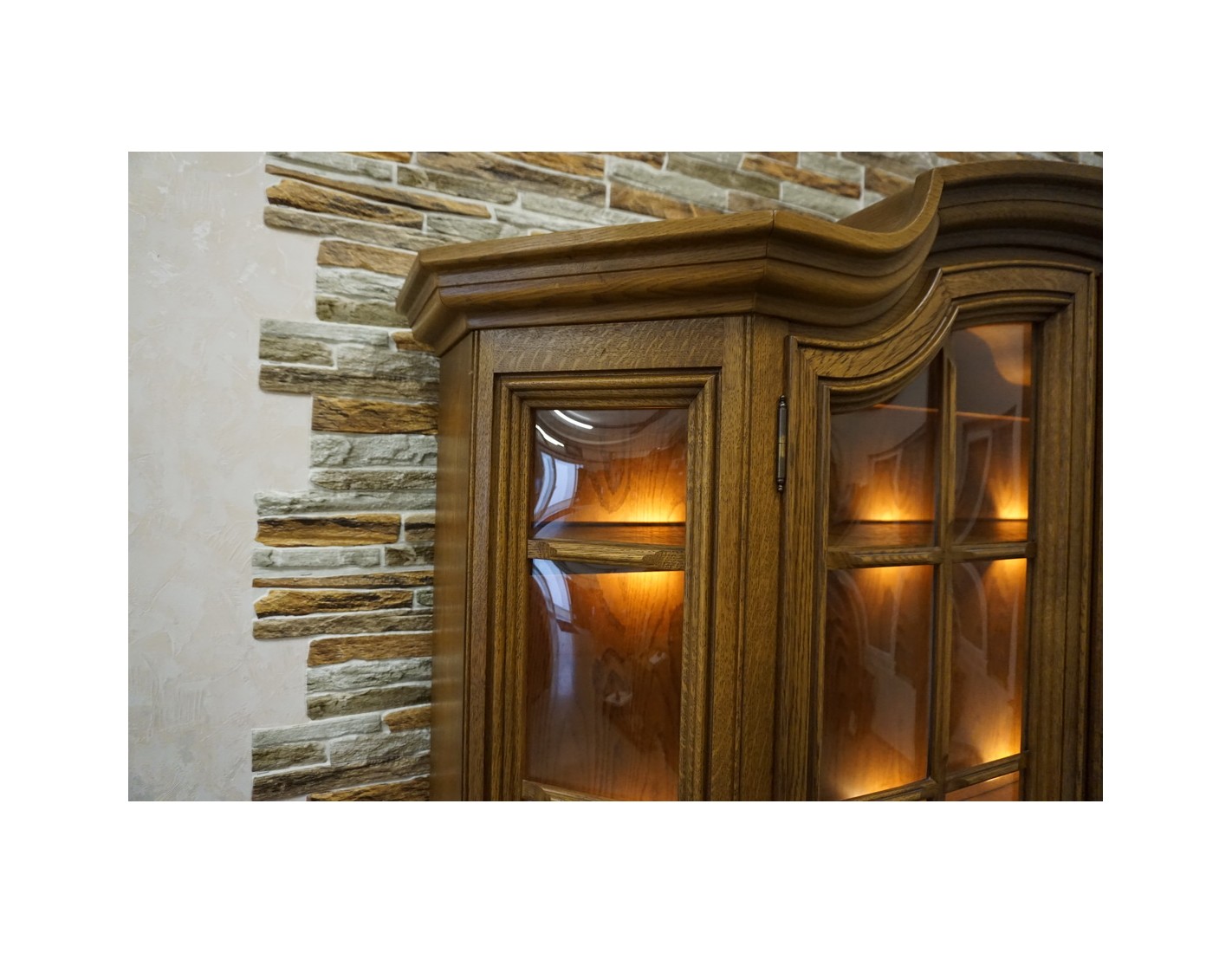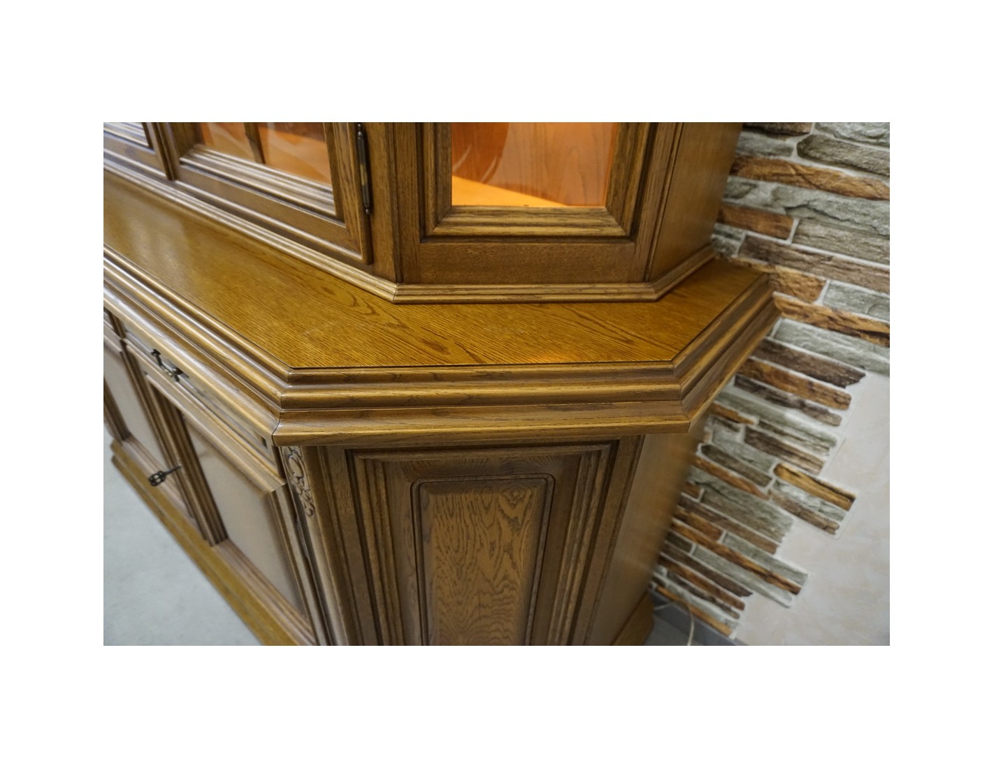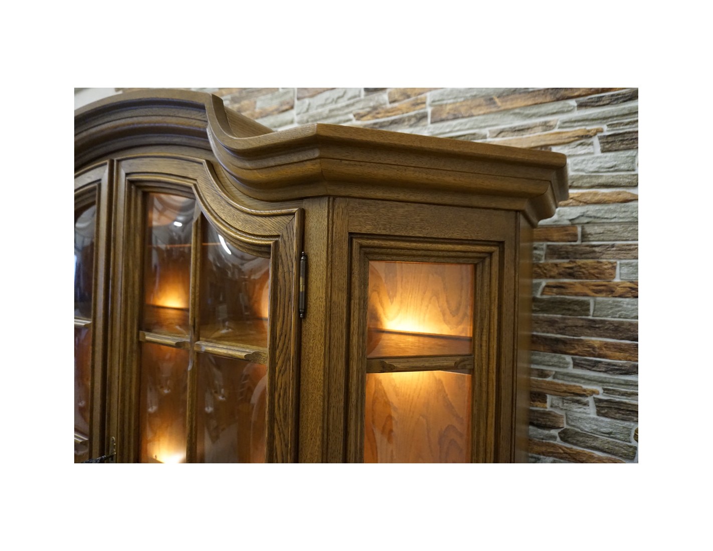 TA PODŚWIETLANA WITRYNA Z KOMODĄ TO IMPONUJĄCY ELEMENT WYPOSAŻENIA O SZEROKOŚCI 170 CM, GŁĘBOKOŚCI 47 CM I WYSOKOŚCI 206 CM. JEST TO MEBEL, KTÓRY ŁĄCZY W SOBIE FUNKCJONALNOŚĆ Z ESTETYKĄ.