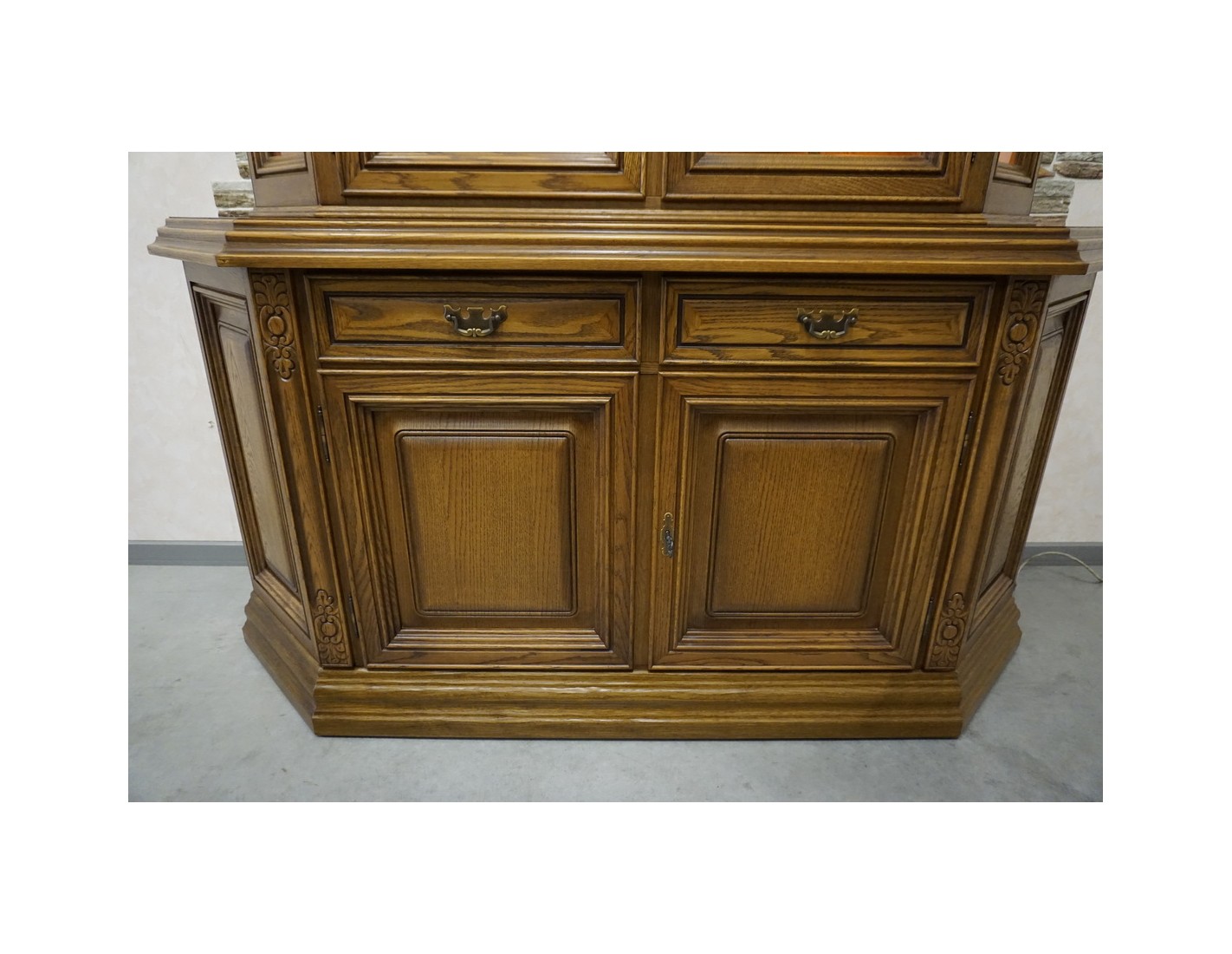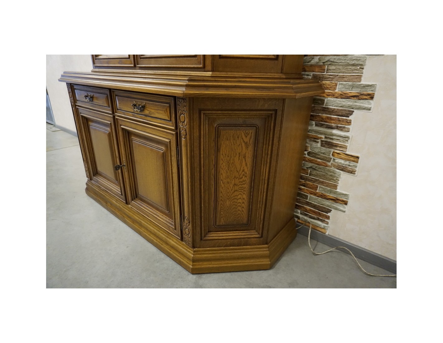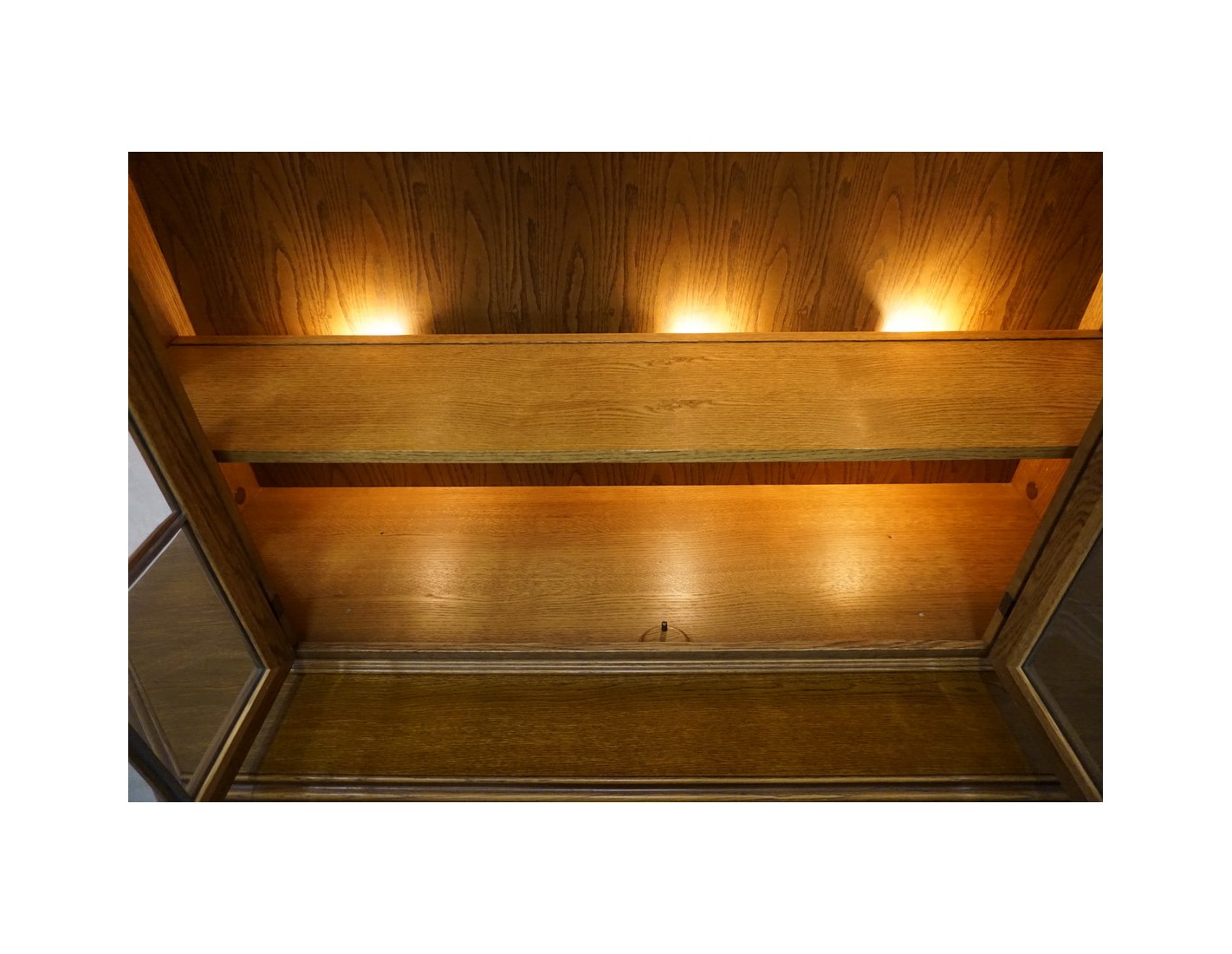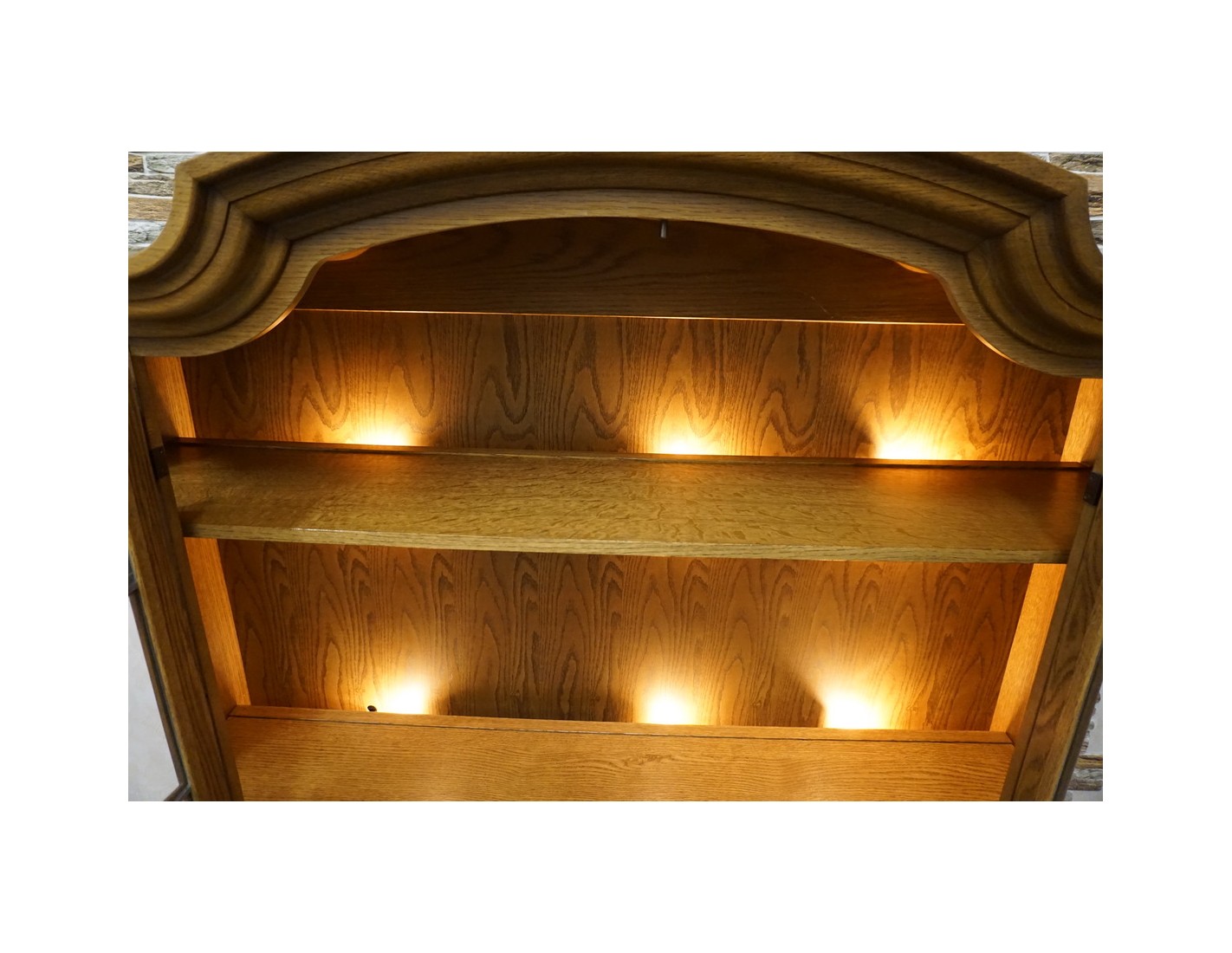 TA PODŚWIETLANA WITRYNA Z KOMODĄ TO IMPONUJĄCY ELEMENT WYPOSAŻENIA O SZEROKOŚCI 170 CM, GŁĘBOKOŚCI 47 CM I WYSOKOŚCI 206 CM. JEST TO MEBEL, KTÓRY ŁĄCZY W SOBIE FUNKCJONALNOŚĆ Z ESTETYKĄ.