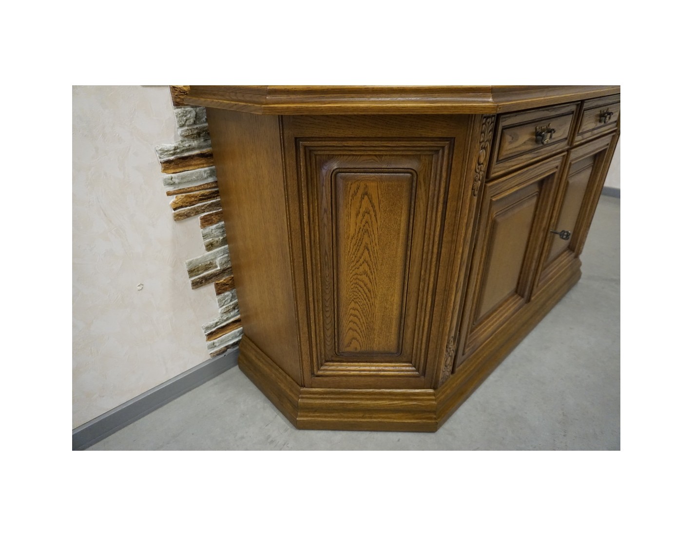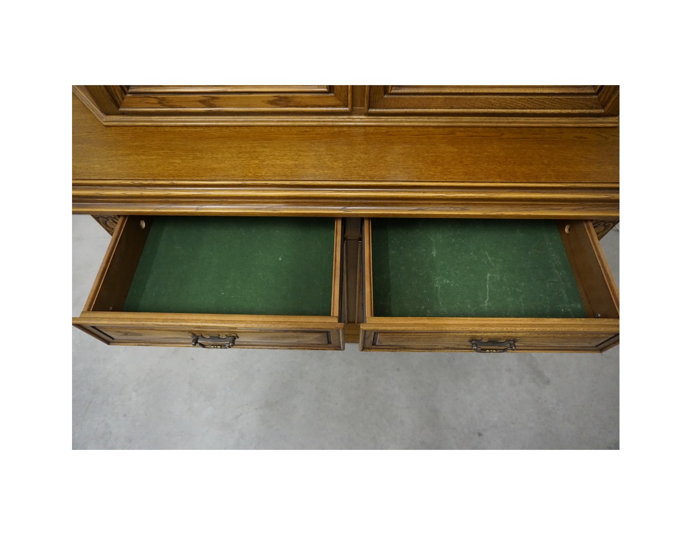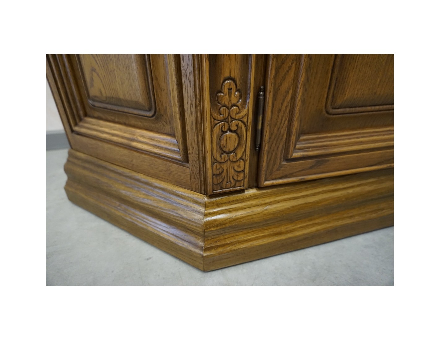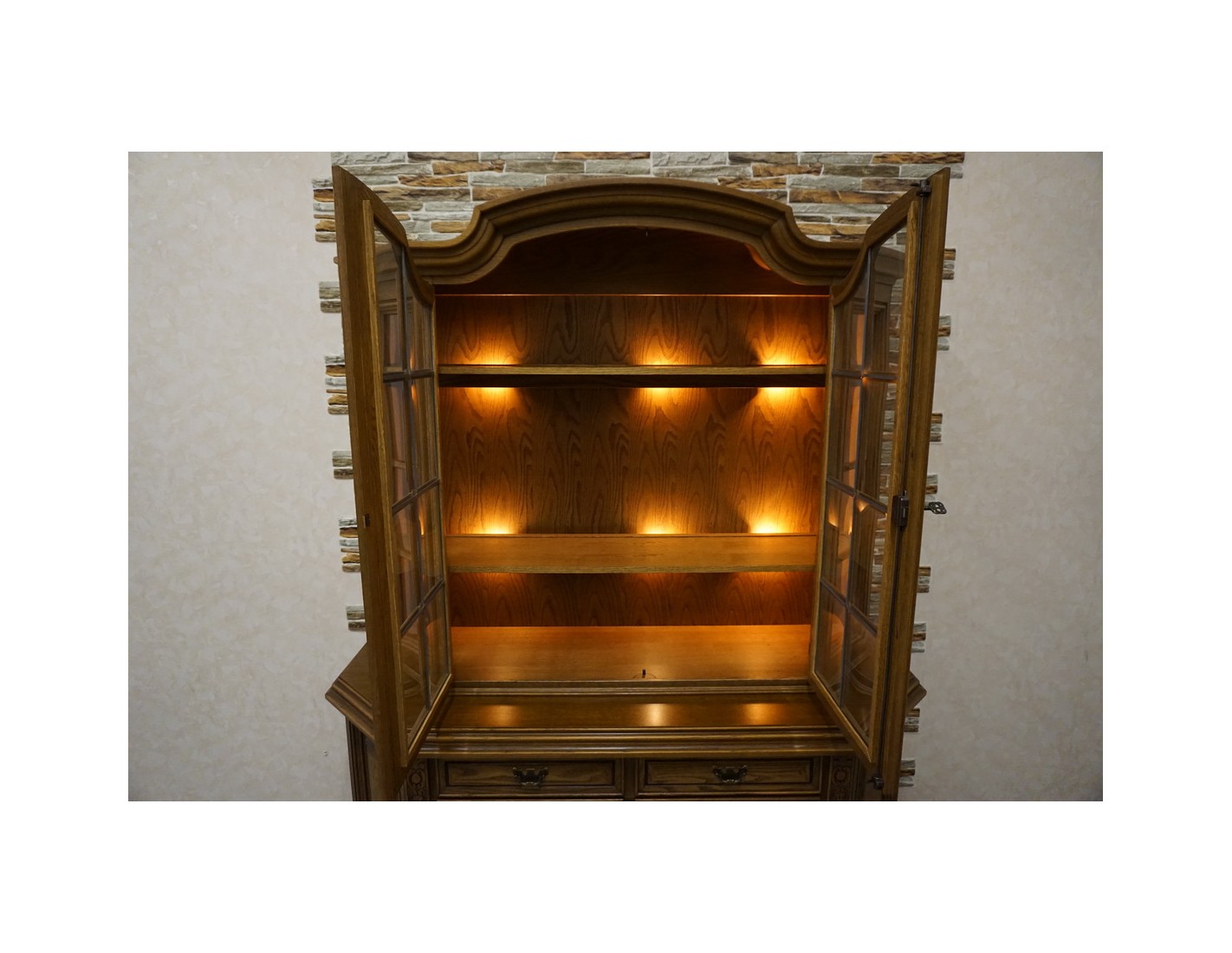 TA PODŚWIETLANA WITRYNA Z KOMODĄ TO IMPONUJĄCY ELEMENT WYPOSAŻENIA O SZEROKOŚCI 170 CM, GŁĘBOKOŚCI 47 CM I WYSOKOŚCI 206 CM. JEST TO MEBEL, KTÓRY ŁĄCZY W SOBIE FUNKCJONALNOŚĆ Z ESTETYKĄ.