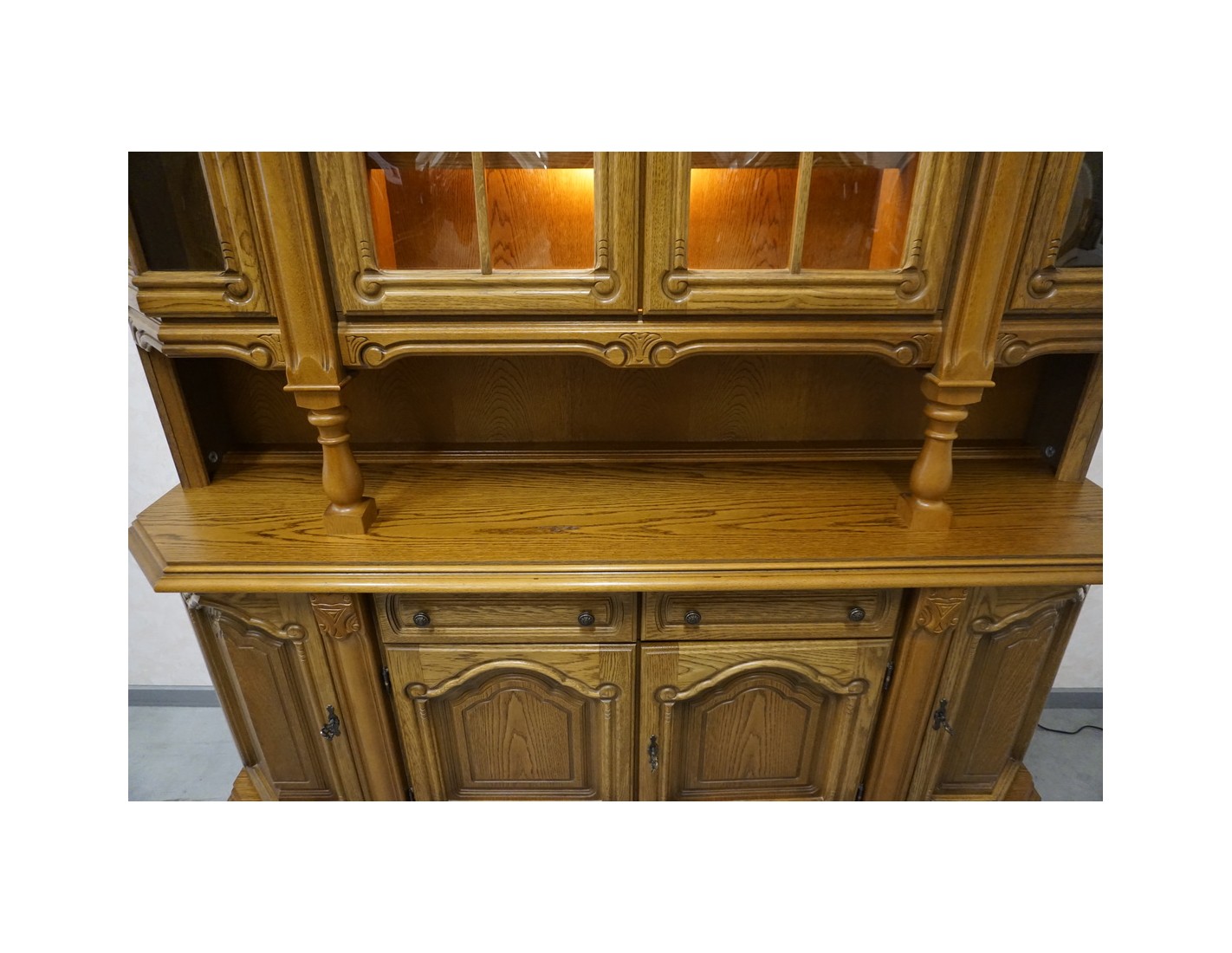 WITRYNA Z KOMODĄ/KREDENSEM PODŚWIETLANA O SZEROKOŚCI 187 CM, GŁĘBOKOŚCI 47 CM I WYSOKOŚCI 206 CM TO ELEGANCKIE I FUNKCJONALNE ROZWIĄZANIE DO PRZECHOWYWANIA I EKSPONOWANIA PRZEDMIOTÓW. POSIADA SZKLANE PÓŁKI W GÓRNEJ CZĘŚCI, KTÓRE NADAJĄ WNĘTRZU LEKKOŚCI I POZWALAJĄ NA PREZENTACJĘ OZDÓB LUB KOLEKCJI. DZIĘKI PODŚWIETLENIU WITRYNA MOŻE BYĆ ATRAKCYJNYM ELEMENTEM WYSTROJU WNĘTRZA, DODAJĄC MU CIEPŁA I WYJĄTKOWEGO CHARAKTERU. KOMBINACJA KOMODY I WITRYNY DAJE MOŻLIWOŚĆ PRZECHOWYWANIA RÓŻNORODNYCH PRZEDMIOTÓW W JEDNYM MIEJSCU, CO SPRAWIA, ŻE POMIESZCZENIE STAJE SIĘ BARDZIEJ FUNKCJONALNE I UPORZĄDKOWANE.