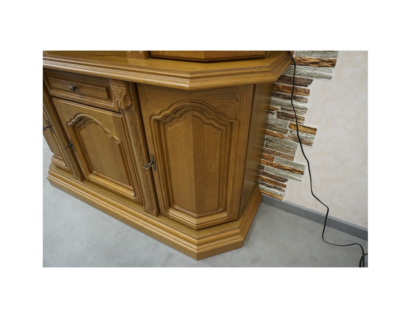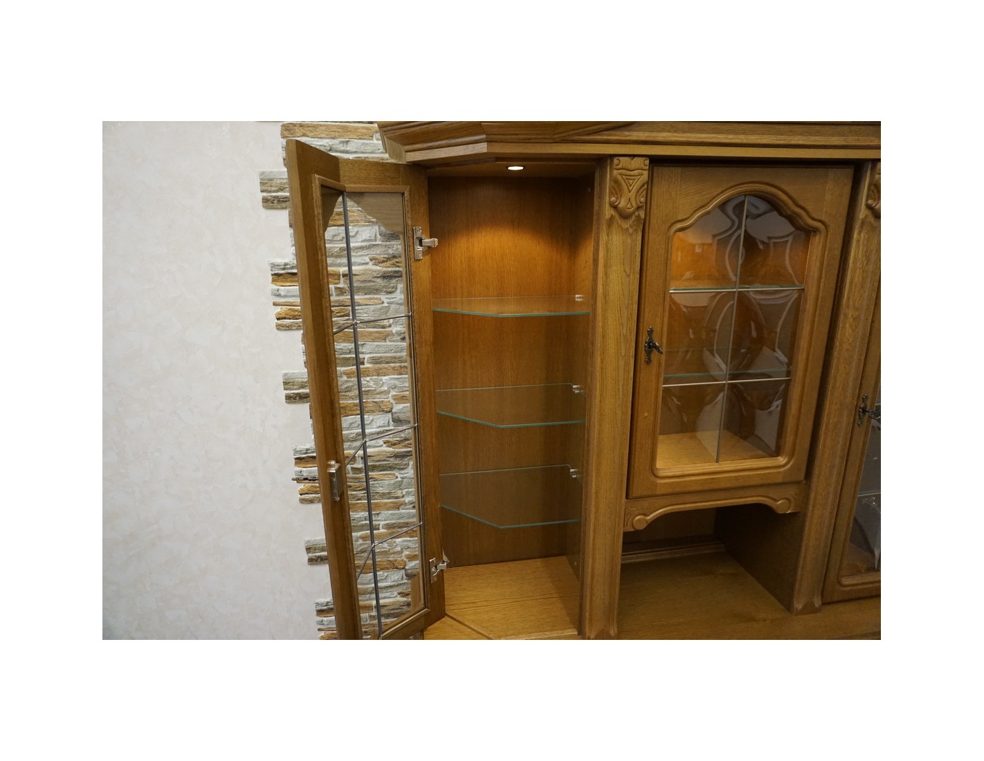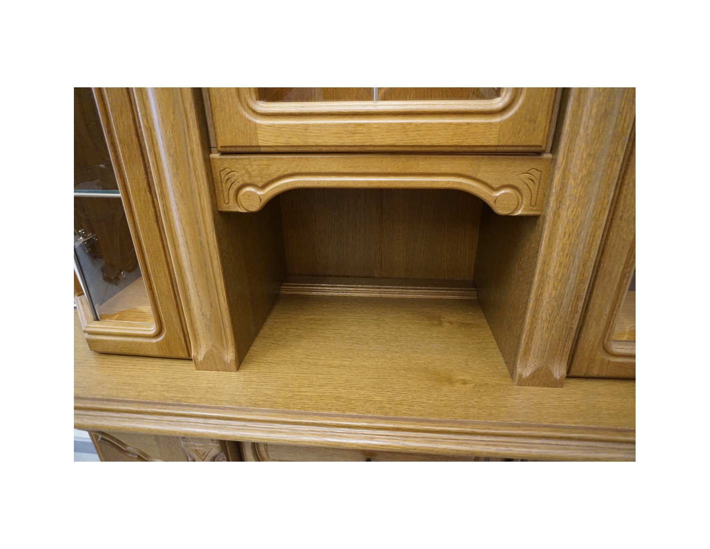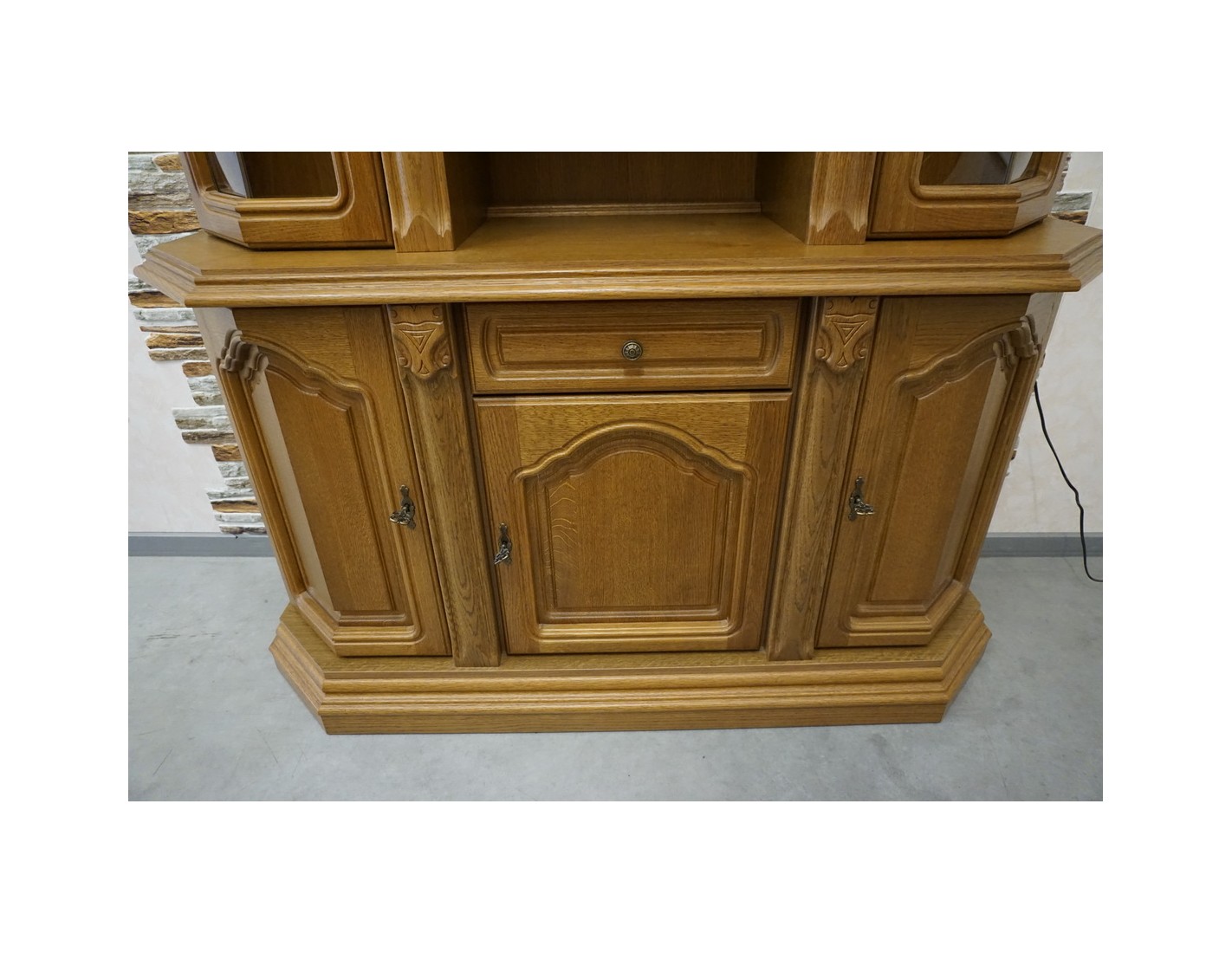 WITRYNA Z KOMODĄ, PODŚWIETLANA, O SZEROKOŚCI 145 CM, GŁĘBOKOŚCI 49 CM I WYSOKOŚCI 205 CM, TO ELEGANCKI I FUNKCJONALNY ELEMENT WYSTROJU WNĘTRZA. SZKLANE PÓŁKI W GÓRNEJ CZĘŚCI DODAJĄ LEKKOŚCI I POZWALAJĄ NA WYEKSPONOWANIE PRZECHOWYWANYCH PRZEDMIOTÓW. DODATKOWO, NA OSTATNIM ZDJĘCIU ZNAJDUJE SIĘ DRUGA WITRYNA PASUJĄCA DO TEJ, CO ZAPEWNIA MOŻLIWOŚĆ STWORZENIA SPÓJNEGO I HARMONIJNEGO ARANŻU W POMIESZCZENIU.
