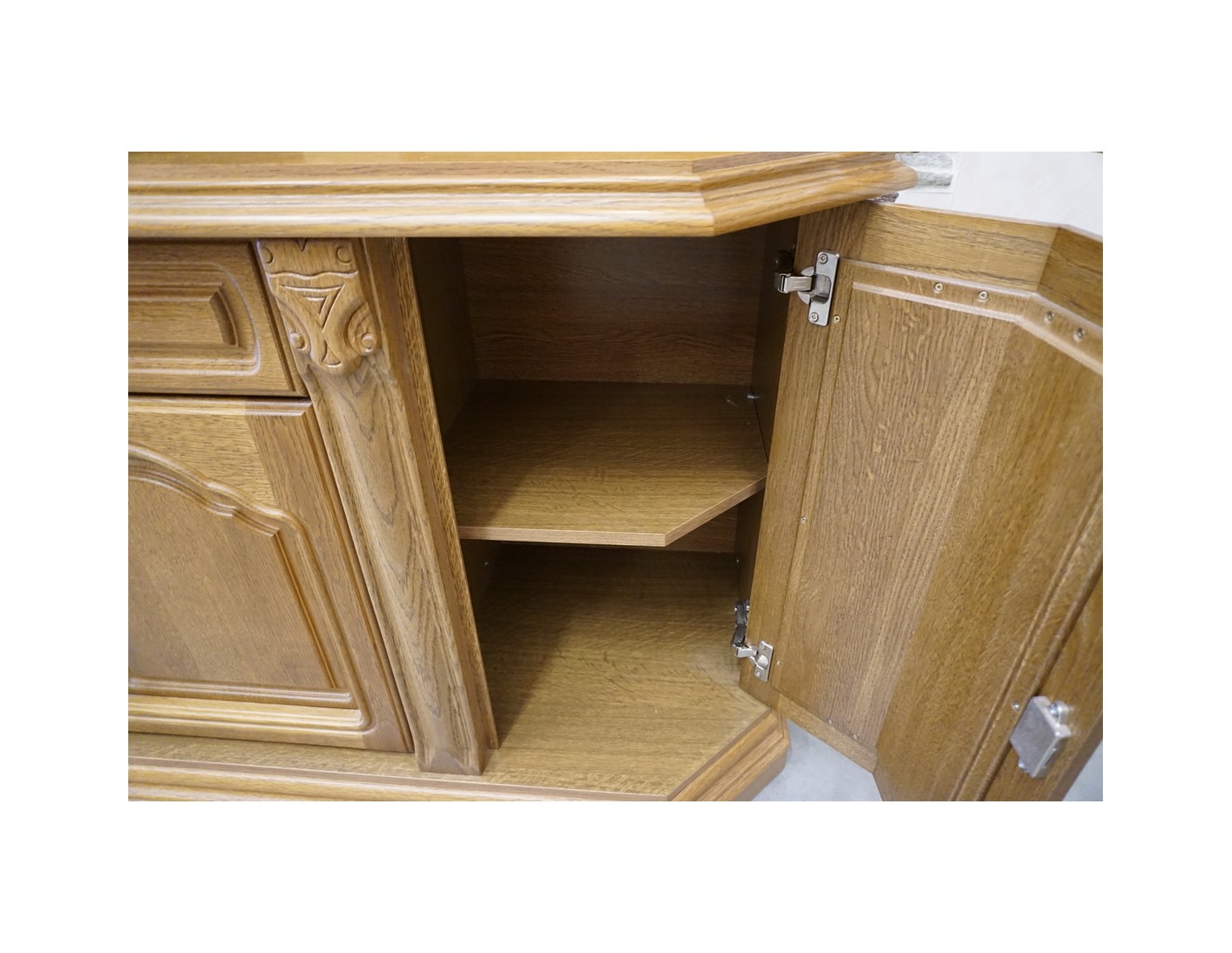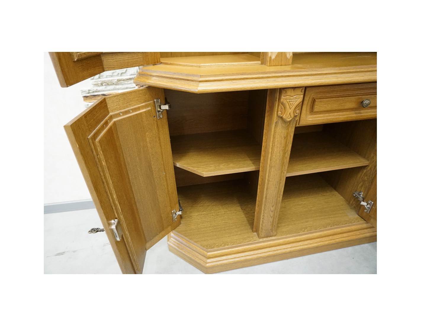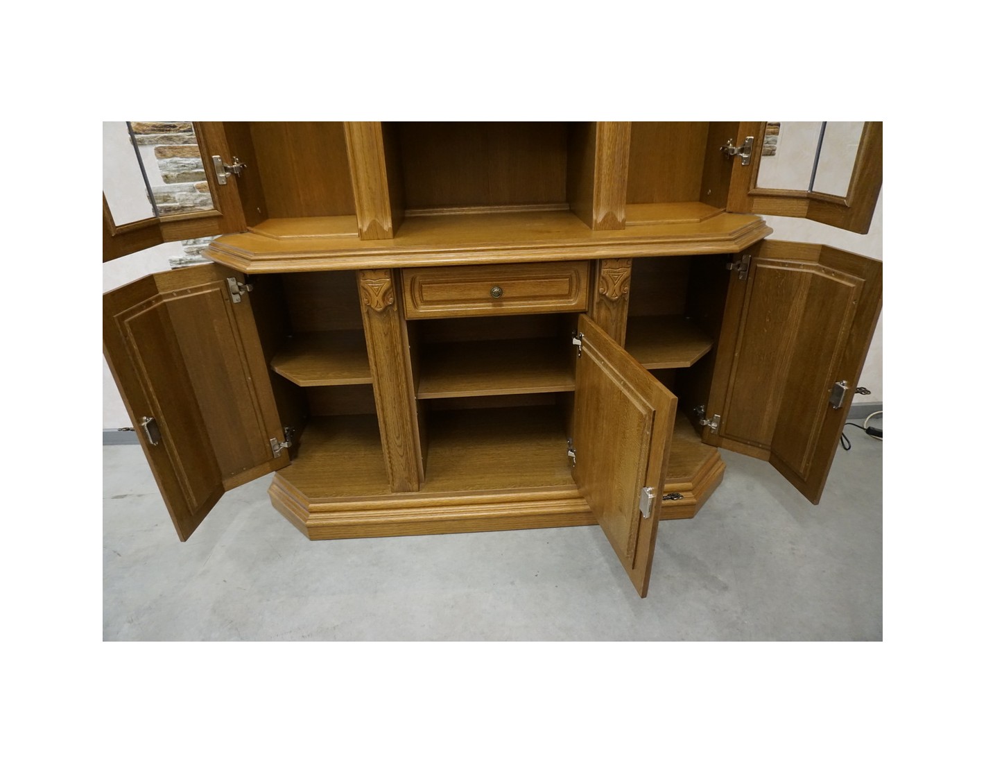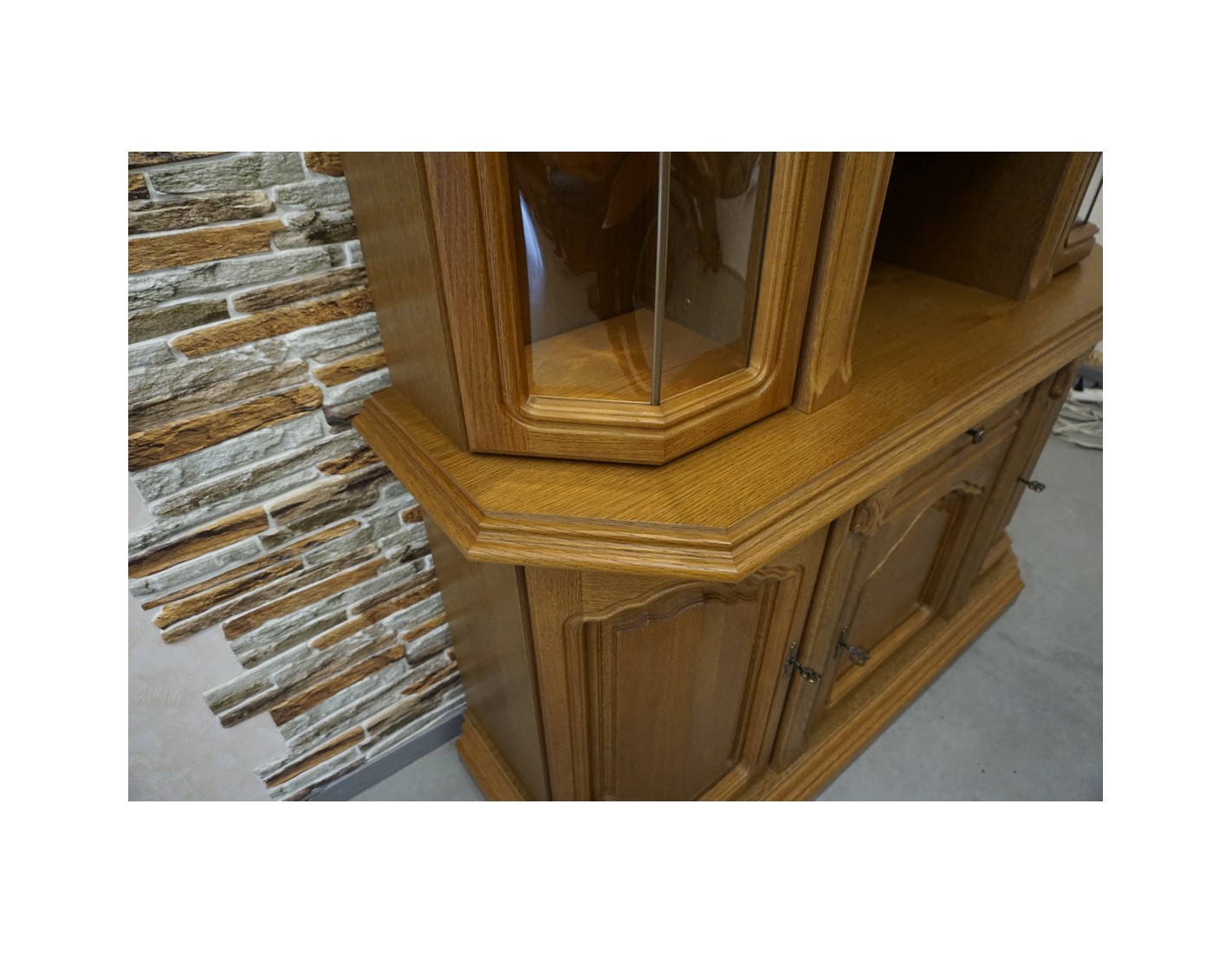 WITRYNA Z KOMODĄ, PODŚWIETLANA, O SZEROKOŚCI 145 CM, GŁĘBOKOŚCI 49 CM I WYSOKOŚCI 205 CM, TO ELEGANCKI I FUNKCJONALNY ELEMENT WYSTROJU WNĘTRZA. SZKLANE PÓŁKI W GÓRNEJ CZĘŚCI DODAJĄ LEKKOŚCI I POZWALAJĄ NA WYEKSPONOWANIE PRZECHOWYWANYCH PRZEDMIOTÓW. DODATKOWO, NA OSTATNIM ZDJĘCIU ZNAJDUJE SIĘ DRUGA WITRYNA PASUJĄCA DO TEJ, CO ZAPEWNIA MOŻLIWOŚĆ STWORZENIA SPÓJNEGO I HARMONIJNEGO ARANŻU W POMIESZCZENIU.