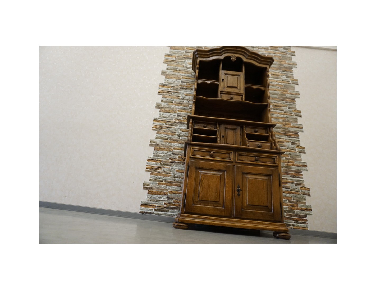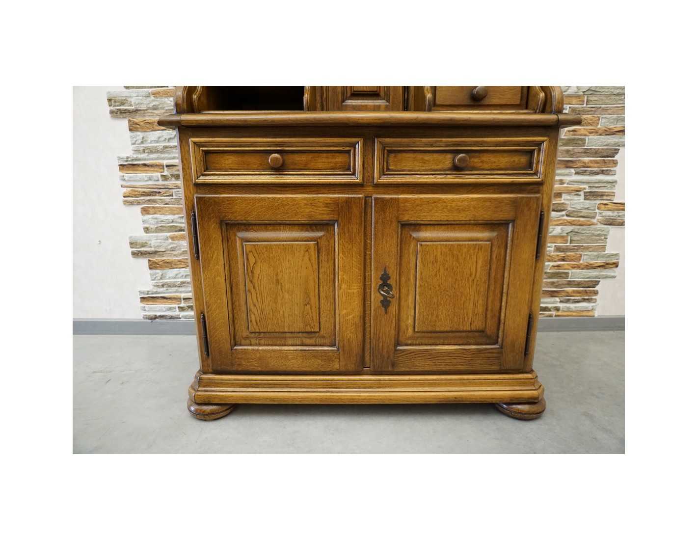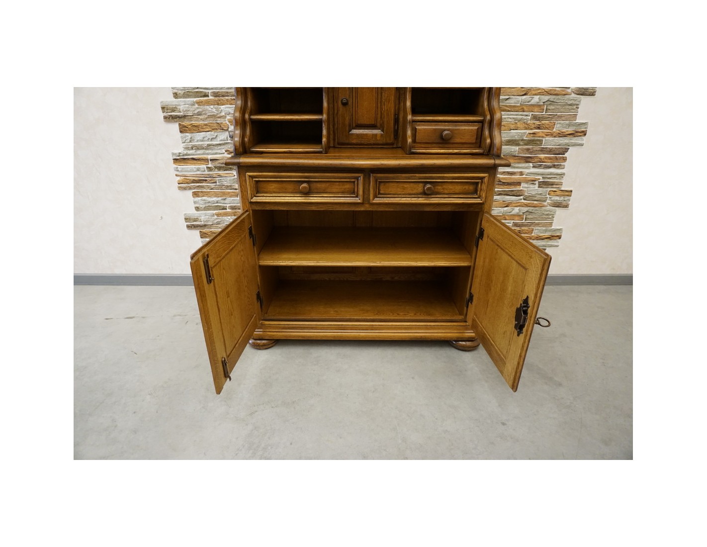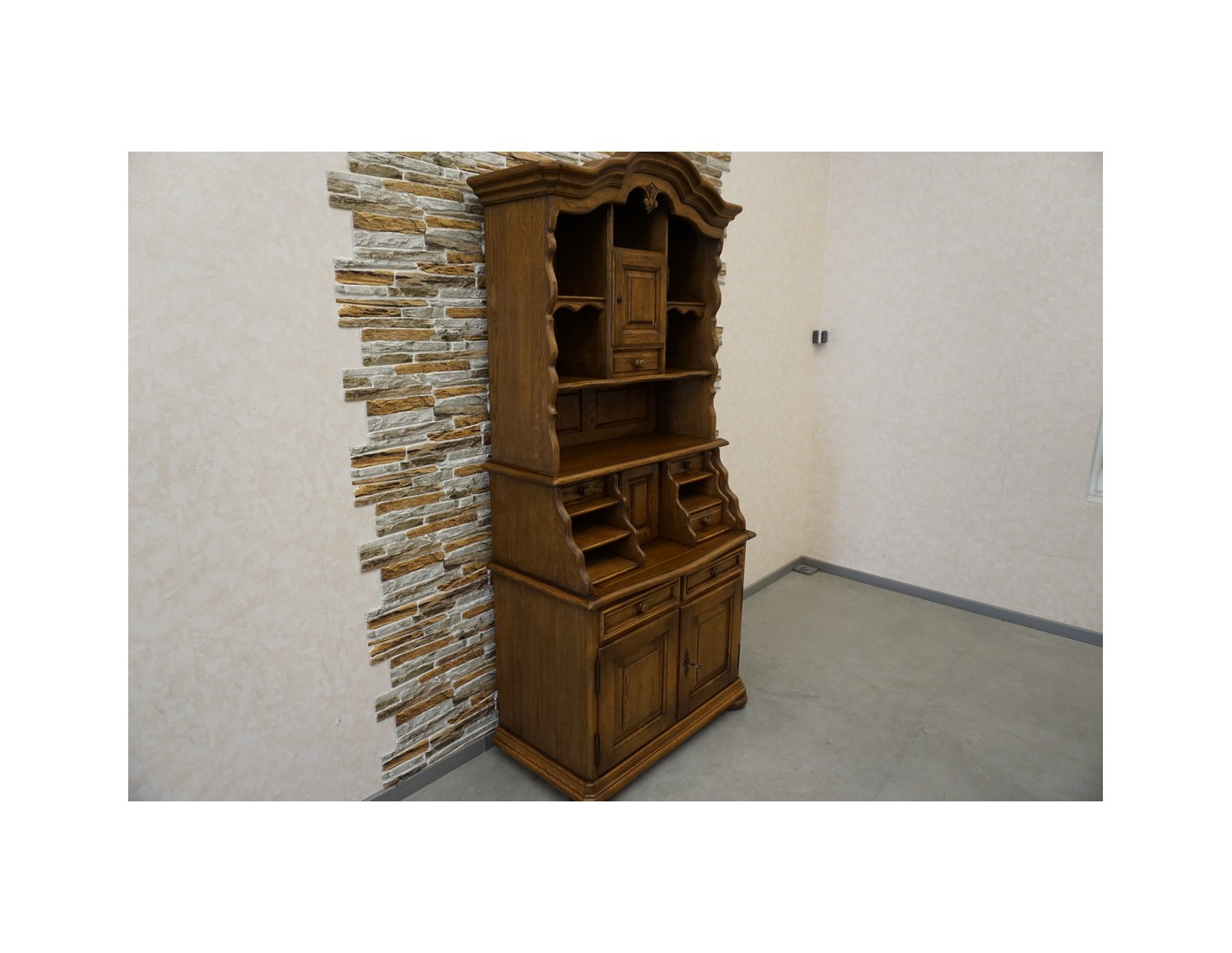 Piękny dębowy sekretarzyk z nadstawką, który łączy funkcjonalność z elegancją. Idealny do gabinetu, salonu lub sypialni. Wyposażony w liczne szufladki i półki, co umożliwia wygodne przechowywanie i organizację przedmiotów.
