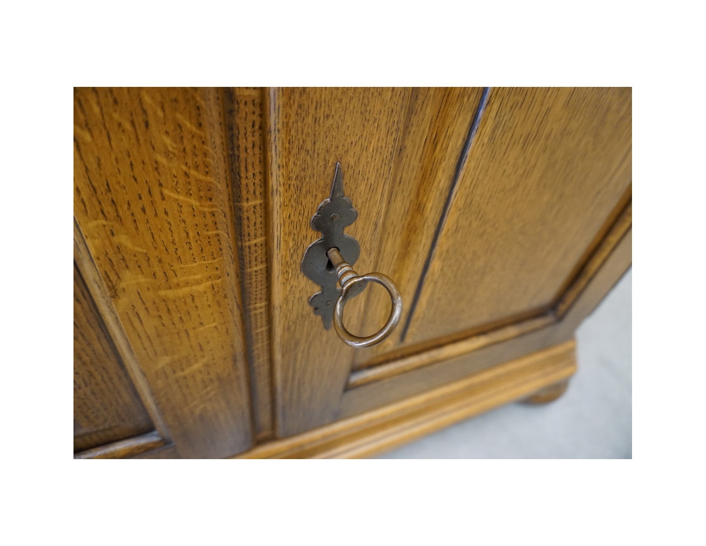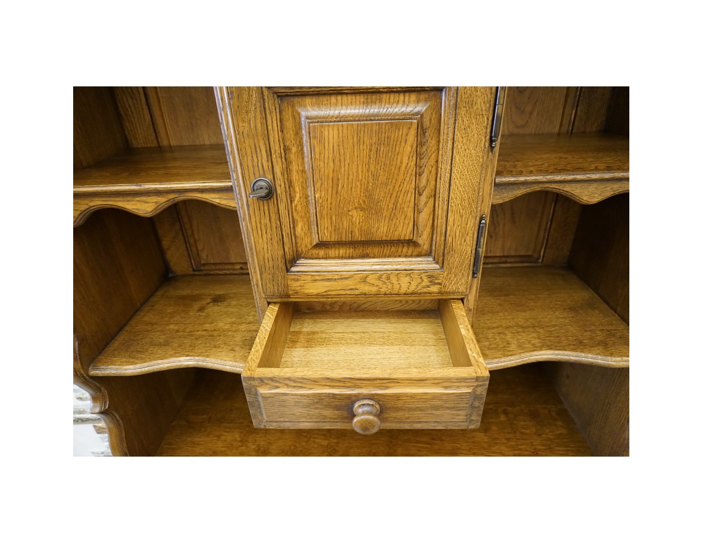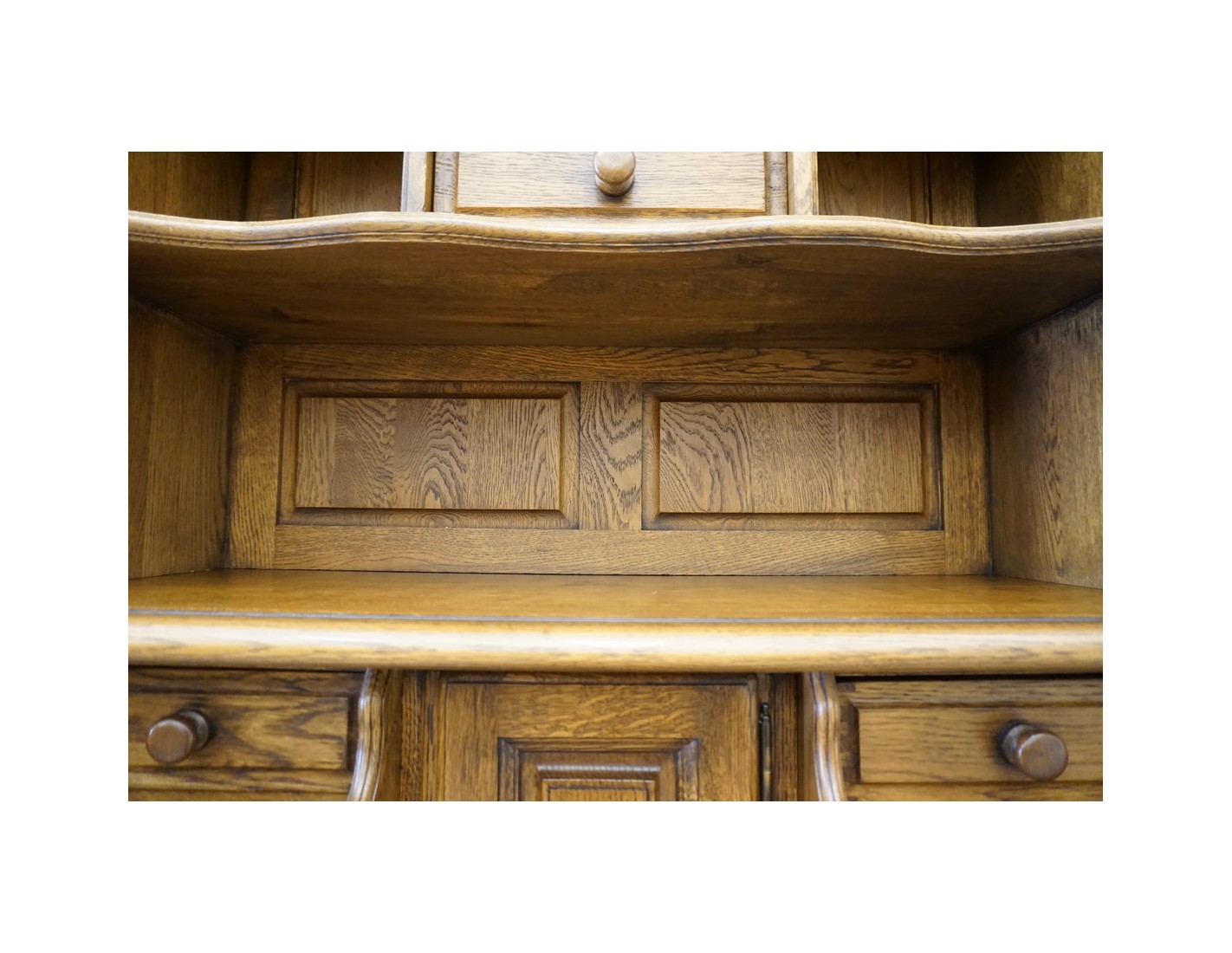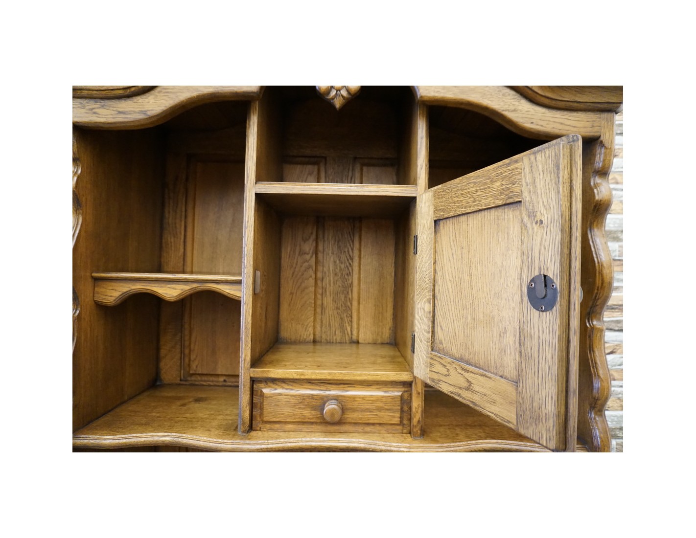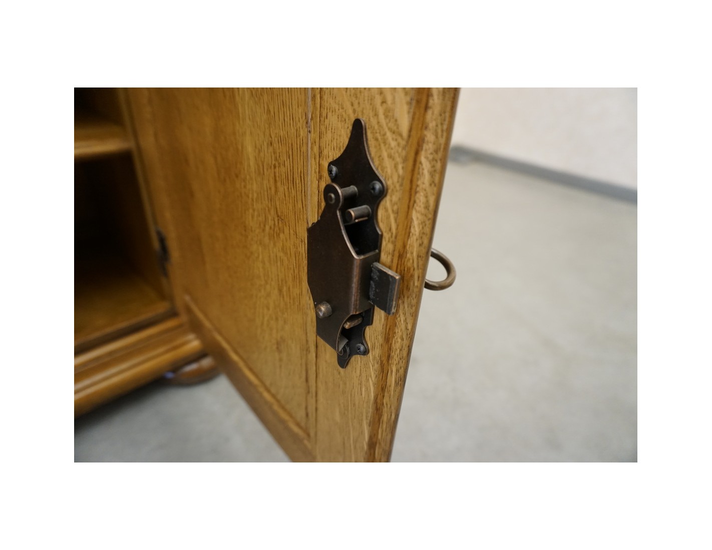 Piękny dębowy sekretarzyk z nadstawką, który łączy funkcjonalność z elegancją. Idealny do gabinetu, salonu lub sypialni. Wyposażony w liczne szufladki i półki, co umożliwia wygodne przechowywanie i organizację przedmiotów.