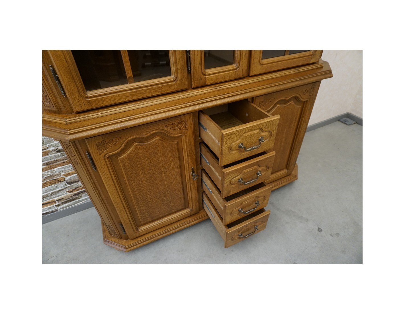 Witryna z Komodą Dębowa - 4 Szuflady i 4 Drzwi