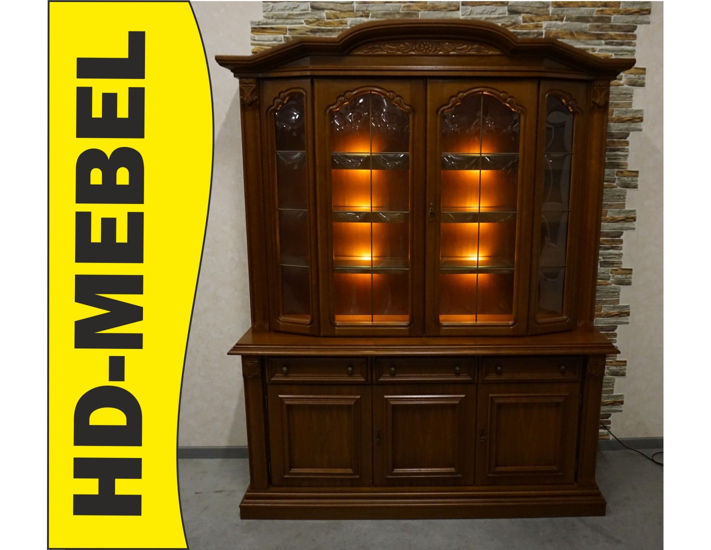 Witryna z Komodą Orzechowa Podświetlana, 5 Drzwiczek, 3 Szuflady