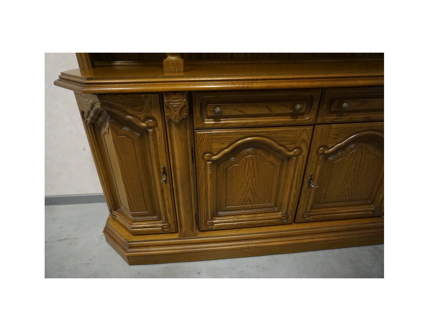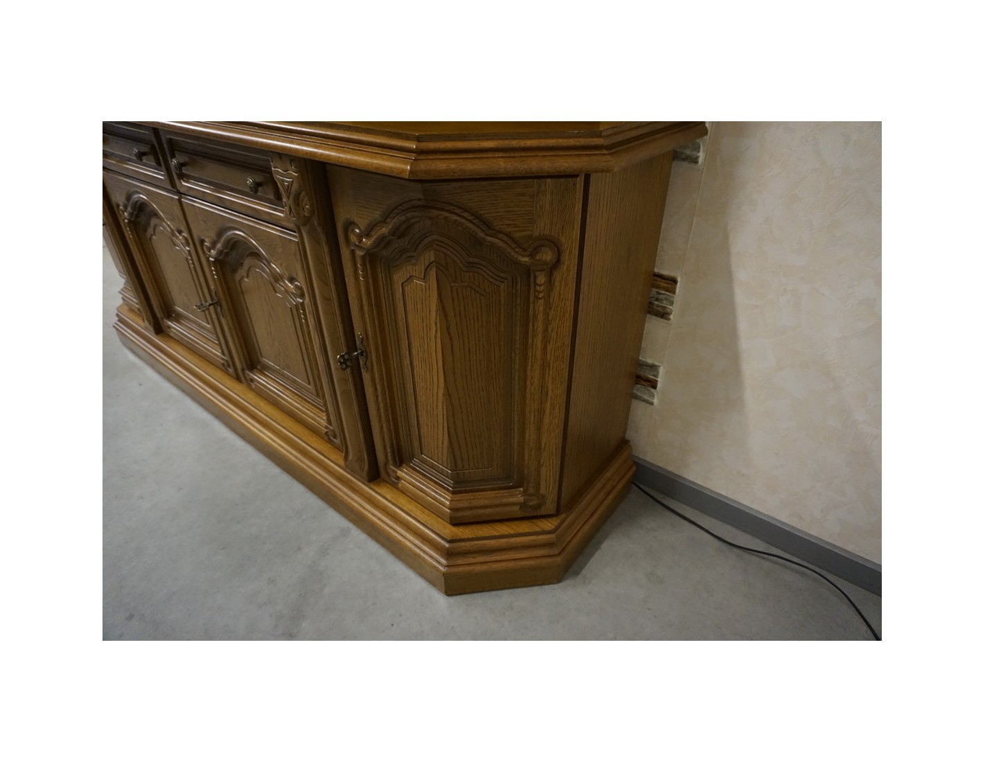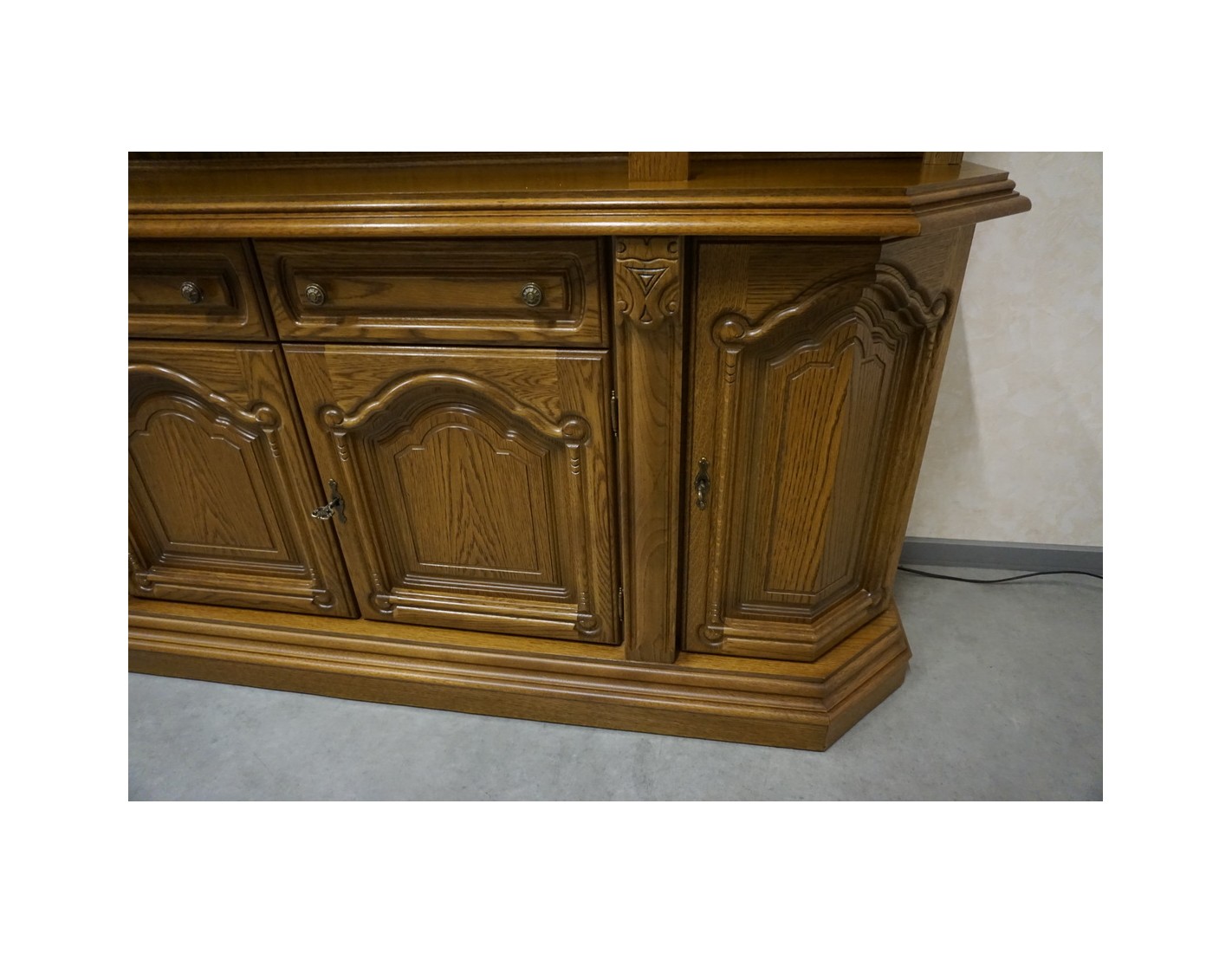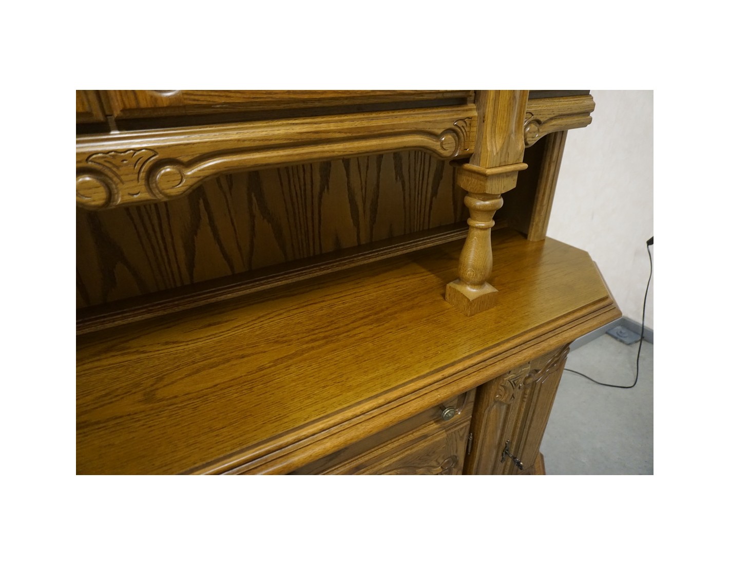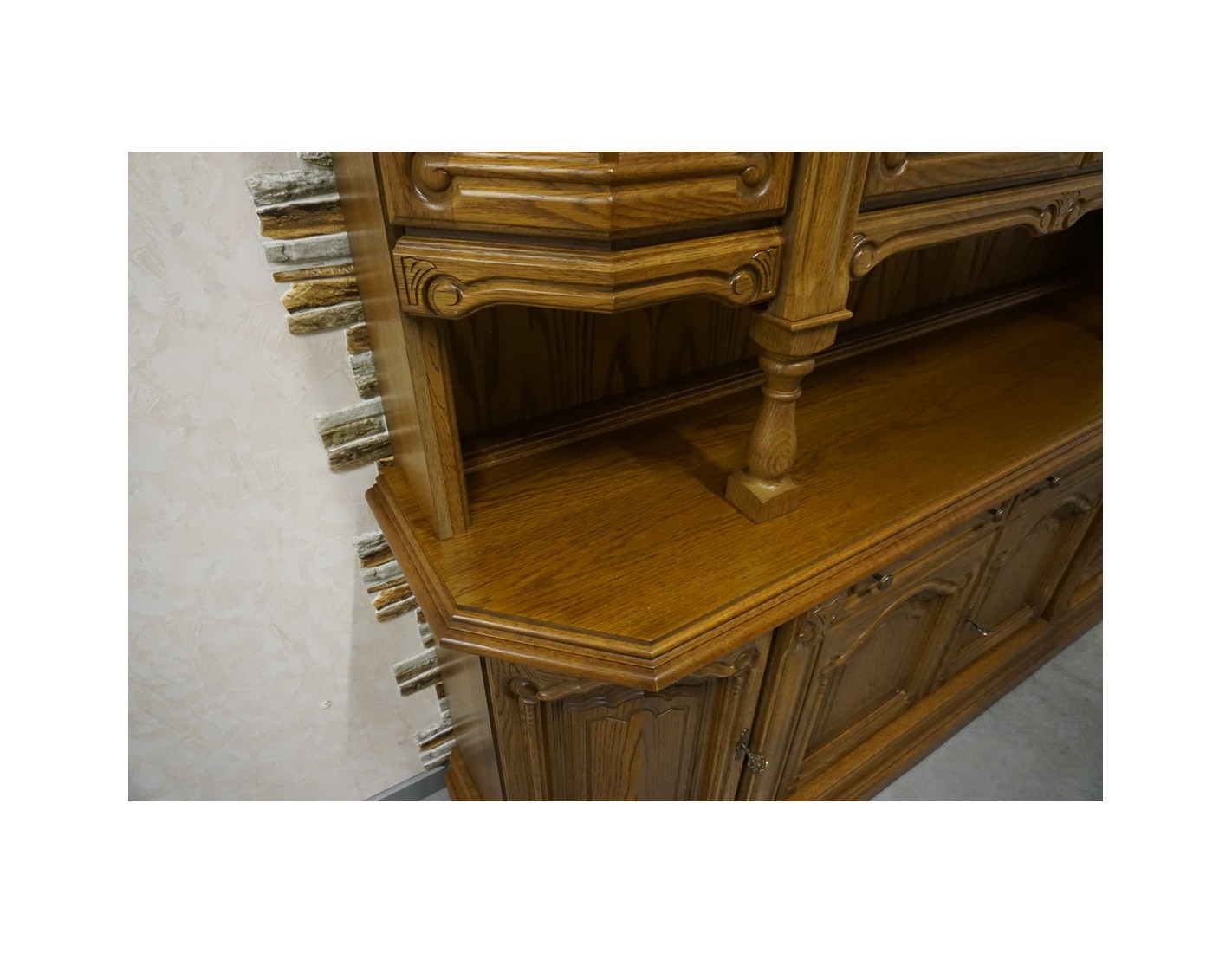 Elegancka i funkcjonalna witryna z komodą, wyposażona w podświetlane półki, które nadają wnętrzu nowoczesnego i przytulnego charakteru. Idealna do ekspozycji dekoracji i przechowywania niezbędnych przedmiotów.