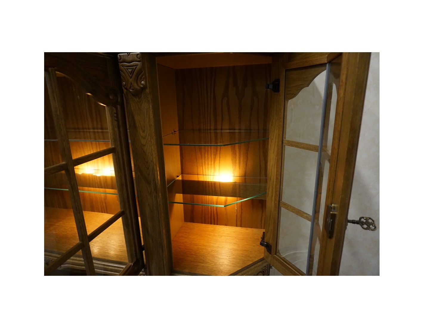 - Podświetlenie podkreślające elegancję wnętrza i eksponowanych przedmiotów