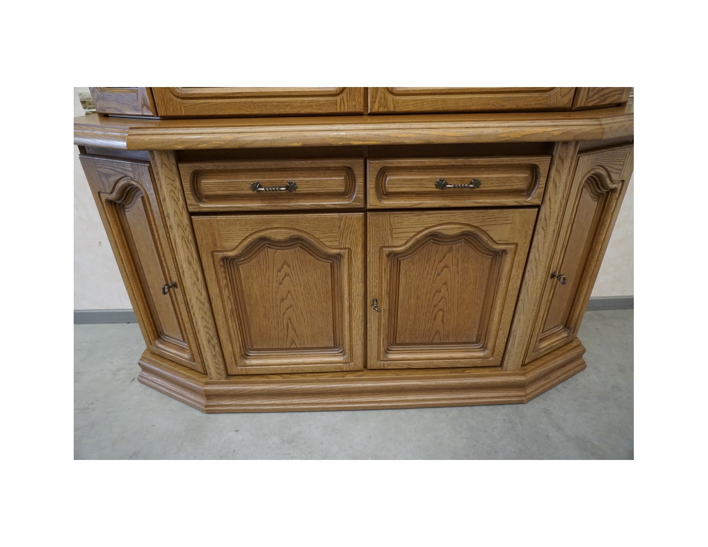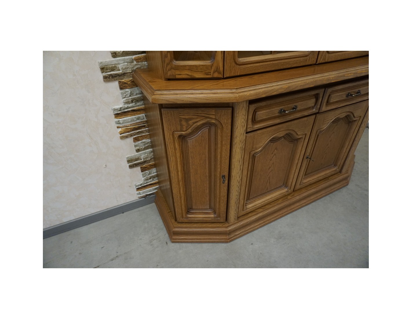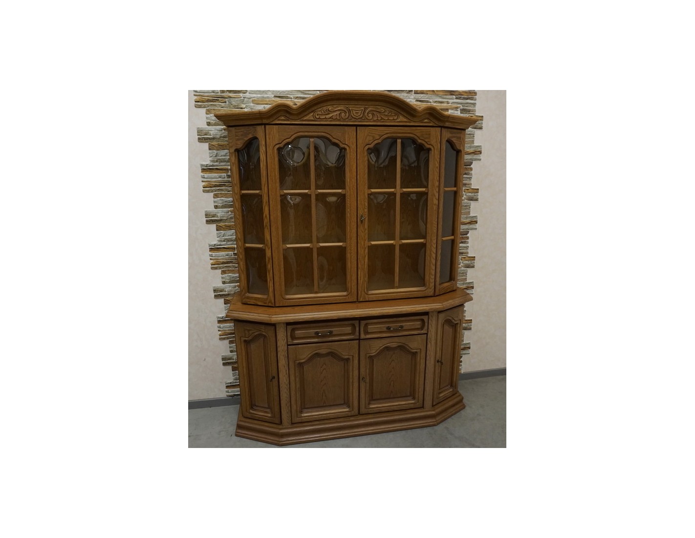 Elegancka witryna z komodą to połączenie funkcjonalności i klasycznego stylu. Idealna do salonu, jadalni lub gabinetu – pozwala na przechowywanie zarówno zastawy, jak i dokumentów czy dekoracji. Przeszklona górna część świetnie sprawdzi się do ekspozycji, natomiast dolna część z szufladami i pełnymi drzwiczkami zapewnia miejsce na rzeczy mniej reprezentacyjne.