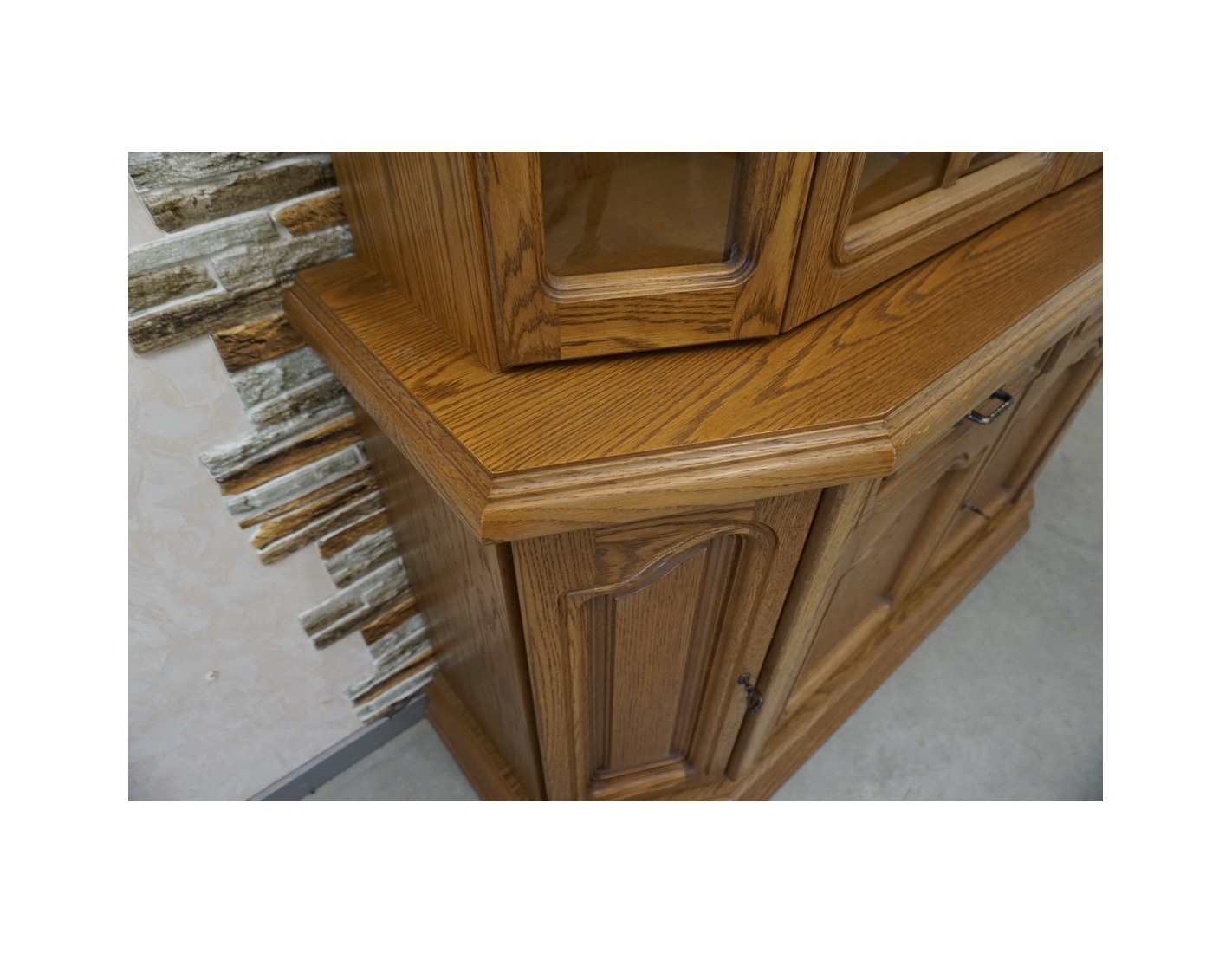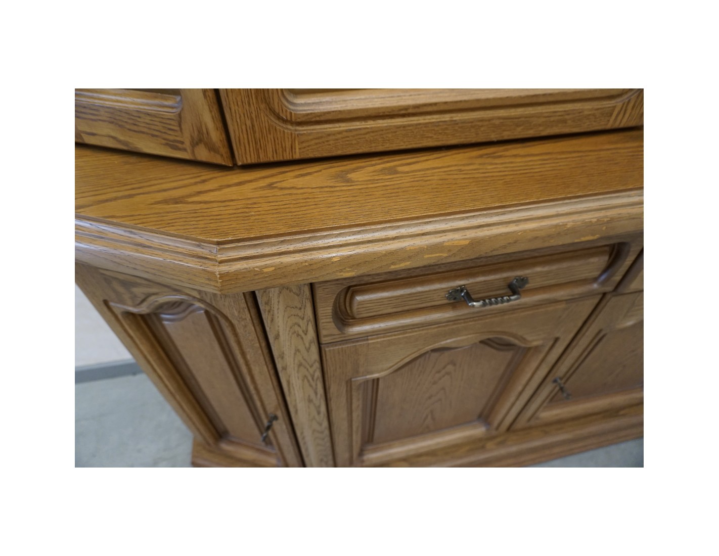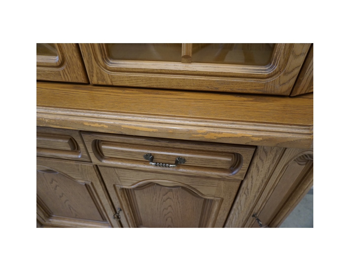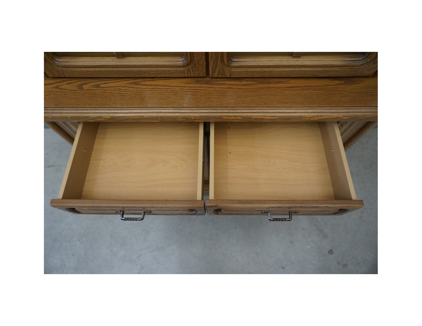 Delikatne ślady użytkowania na rancie komody widoczne na zdjęciach