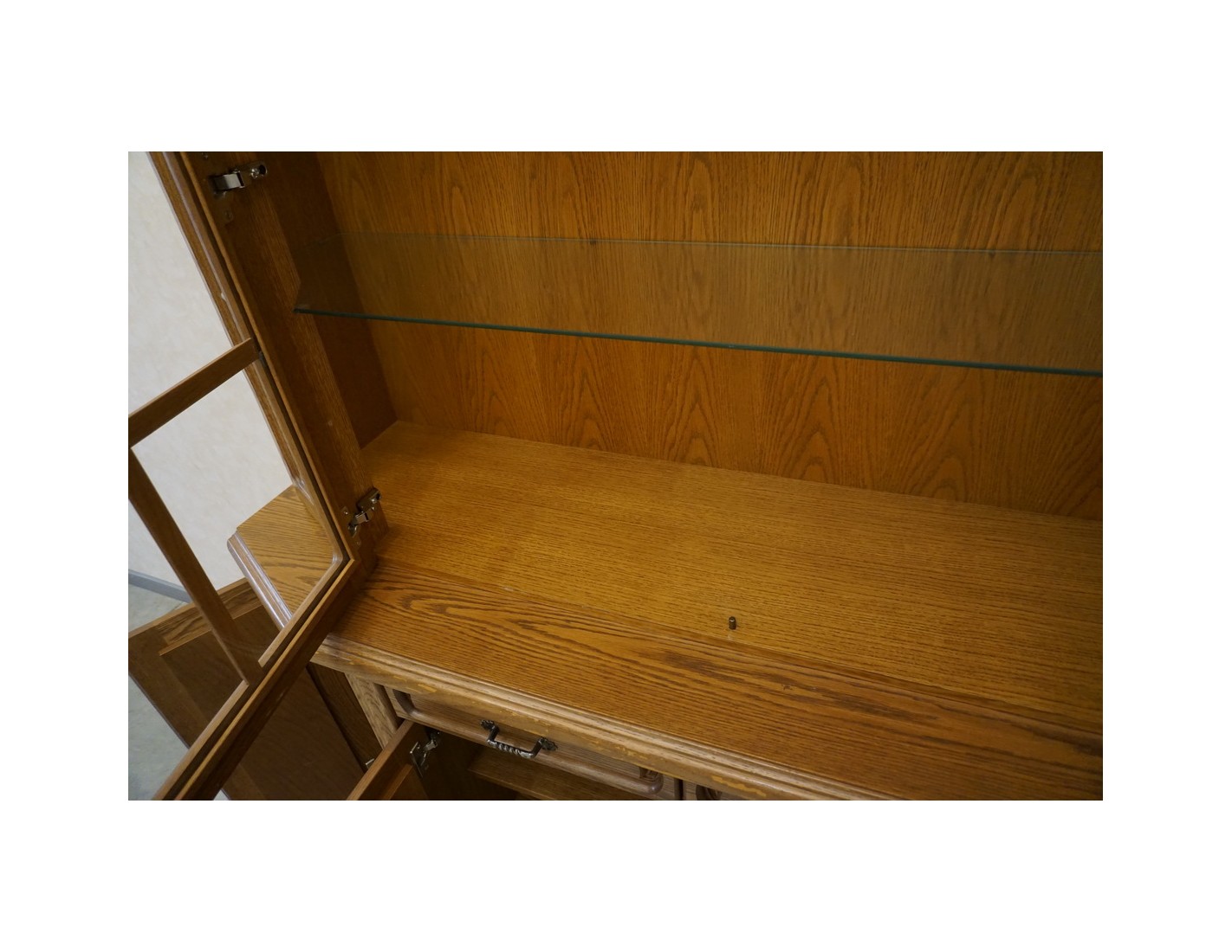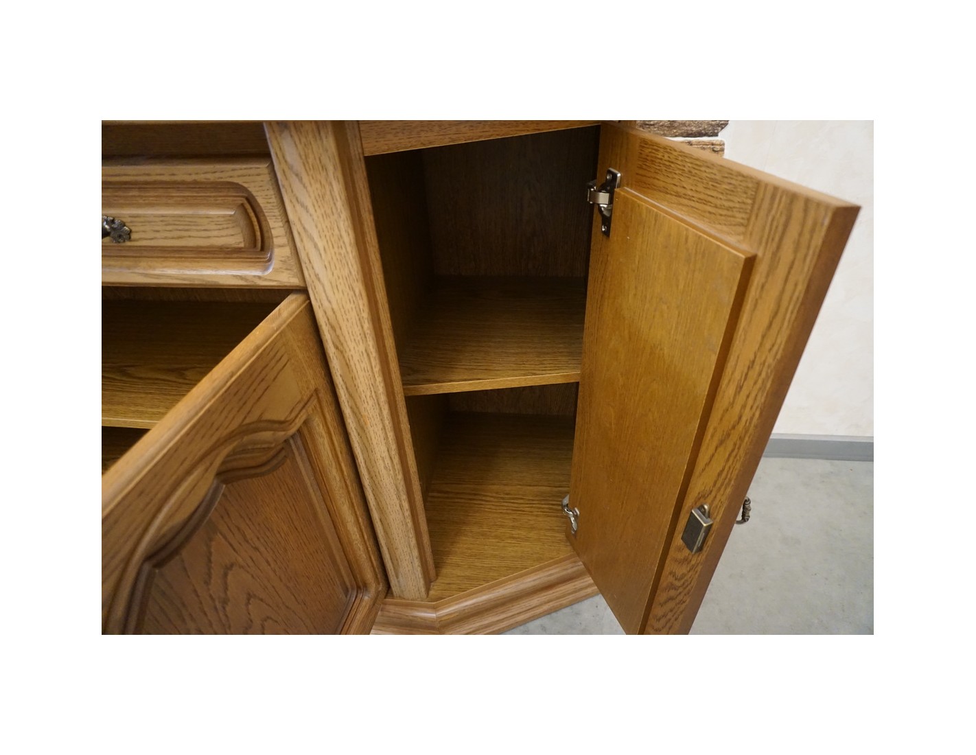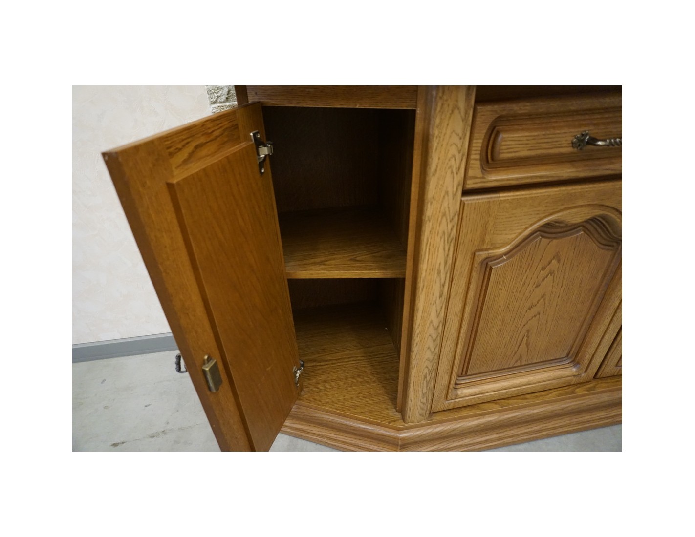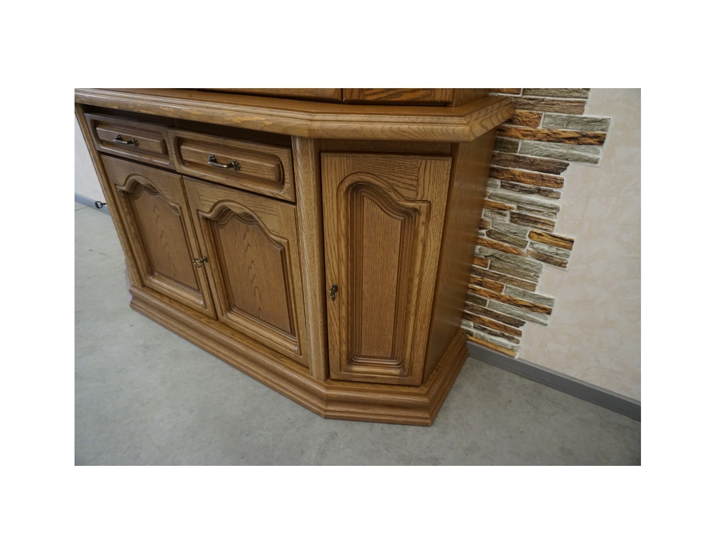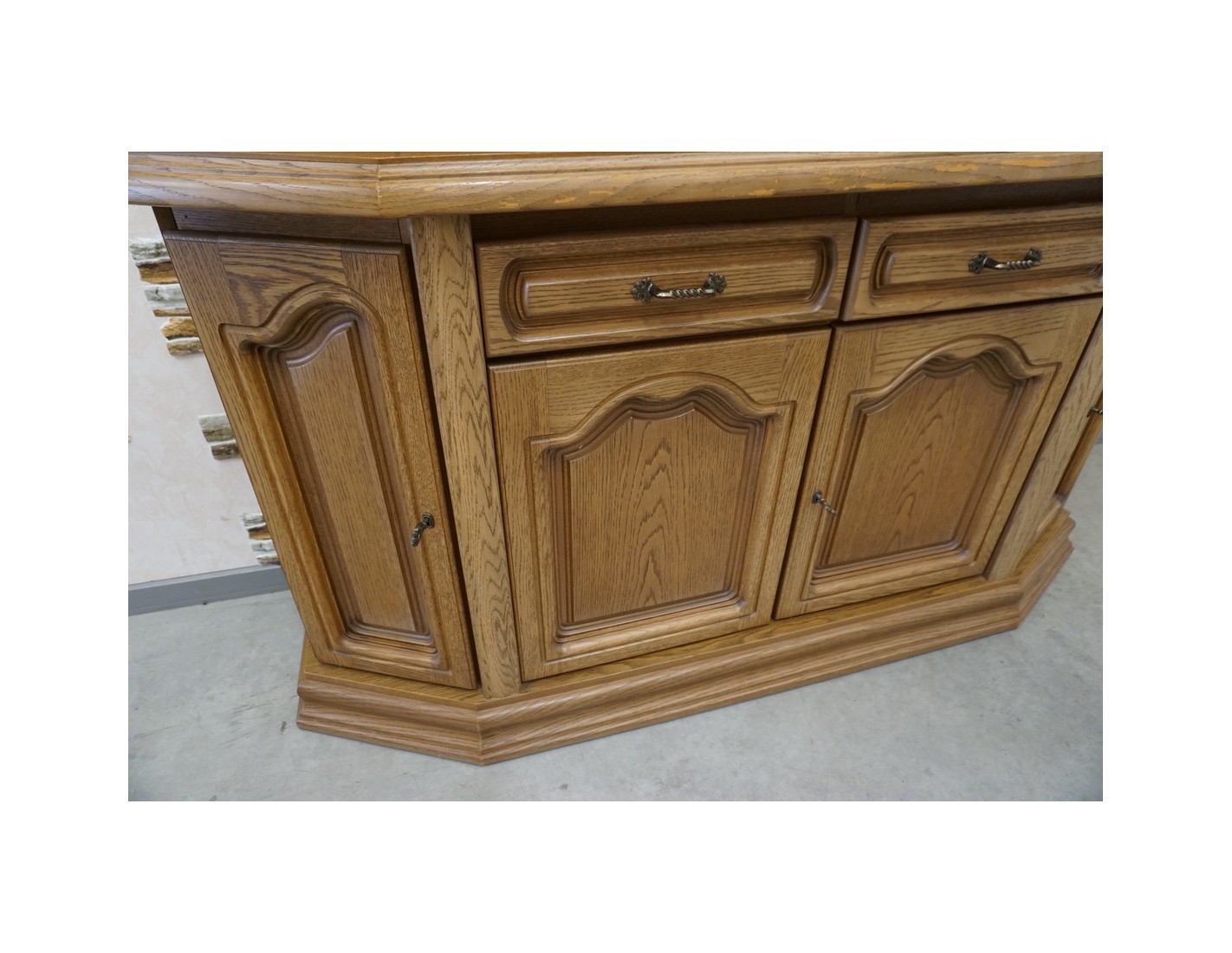 Delikatne ślady użytkowania na rancie komody widoczne na zdjęciach