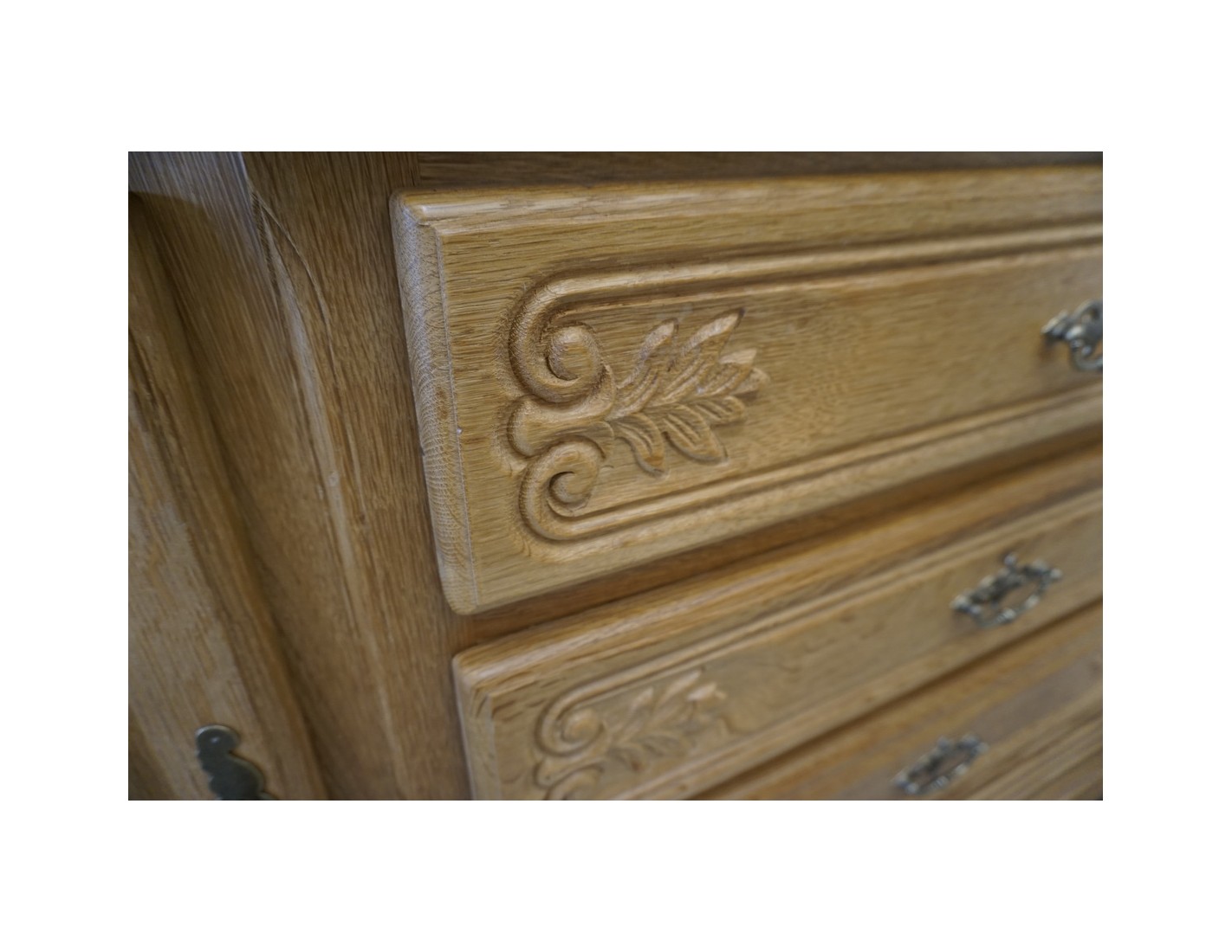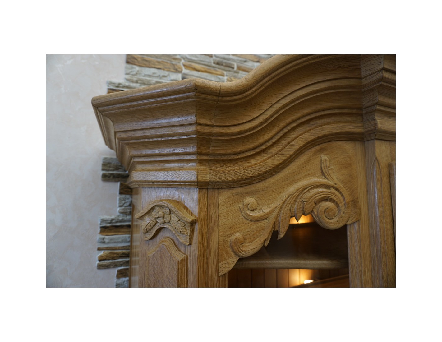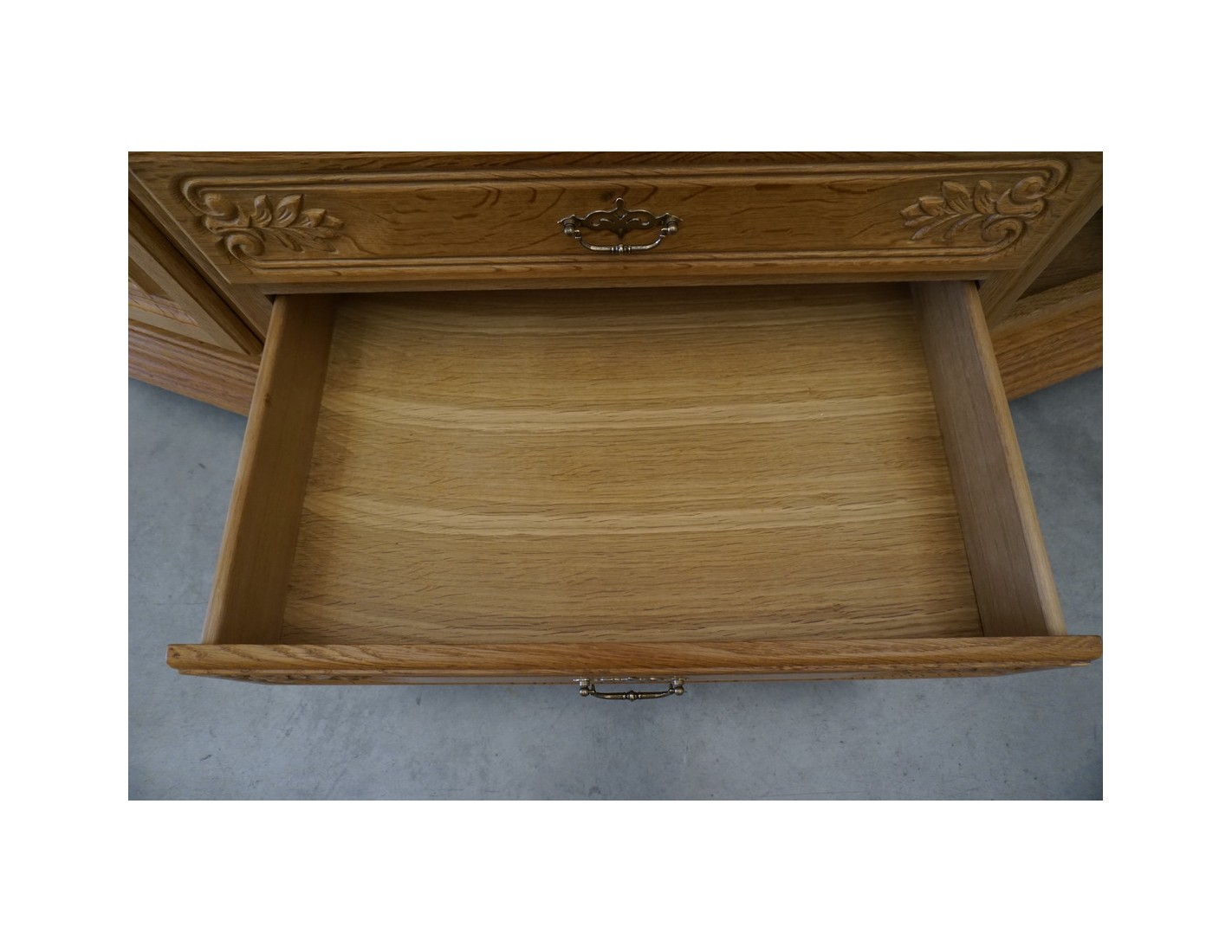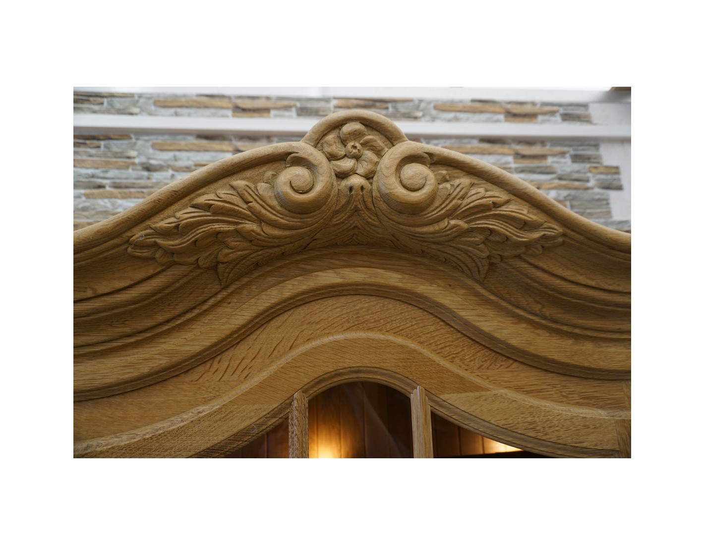Elegancka i funkcjonalna witryna z litego dębu, która doskonale łączy w sobie estetykę z praktycznym zastosowaniem. Jej solidna konstrukcja i klasyczny design sprawiają, że będzie ozdobą każdego wnętrza. Podświetlenie dodatkowo podkreśla naturalne piękno drewna oraz eksponuje zawartość górnej części witryny.