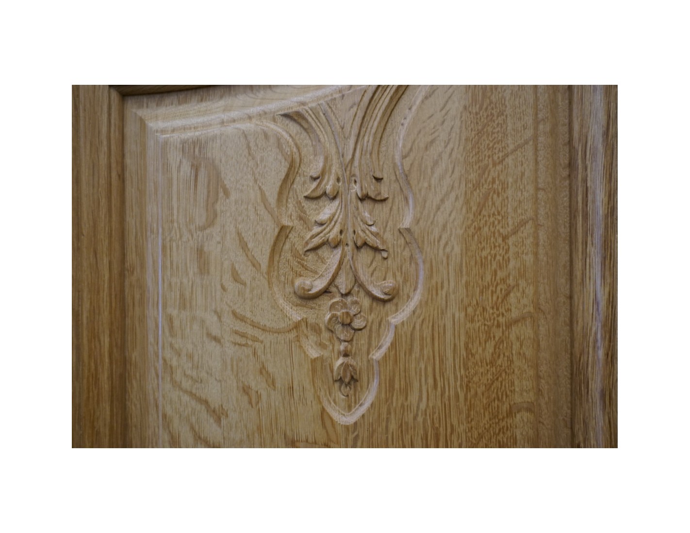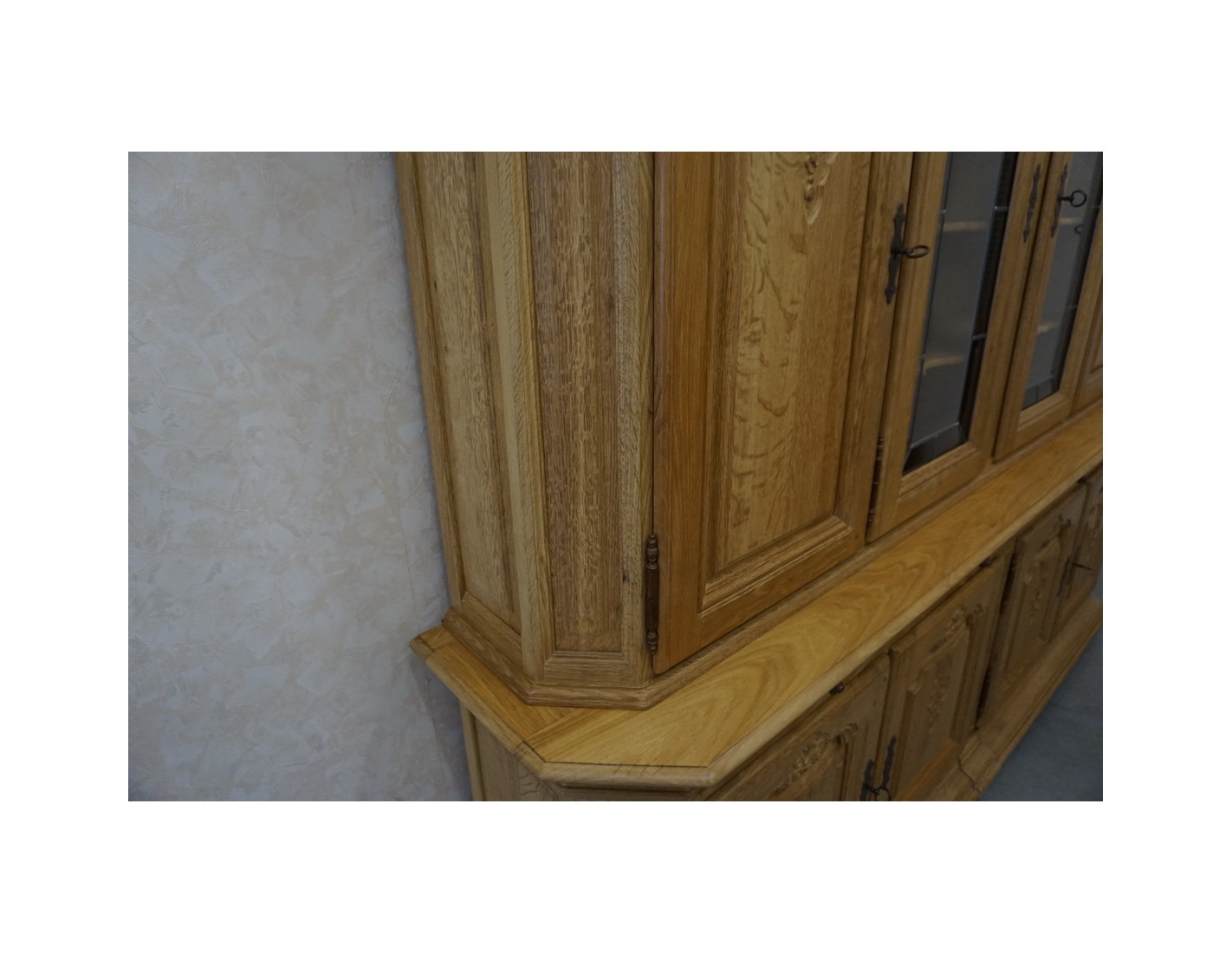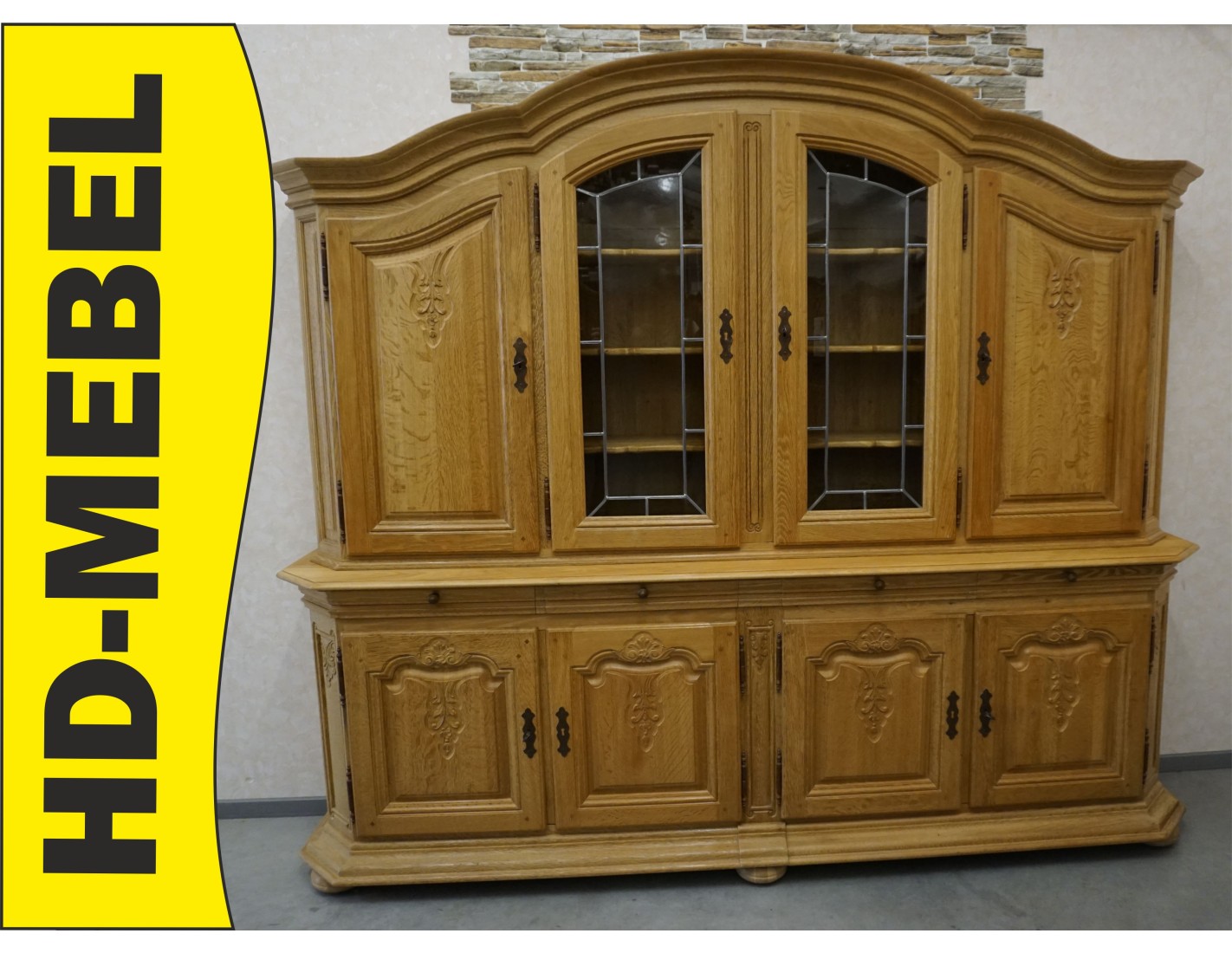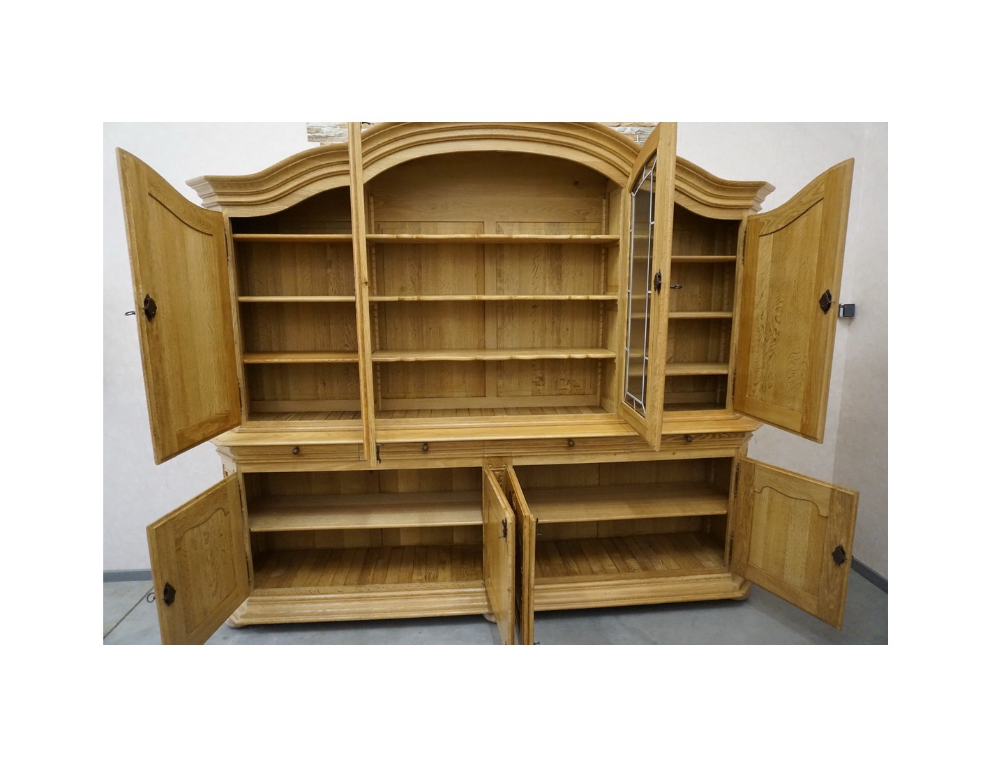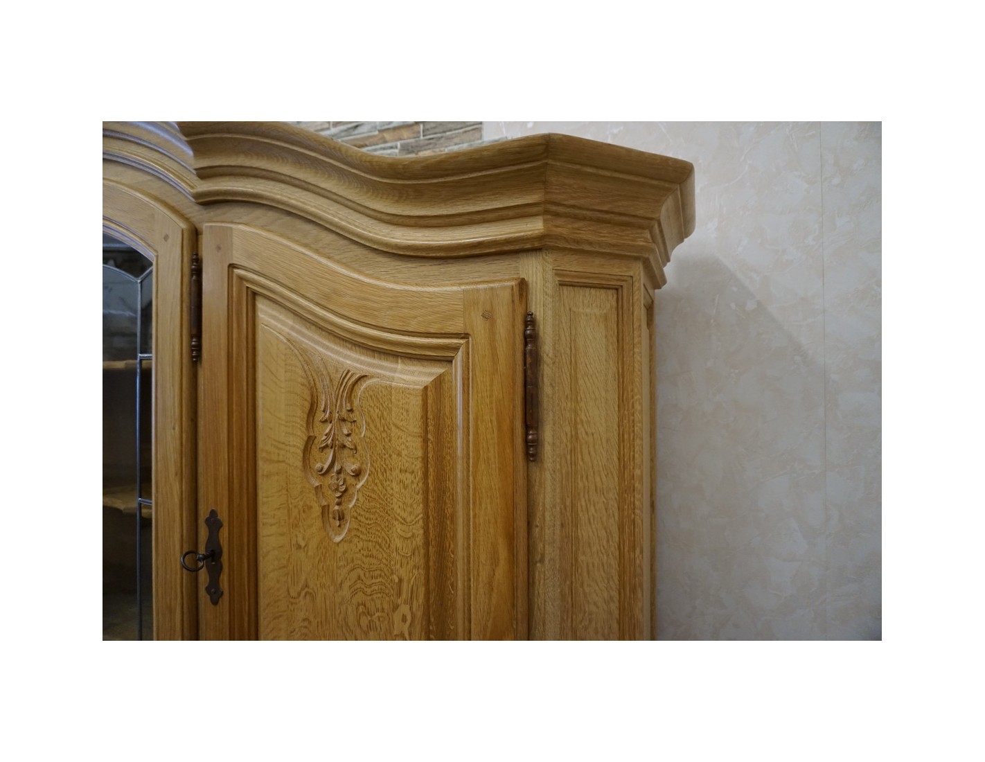 Okazała witryna z komodą z litego dębu to doskonały wybór do przestronnych wnętrz, takich jak salon, jadalnia czy biblioteka. Została wyposażona w osiem drzwiczek oraz cztery pojemne szuflady, co zapewnia ogromną ilość miejsca do przechowywania oraz eksponowania przedmiotów. Klasyczna forma i solidne wykonanie podkreślają prestiżowy charakter mebla.