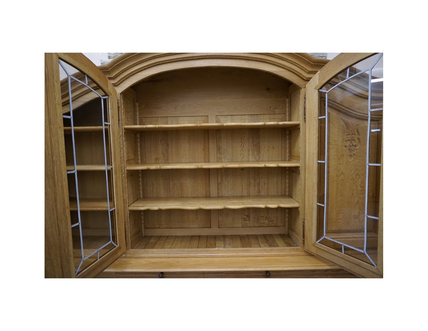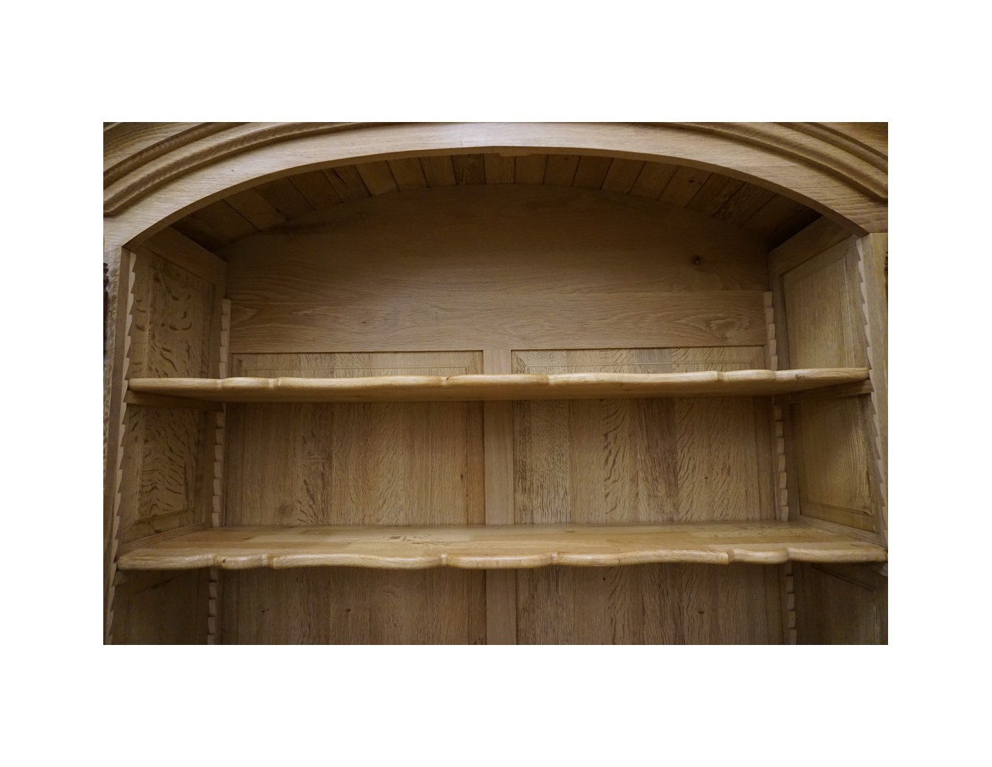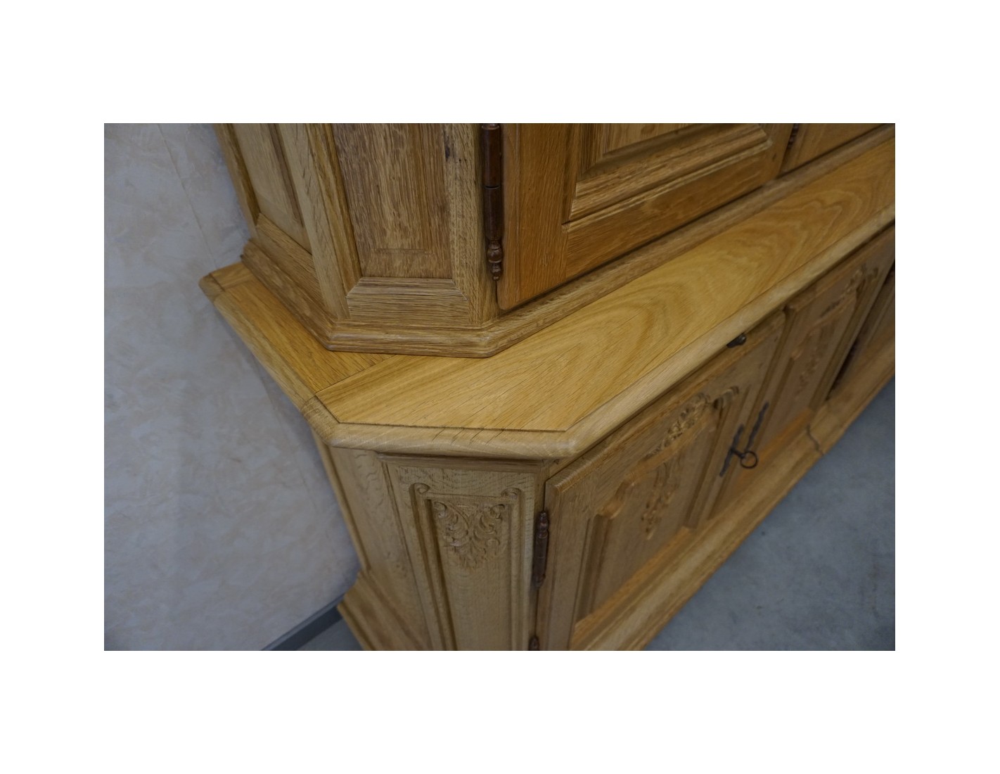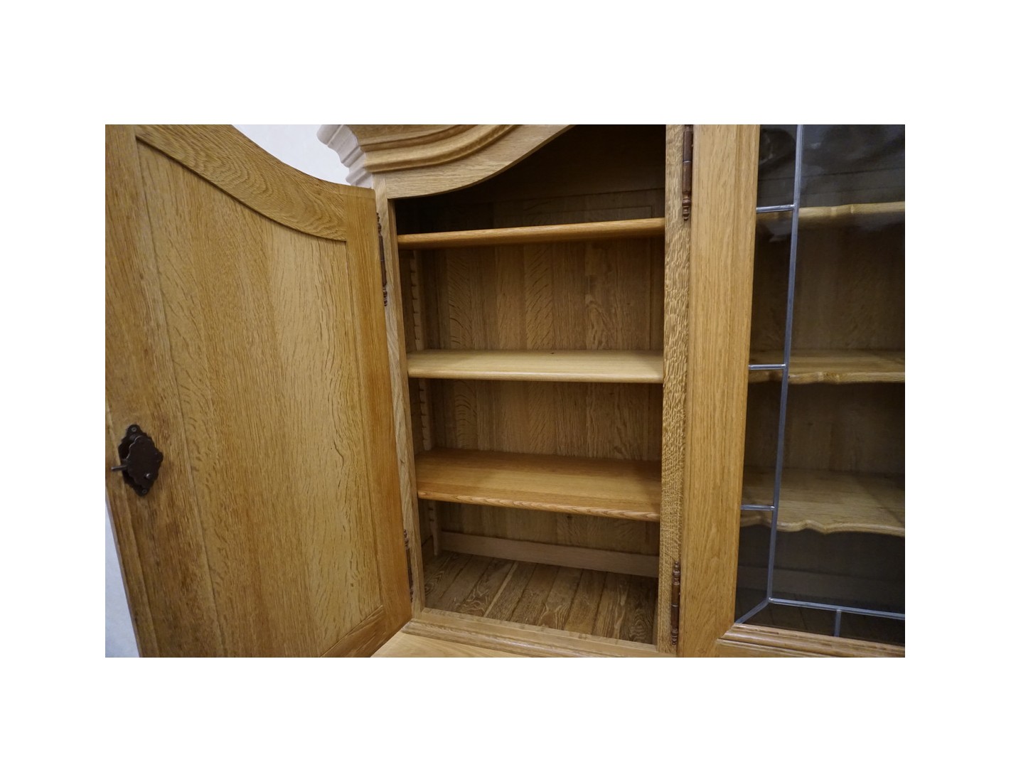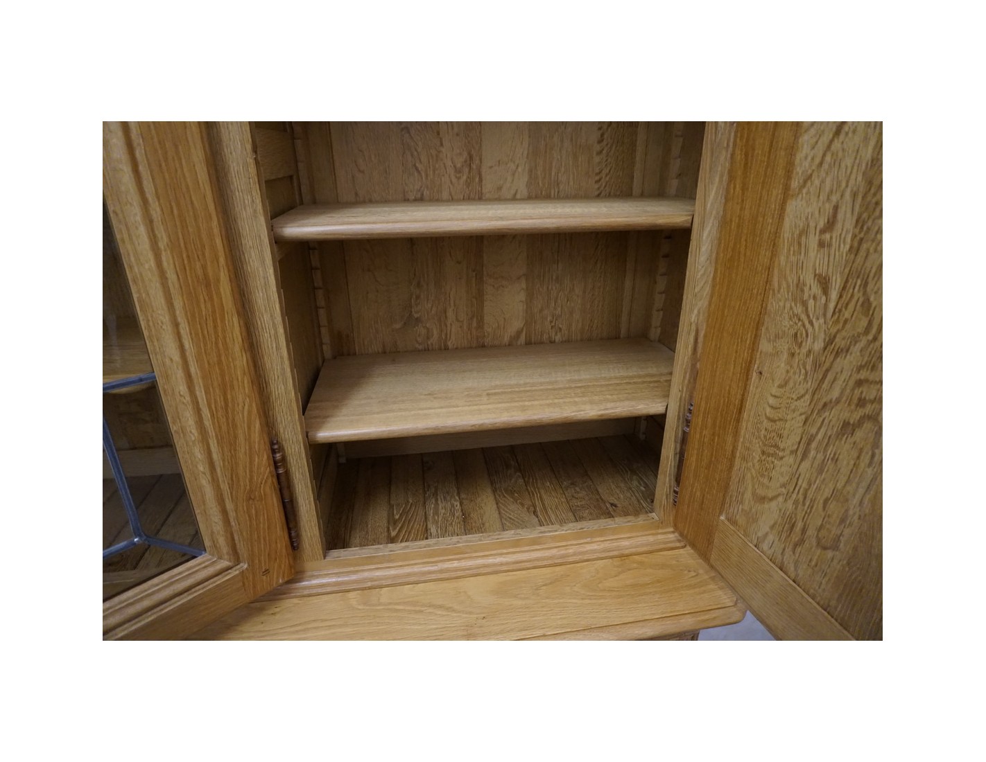 Okazała witryna z komodą z litego dębu to doskonały wybór do przestronnych wnętrz, takich jak salon, jadalnia czy biblioteka. Została wyposażona w osiem drzwiczek oraz cztery pojemne szuflady, co zapewnia ogromną ilość miejsca do przechowywania oraz eksponowania przedmiotów. Klasyczna forma i solidne wykonanie podkreślają prestiżowy charakter mebla.