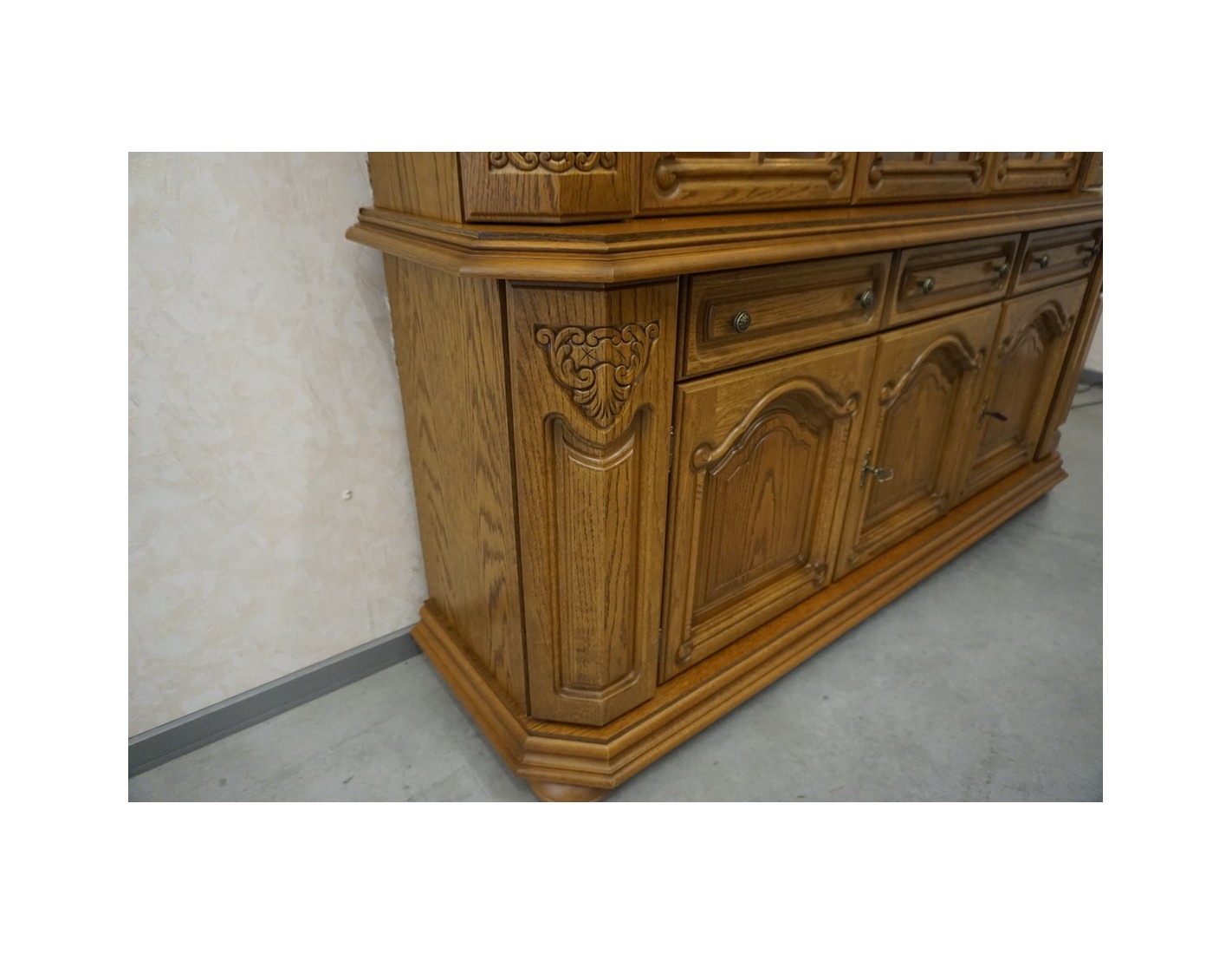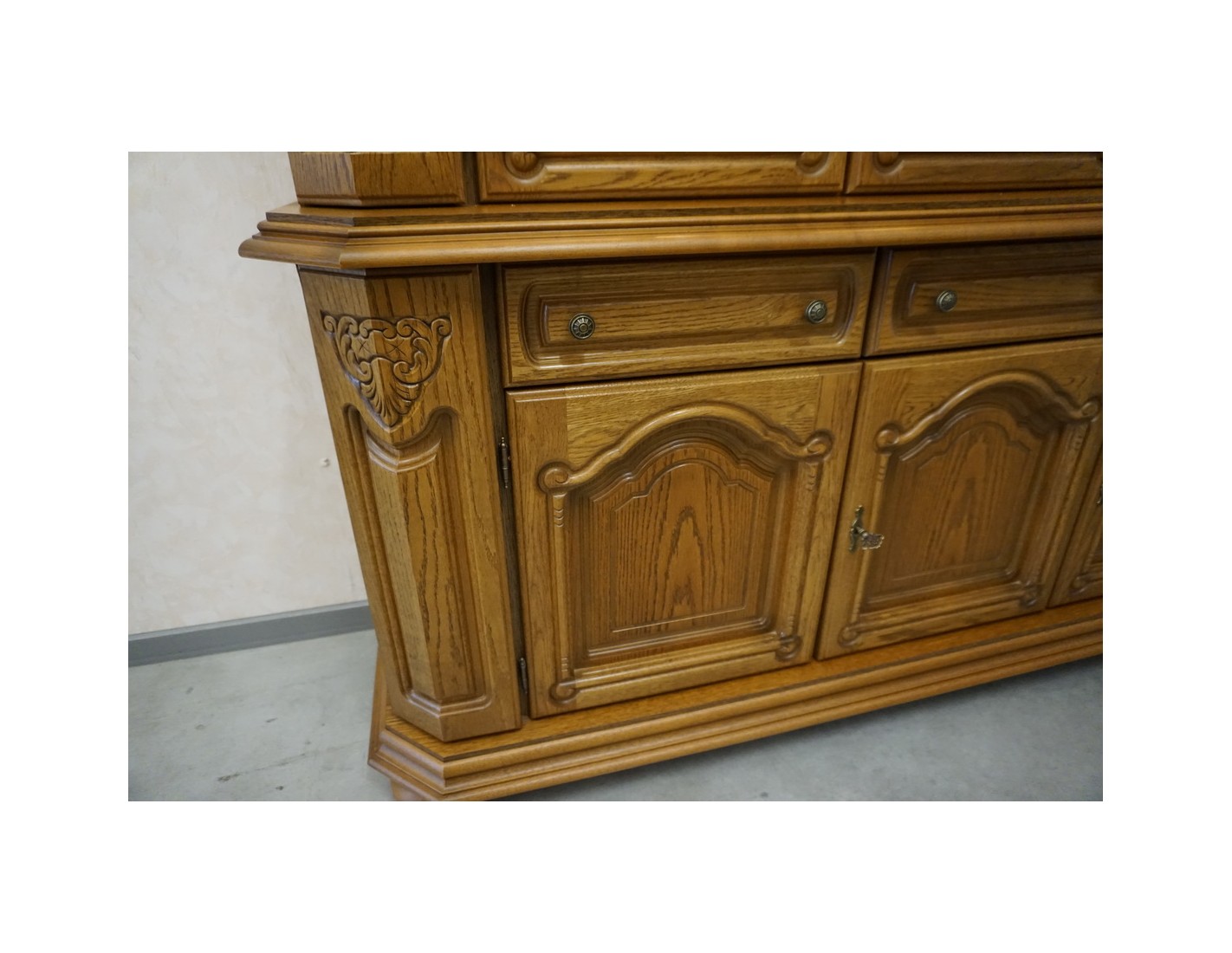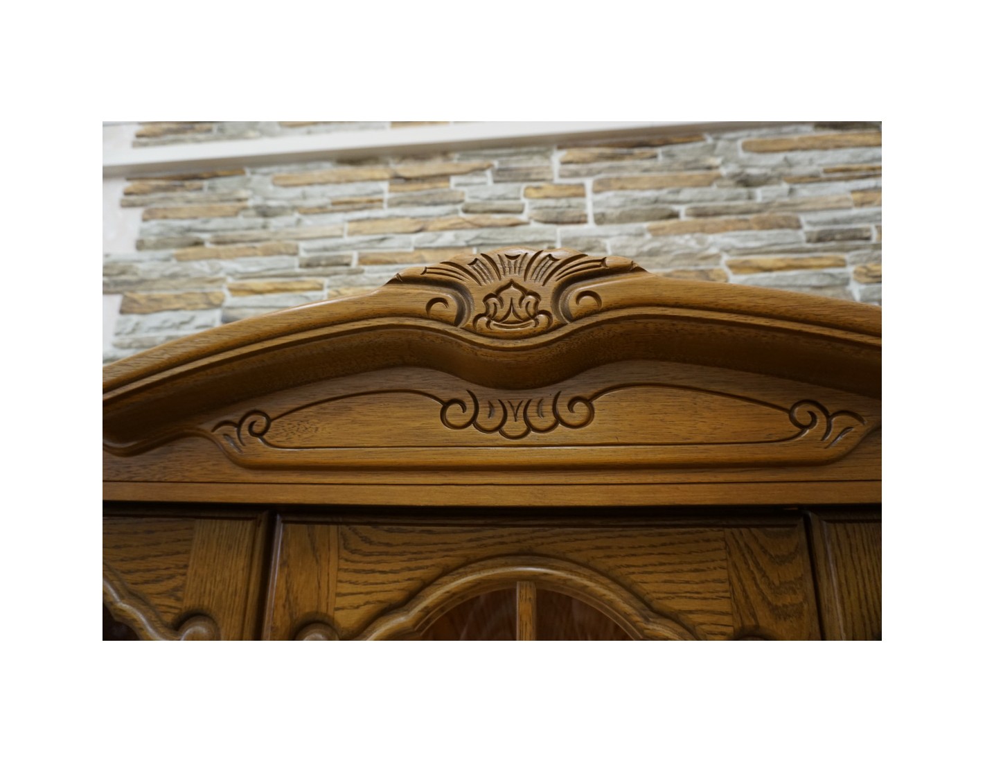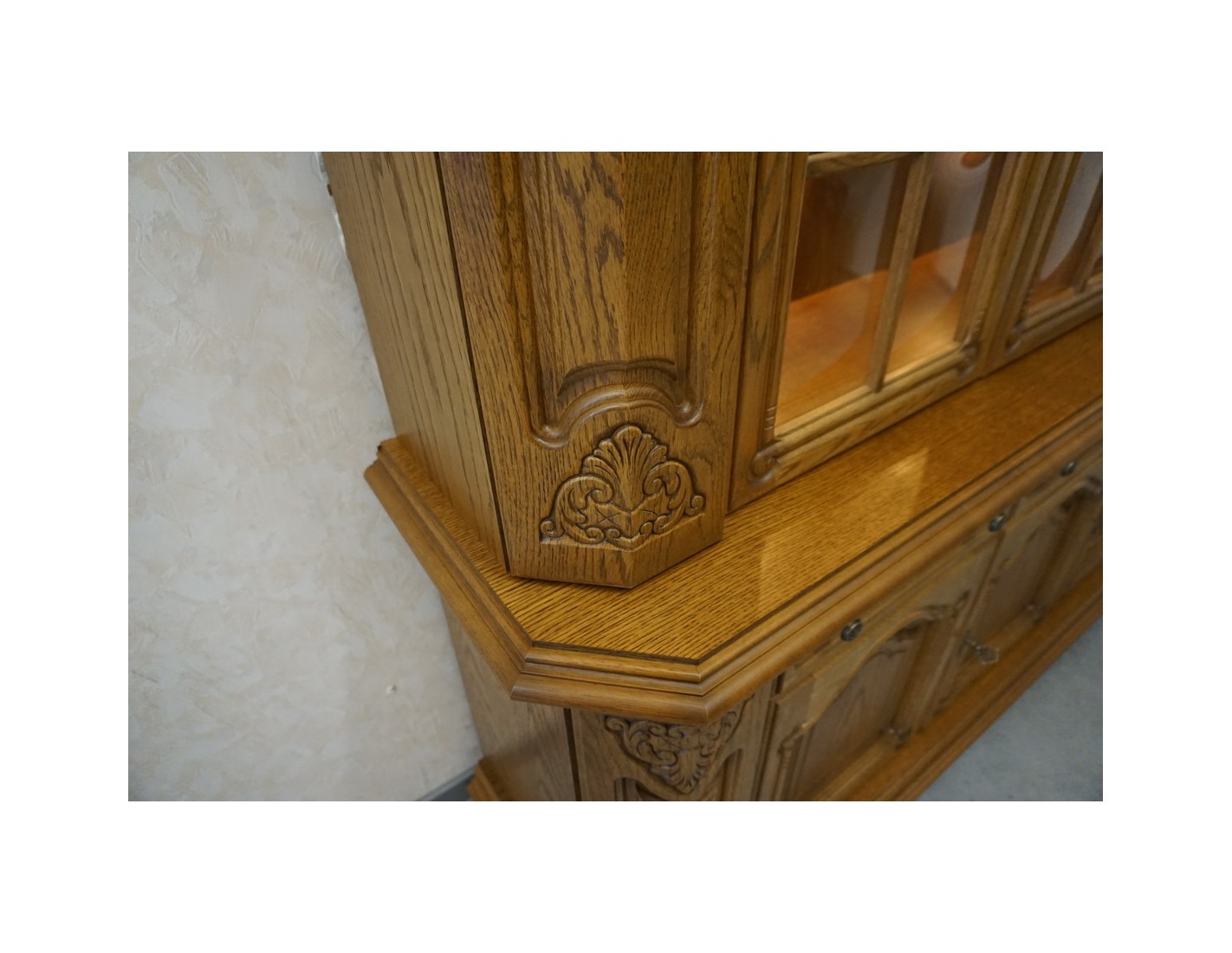 Elegancka witryna z komodą wykonana z dębu, łącząca funkcjonalność i ponadczasowy styl. Podświetlane wnętrze podkreśla ekspozycję przedmiotów w górnej części, a pojemna komoda zapewnia miejsce na przechowywanie akcesoriów i dokumentów.