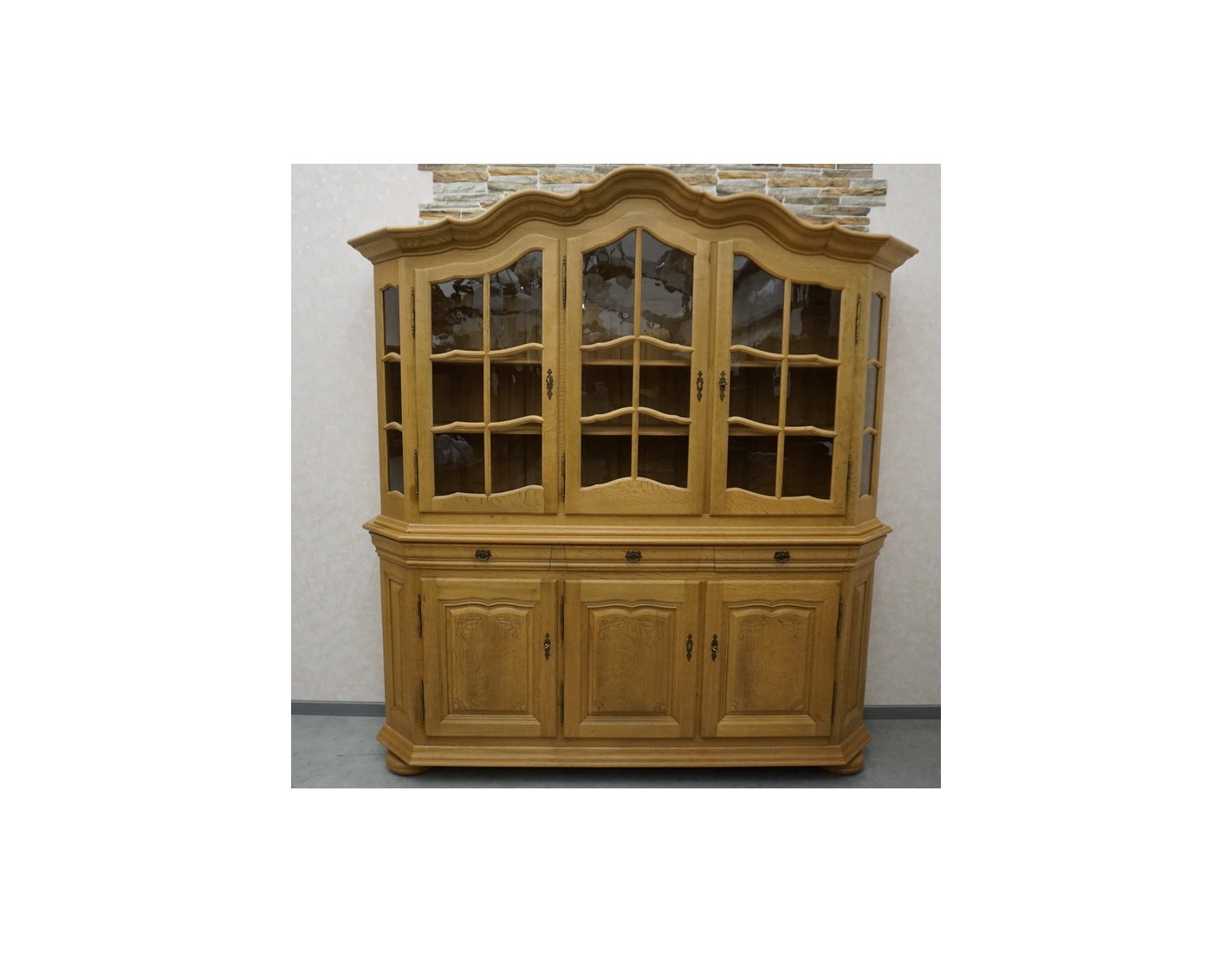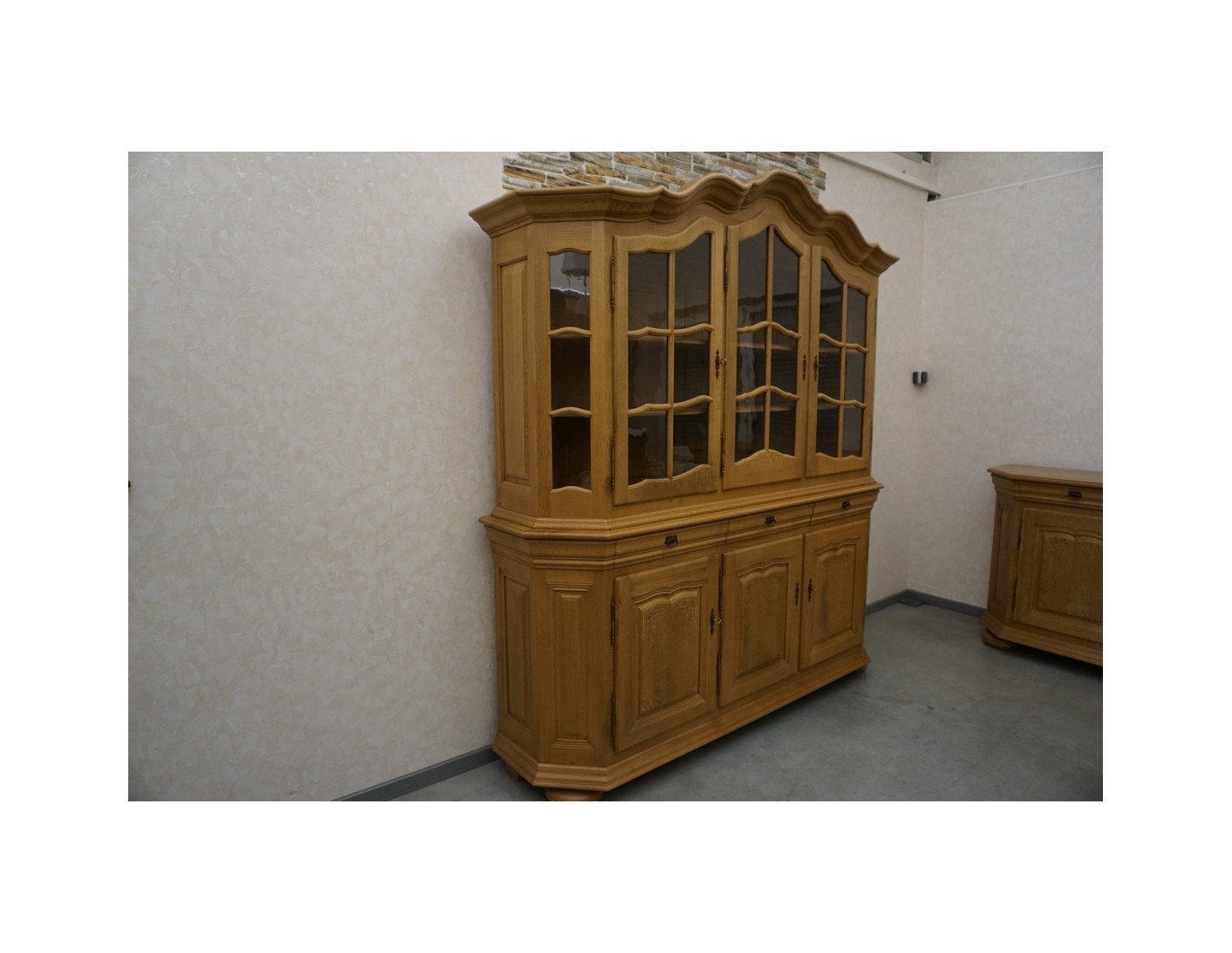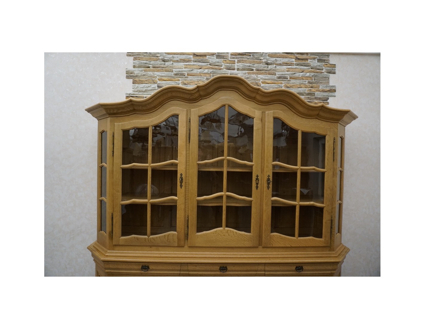 Elegancka i solidna witryna z komodą wykonana z litego dębu, łącząca funkcjonalność z ponadczasowym stylem. Mebel oferuje obszerną przestrzeń do przechowywania oraz ekspozycji, idealny do salonu, jadalni lub gabinetu.