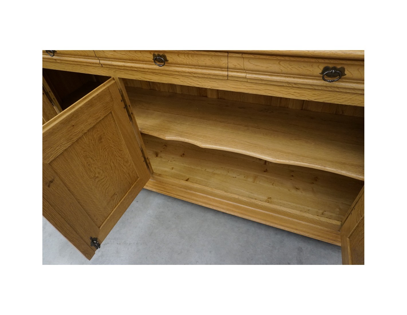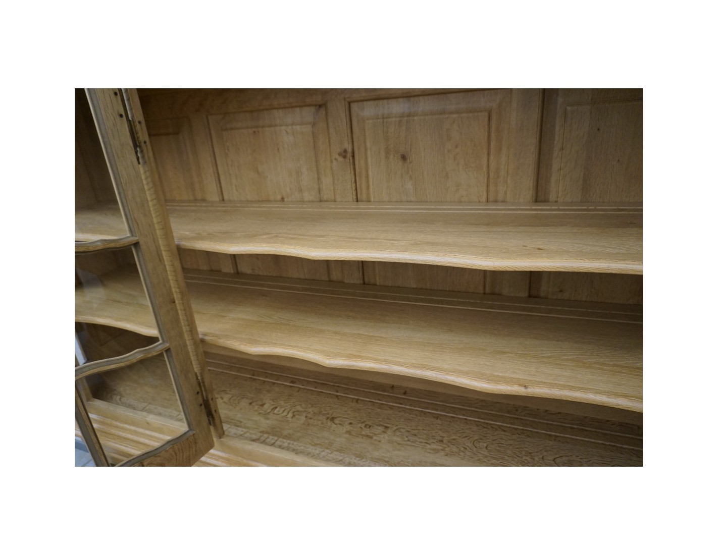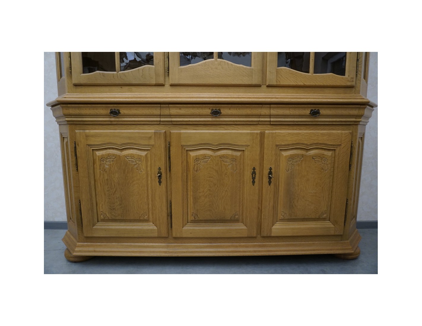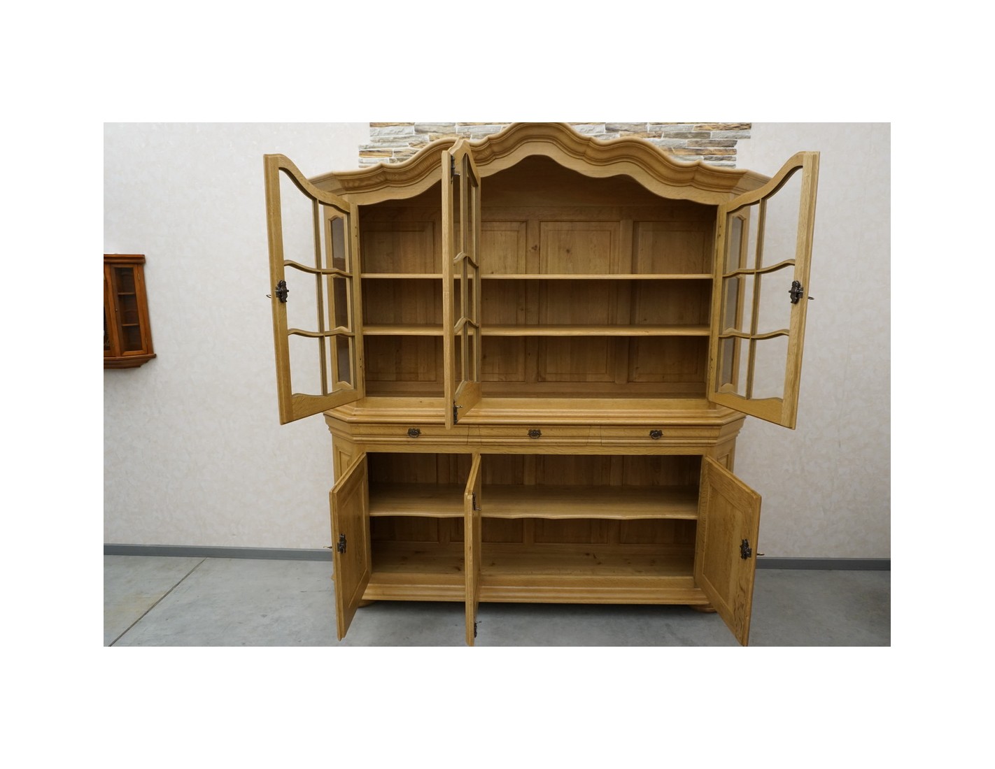 Elegancka i solidna witryna z komodą wykonana z litego dębu, łącząca funkcjonalność z ponadczasowym stylem. Mebel oferuje obszerną przestrzeń do przechowywania oraz ekspozycji, idealny do salonu, jadalni lub gabinetu.