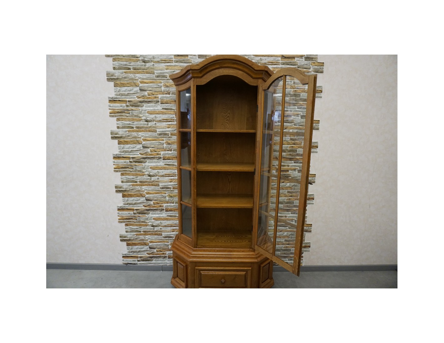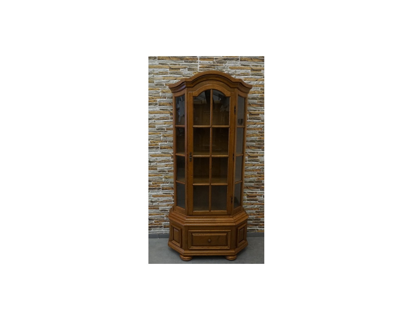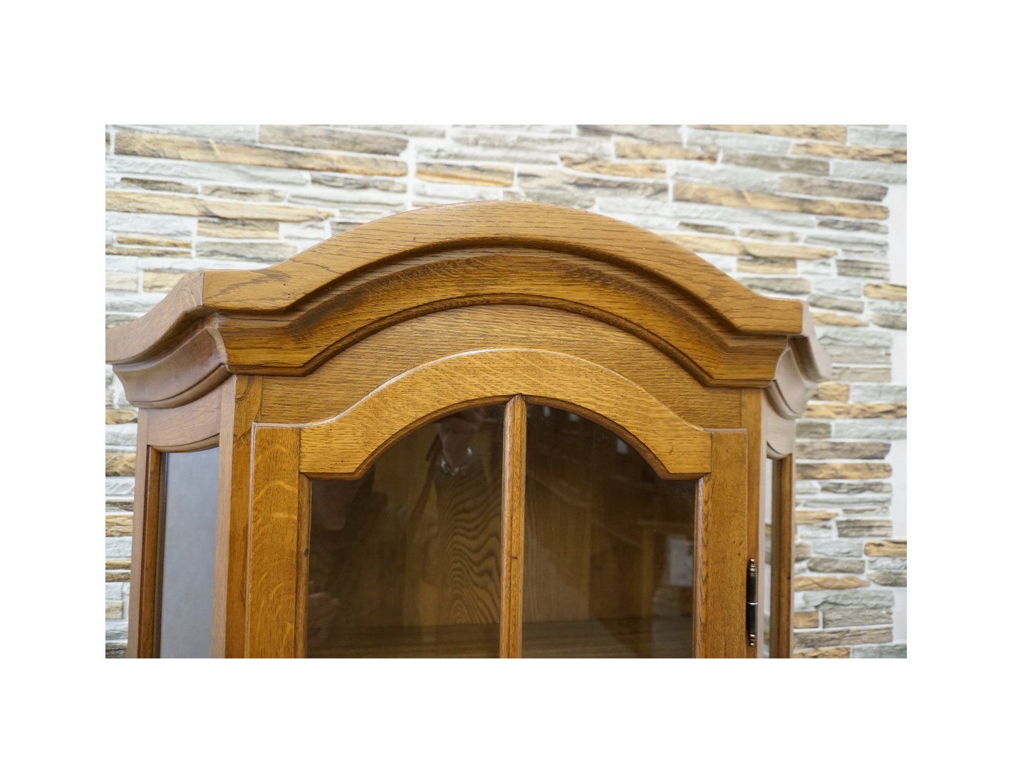 Witryna łączy klasyczną formę z funkcjonalnością, dodając wnętrzu elegancji i charakteru. Doskonała jako element wystroju w stylu tradycyjnym lub rustykalnym.