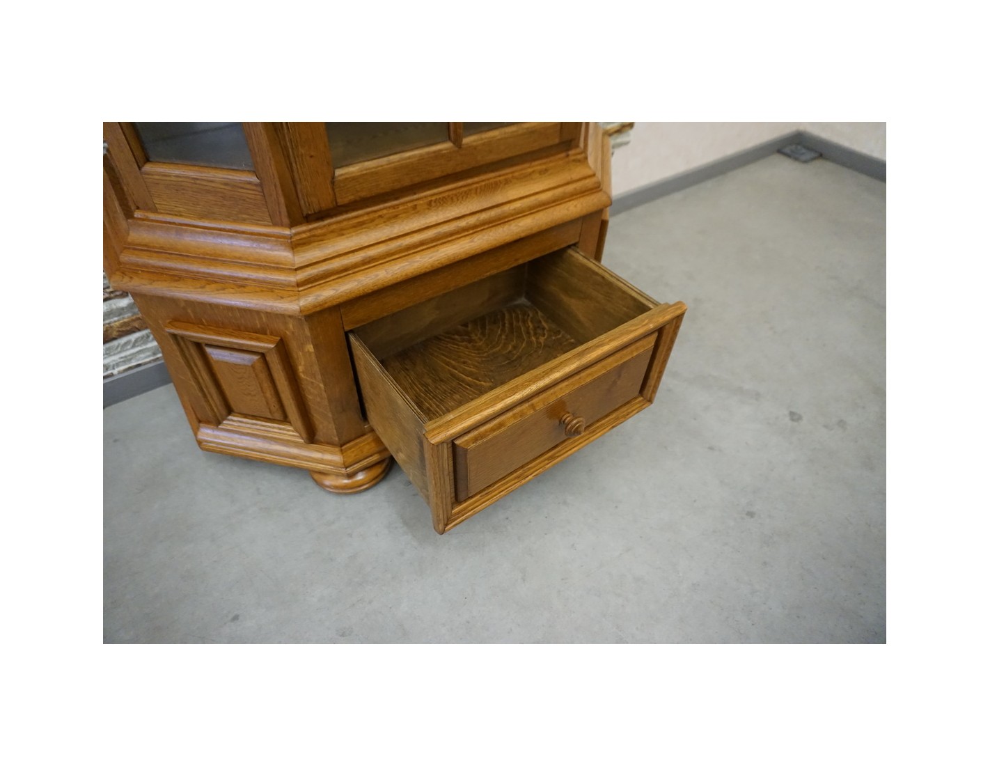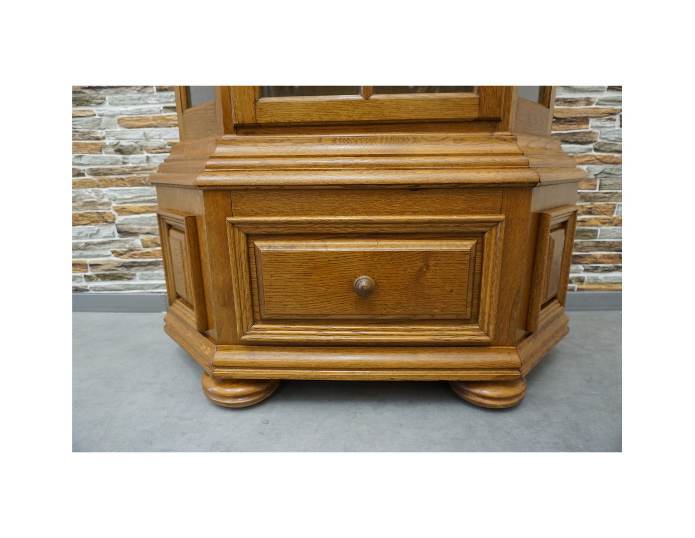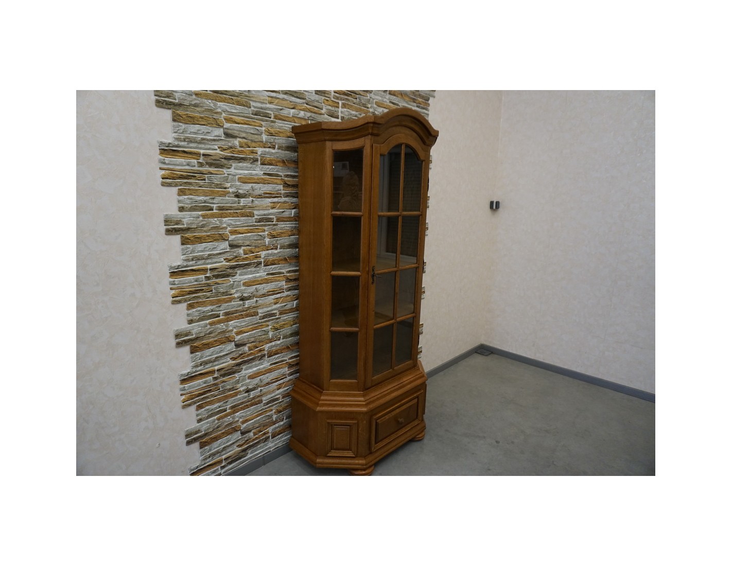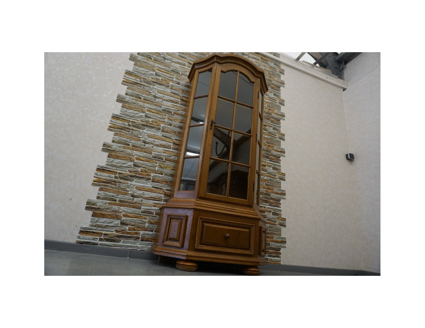 Witryna łączy klasyczną formę z funkcjonalnością, dodając wnętrzu elegancji i charakteru. Doskonała jako element wystroju w stylu tradycyjnym lub rustykalnym.
