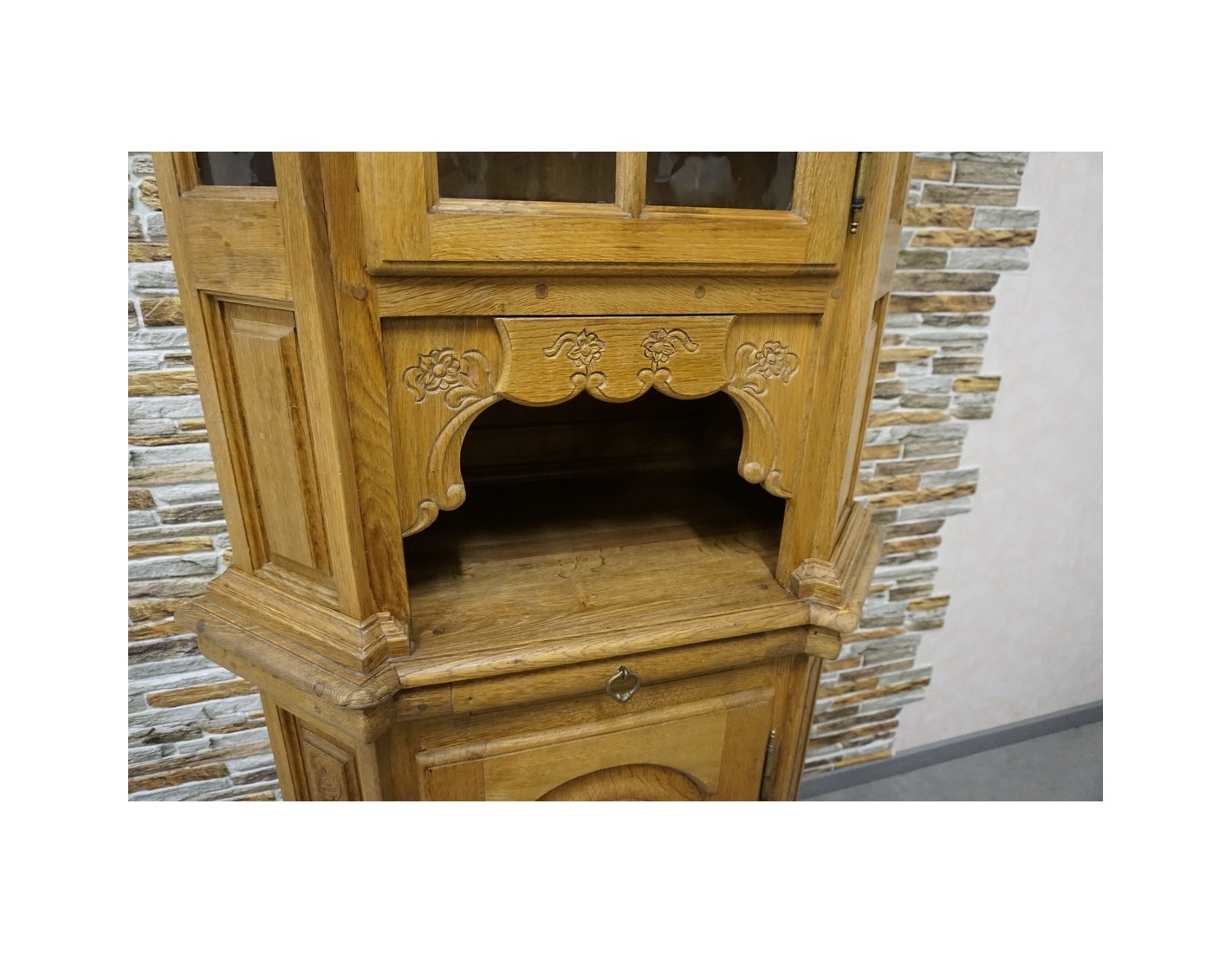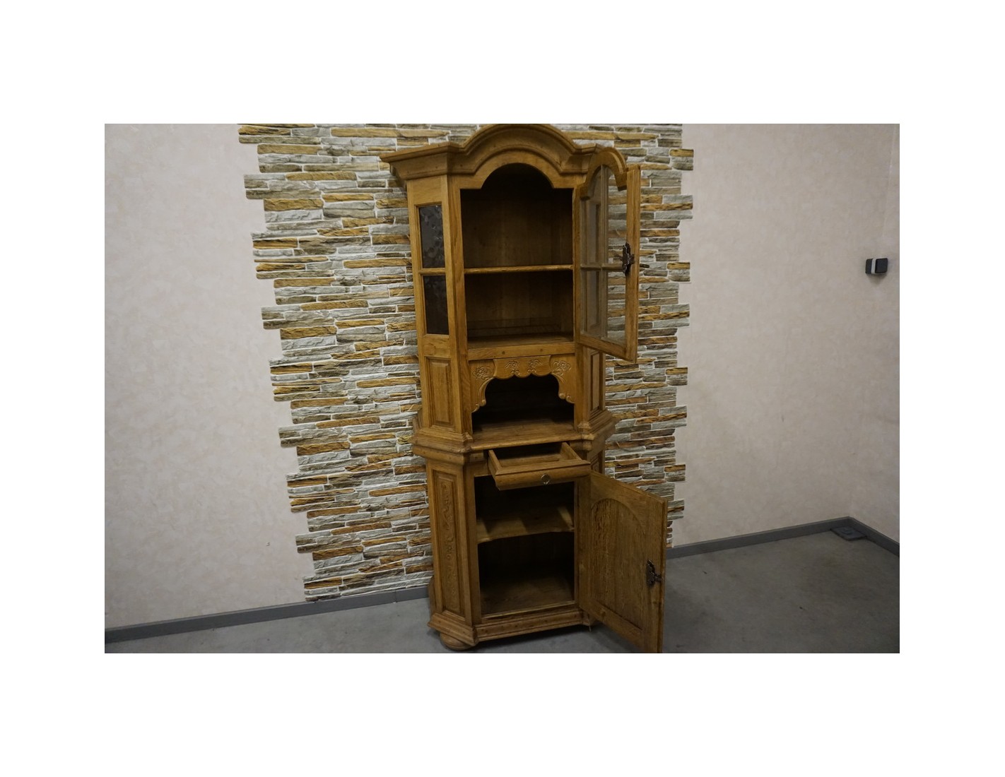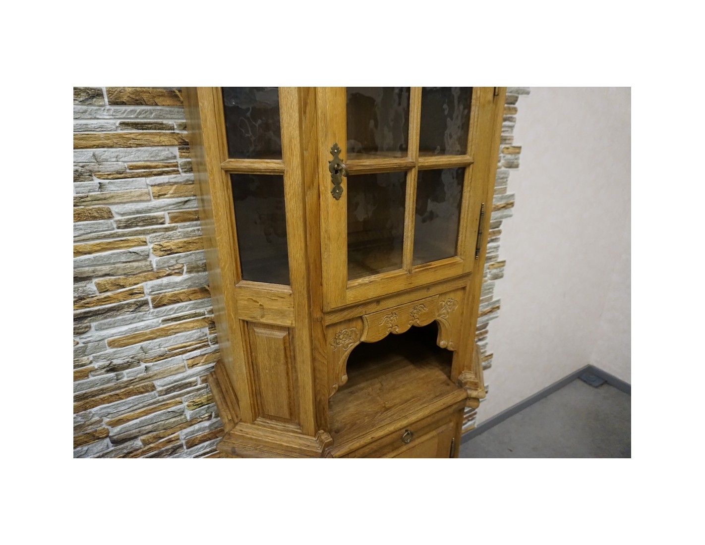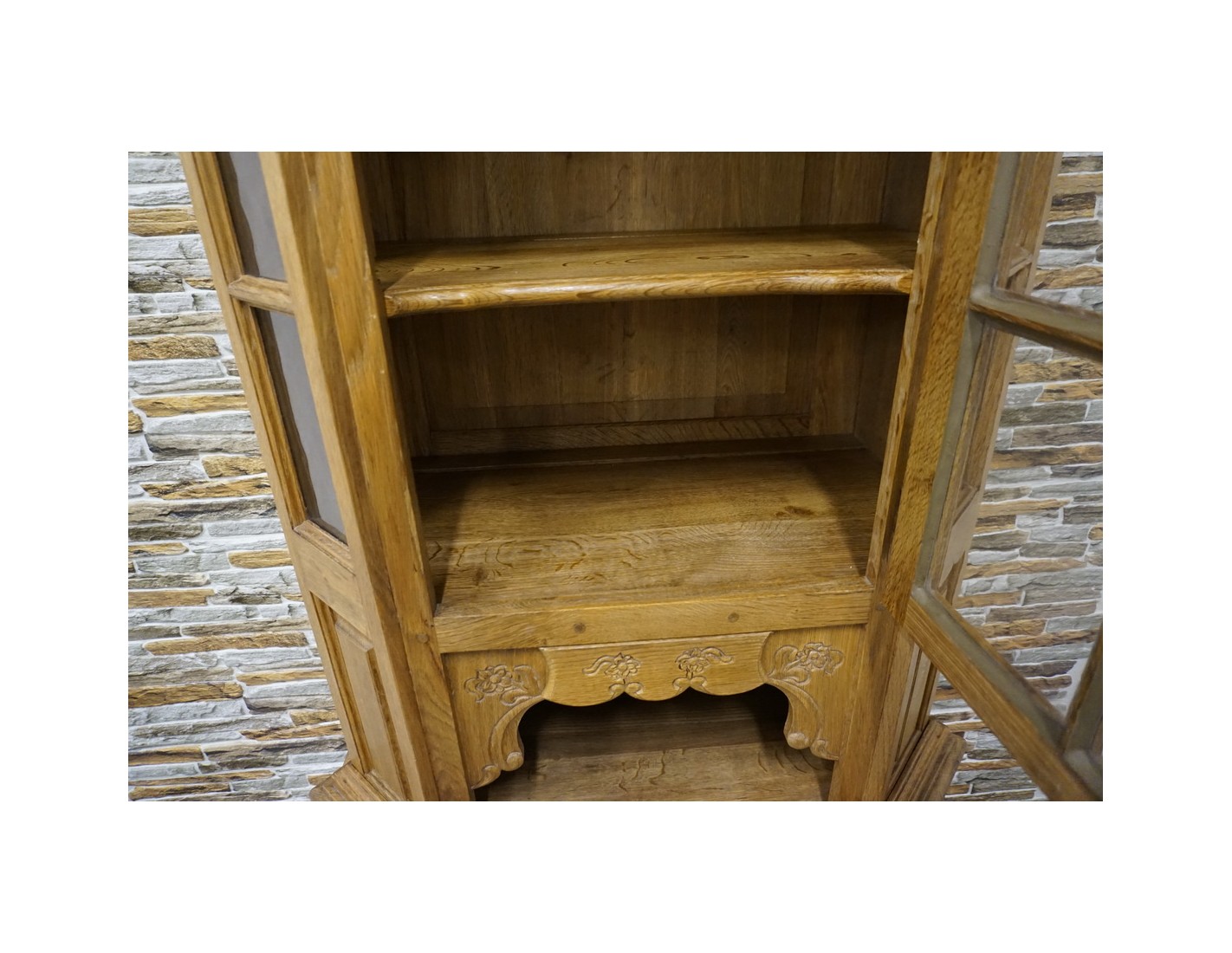 Stylowa i solidna witryna płaska wykonana z litego dębu. Jej klasyczna forma i naturalne wykończenie sprawiają, że doskonale komponuje się z eleganckimi i tradycyjnymi wnętrzami, dodając im ciepła oraz charakteru.