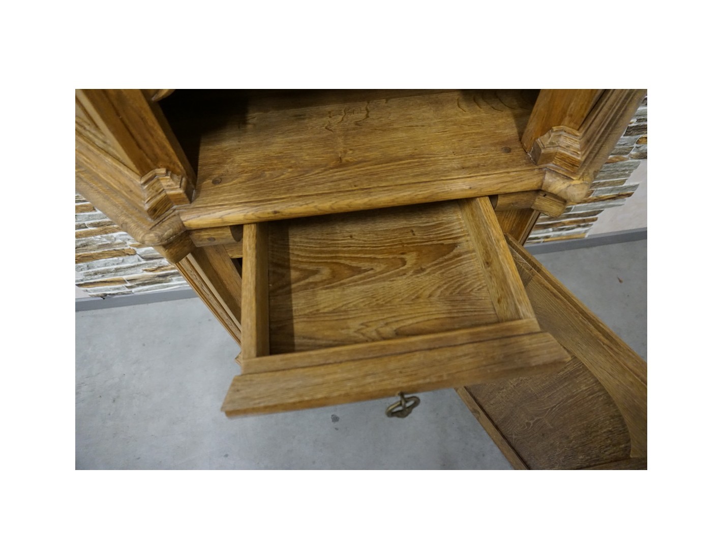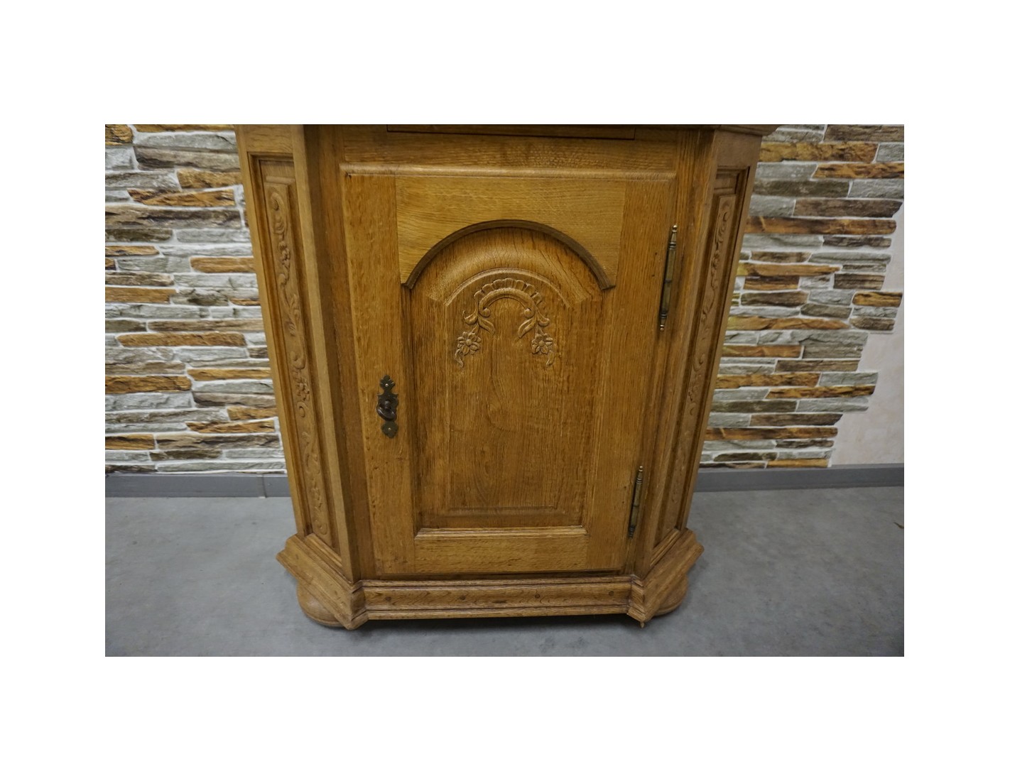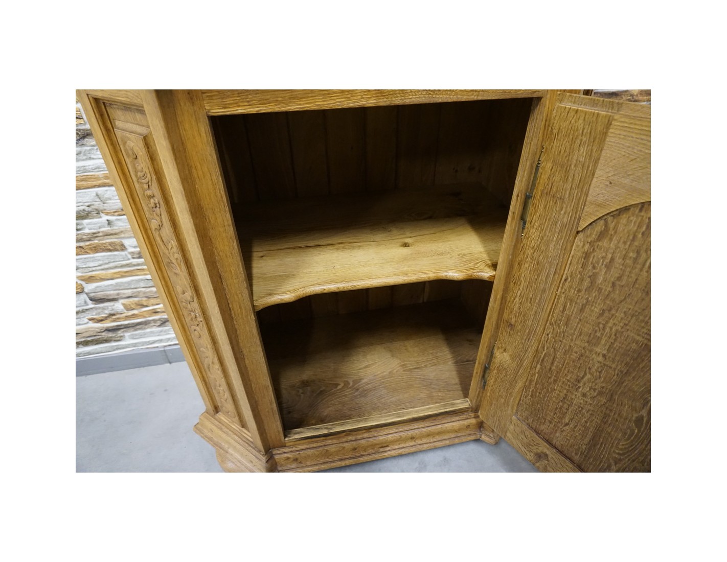 Stylowa i solidna witryna płaska wykonana z litego dębu. Jej klasyczna forma i naturalne wykończenie sprawiają, że doskonale komponuje się z eleganckimi i tradycyjnymi wnętrzami, dodając im ciepła oraz charakteru.