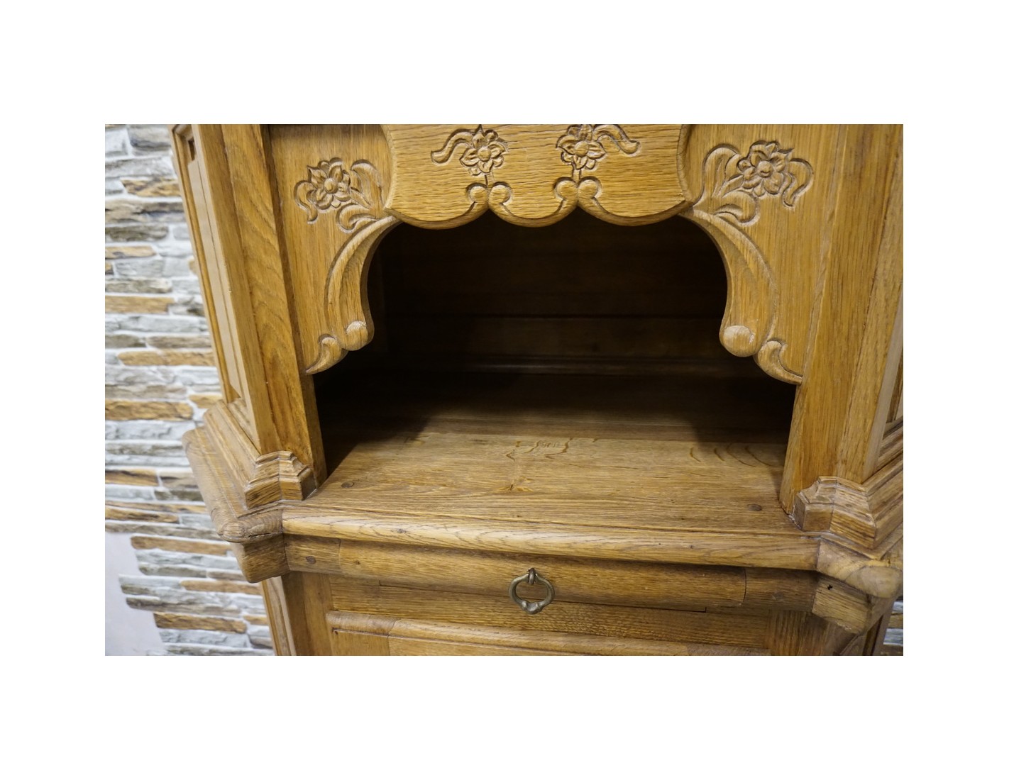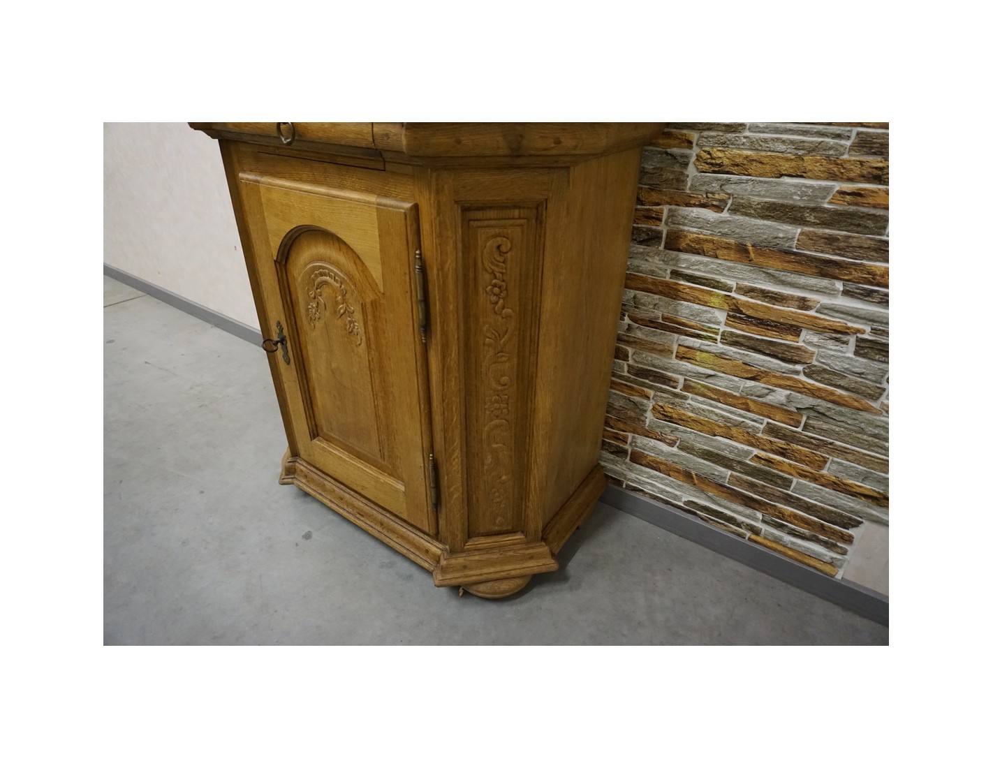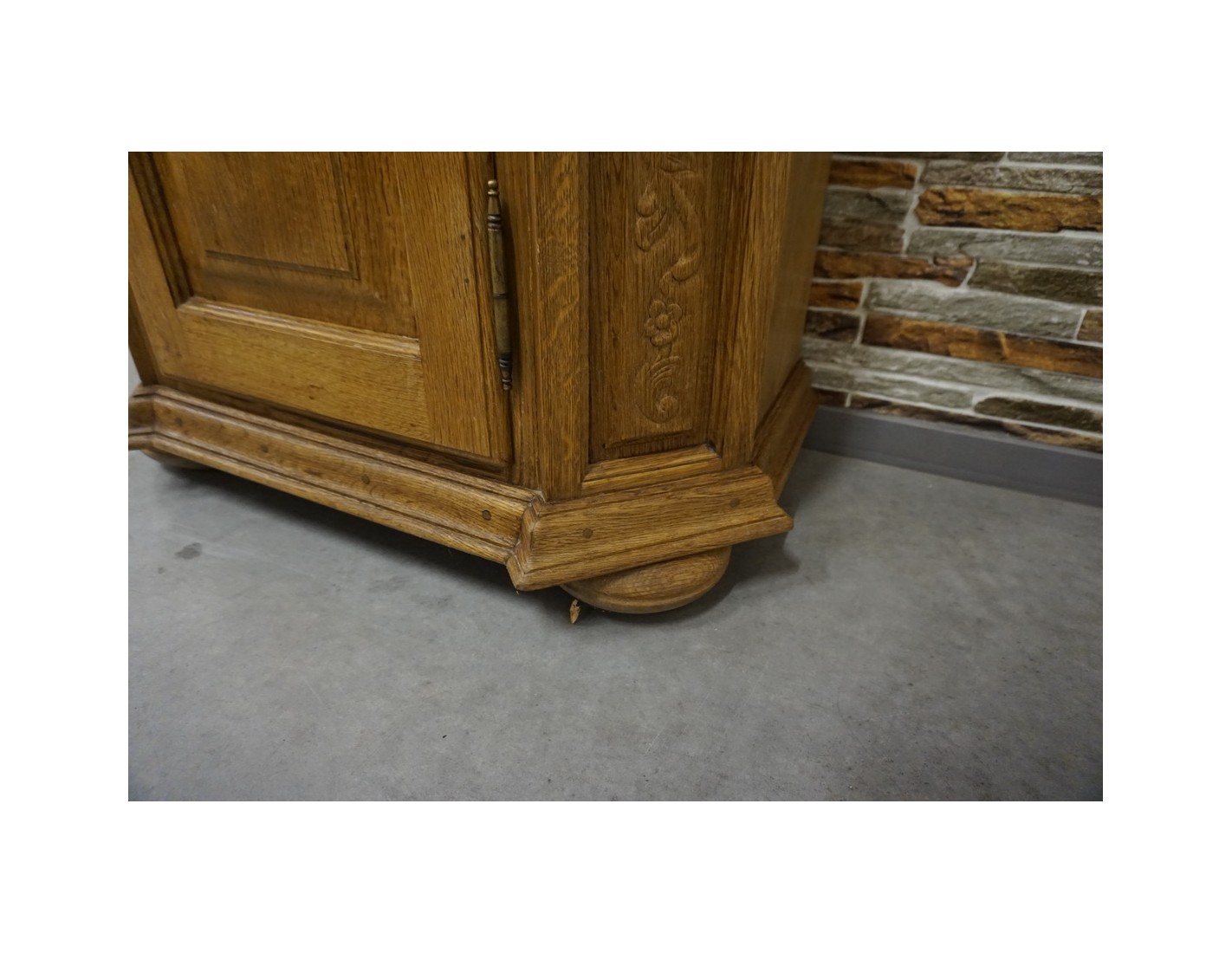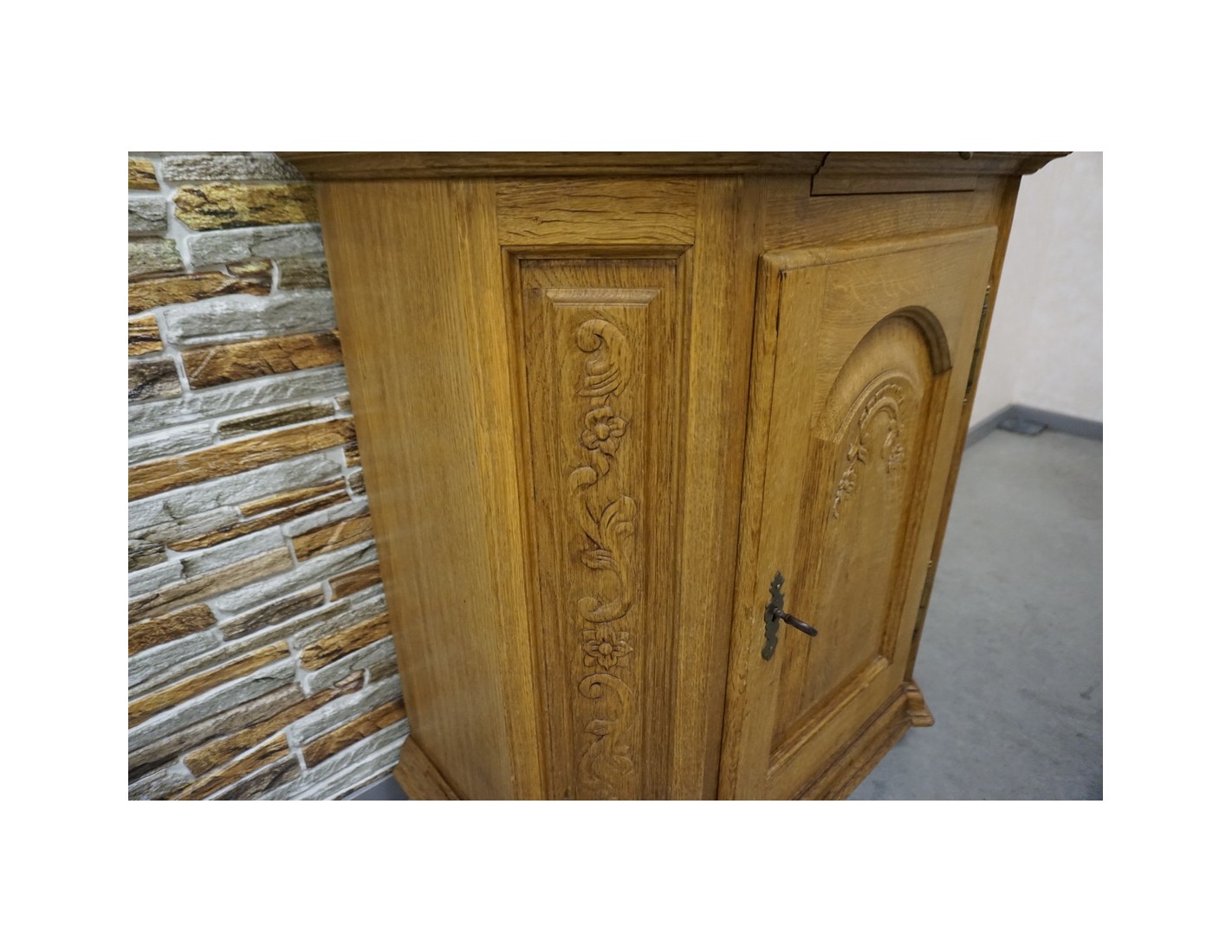 Stylowa i solidna witryna płaska wykonana z litego dębu. Jej klasyczna forma i naturalne wykończenie sprawiają, że doskonale komponuje się z eleganckimi i tradycyjnymi wnętrzami, dodając im ciepła oraz charakteru.
