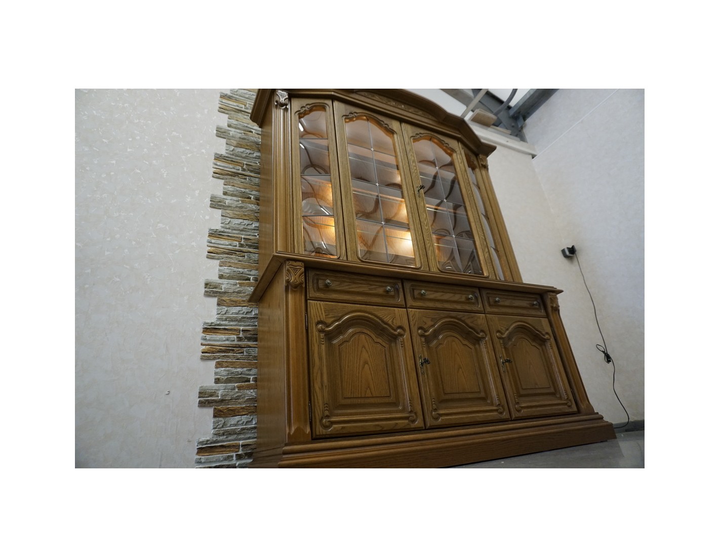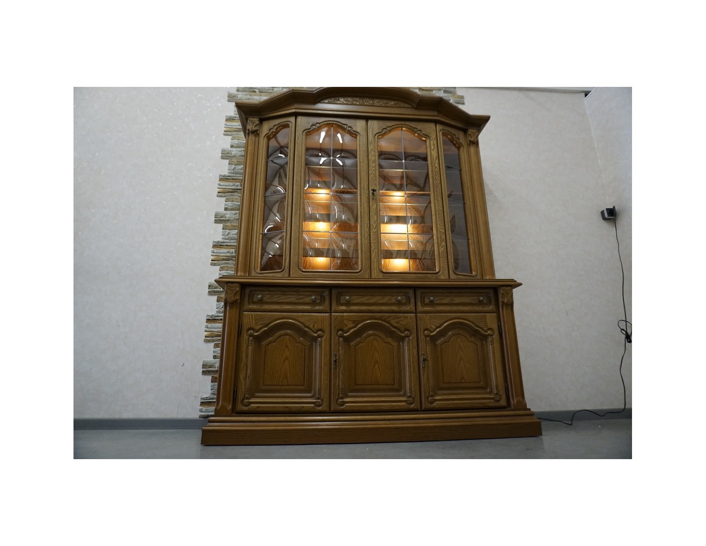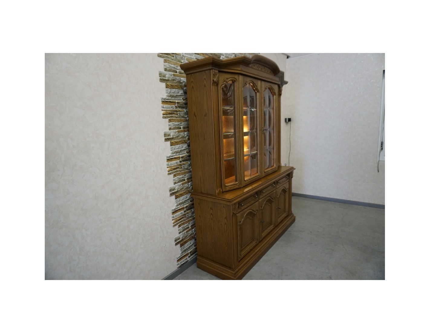 WITRYNA Z KOMODĄ DĘBOWA PODŚWIETLANA
