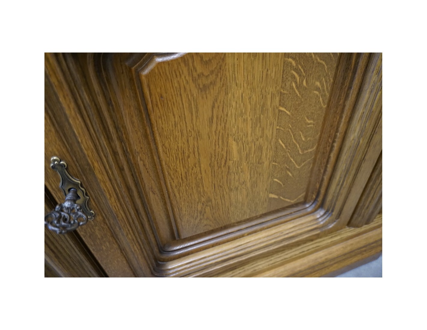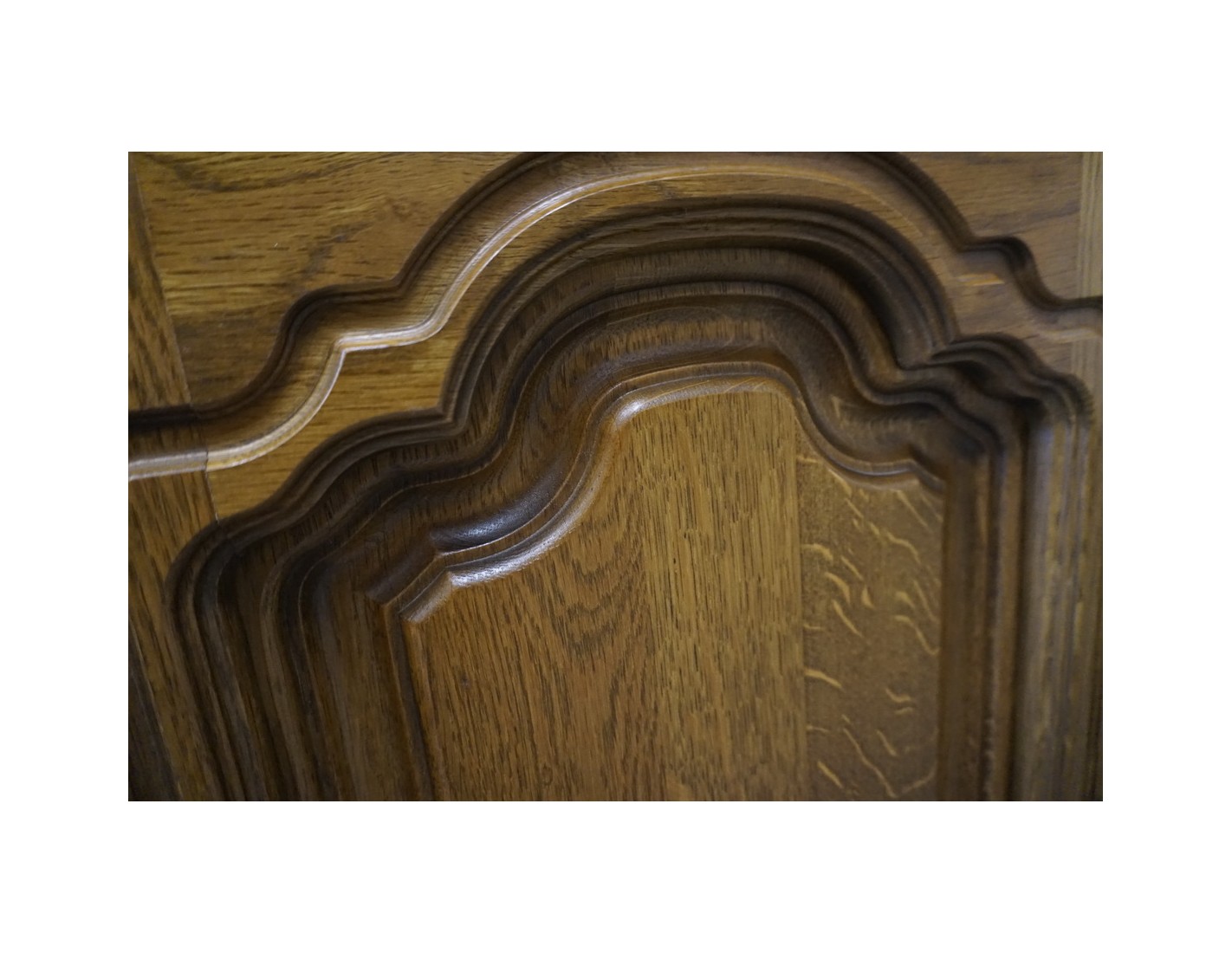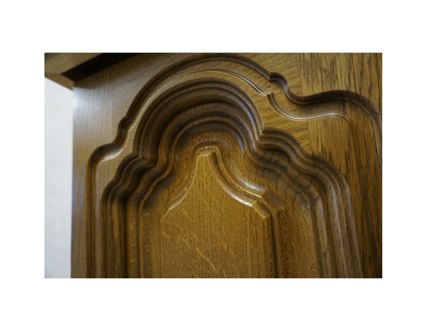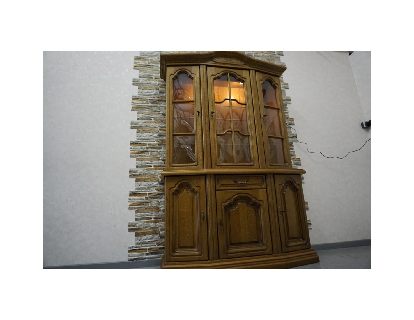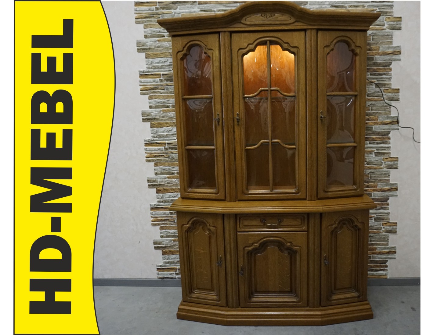 Elegancka witryna z komodą wykonana z drewna dębowego, łącząca klasyczny styl z praktycznymi rozwiązaniami. Mebel doskonale sprawdzi się w salonie, jadalni lub gabinecie, oferując zarówno miejsce do przechowywania, jak i efektowną ekspozycję dekoracji.