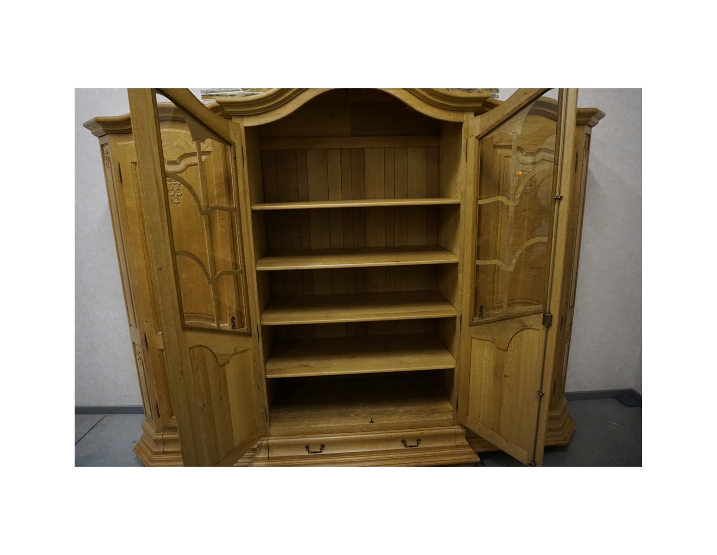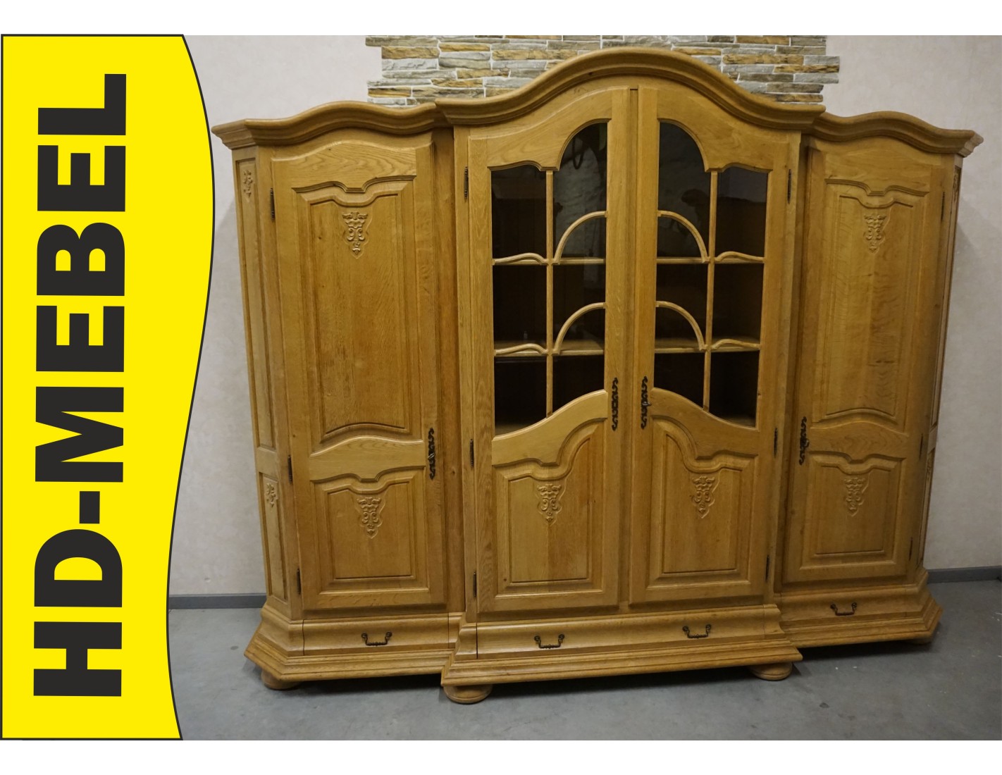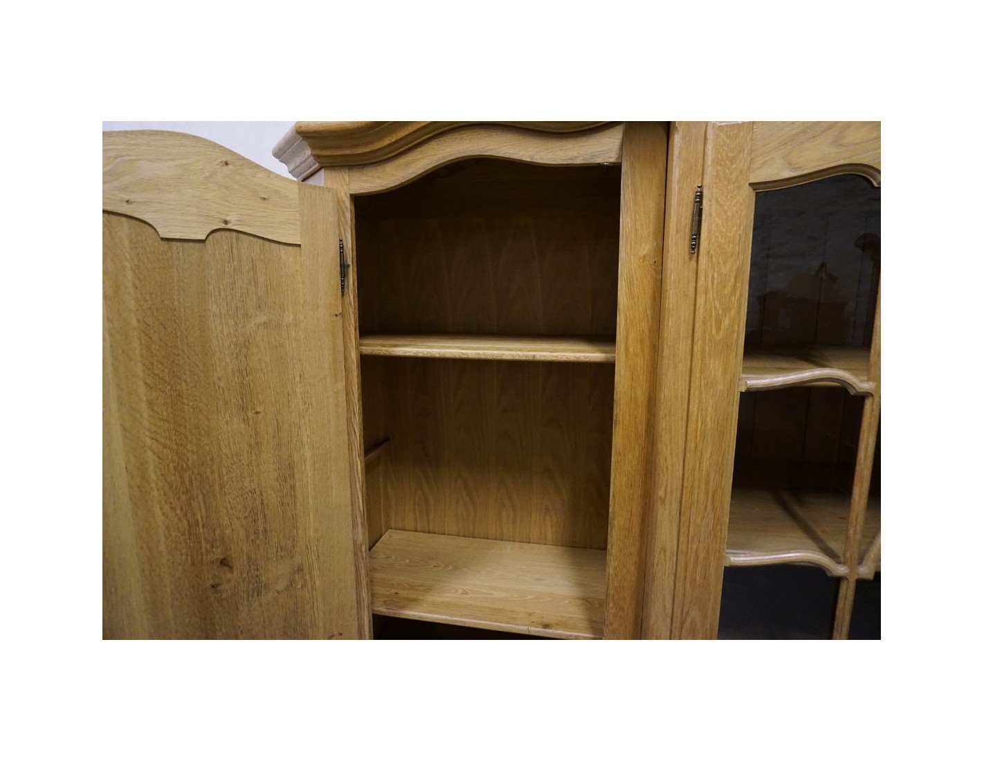 Imponująca witryna z komodą wykonana z litego dębu to wyjątkowy mebel klasy premium, który stanie się centralnym punktem salonu lub jadalni. Duży format oraz elegancka, ponadczasowa forma łączą w sobie reprezentacyjny wygląd z bardzo dużą funkcjonalnością.