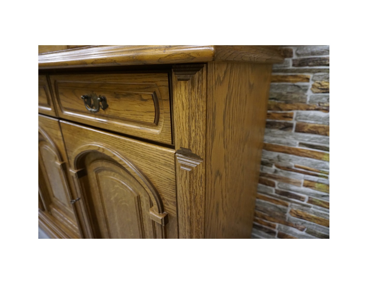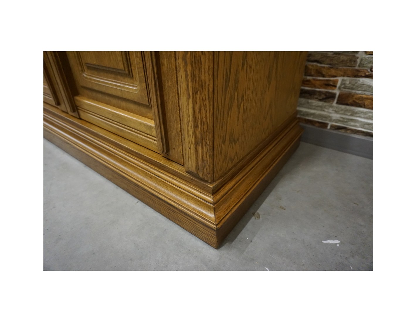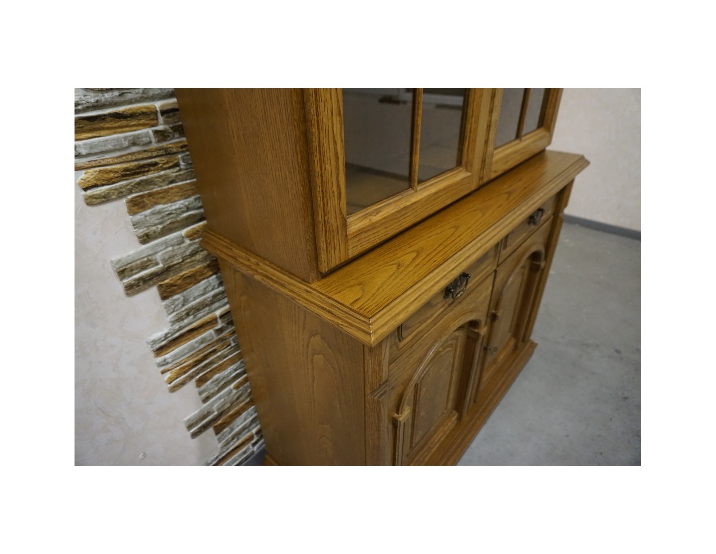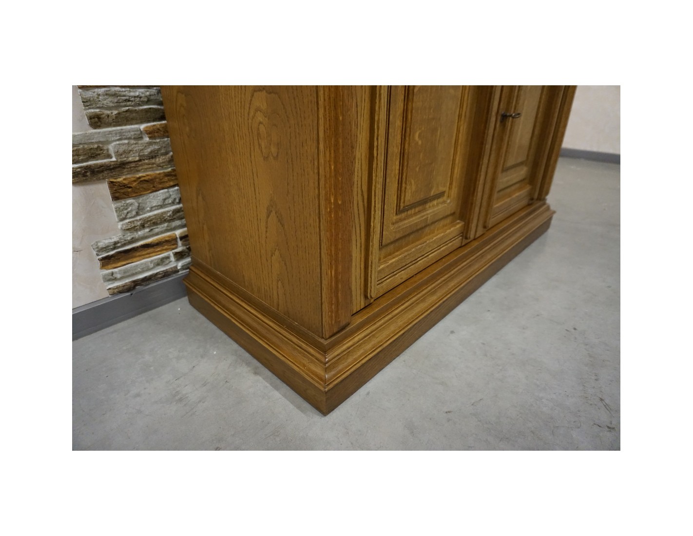 - dębowa witryna z komodą w ciemnym wybarwieniu