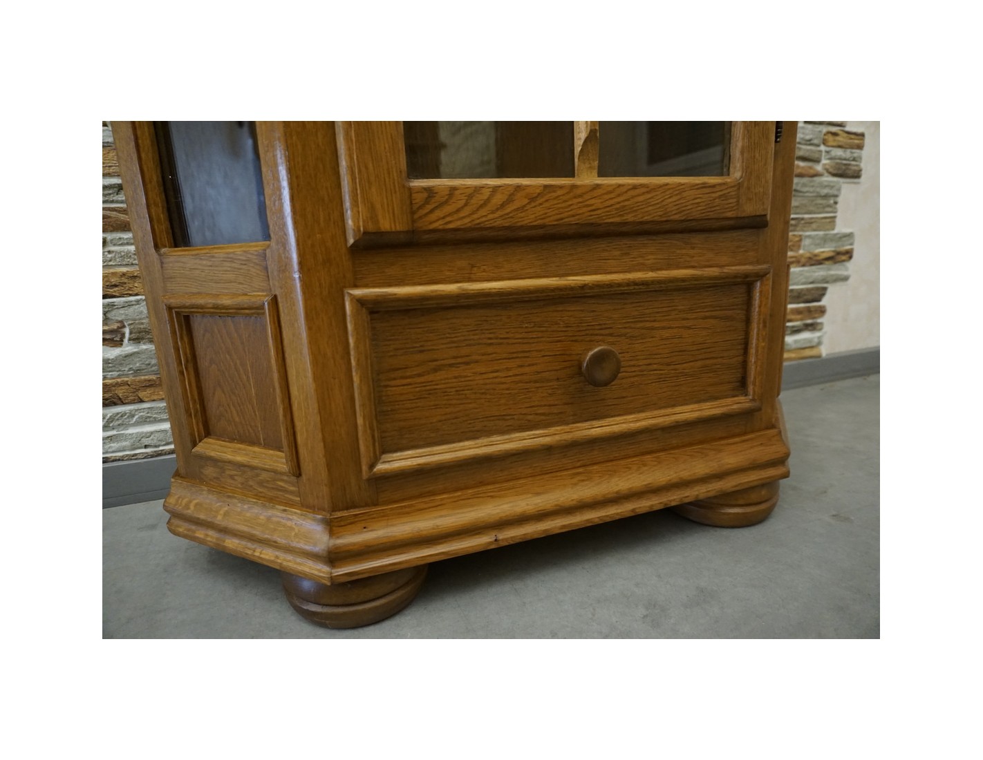Klasyczny design oraz naturalny wygląd drewna sprawiają, że witryna harmonijnie wpasuje się w różne aranżacje – od tradycyjnych po nowoczesne. To doskonałe miejsce do przechowywania i eksponowania szkła, porcelany czy dekoracji.