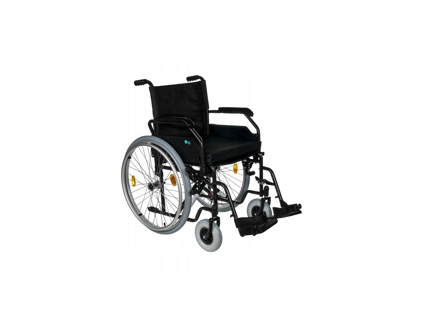 Wózek posiada odchylane boczki, które ułatwiają zsiadanie z wózka, ergonomiczne podłokietniki z poliuretanu, które zwiększają komfort, regulowane i uchylne podnóżki oraz odblaski na kołach, które zwiększają bezpieczeństwo podczas spaceru. Dodatkowo wózek wyposażono w piankową poduszkę, która zapobiega odleżynom. Rama wózka jest składana