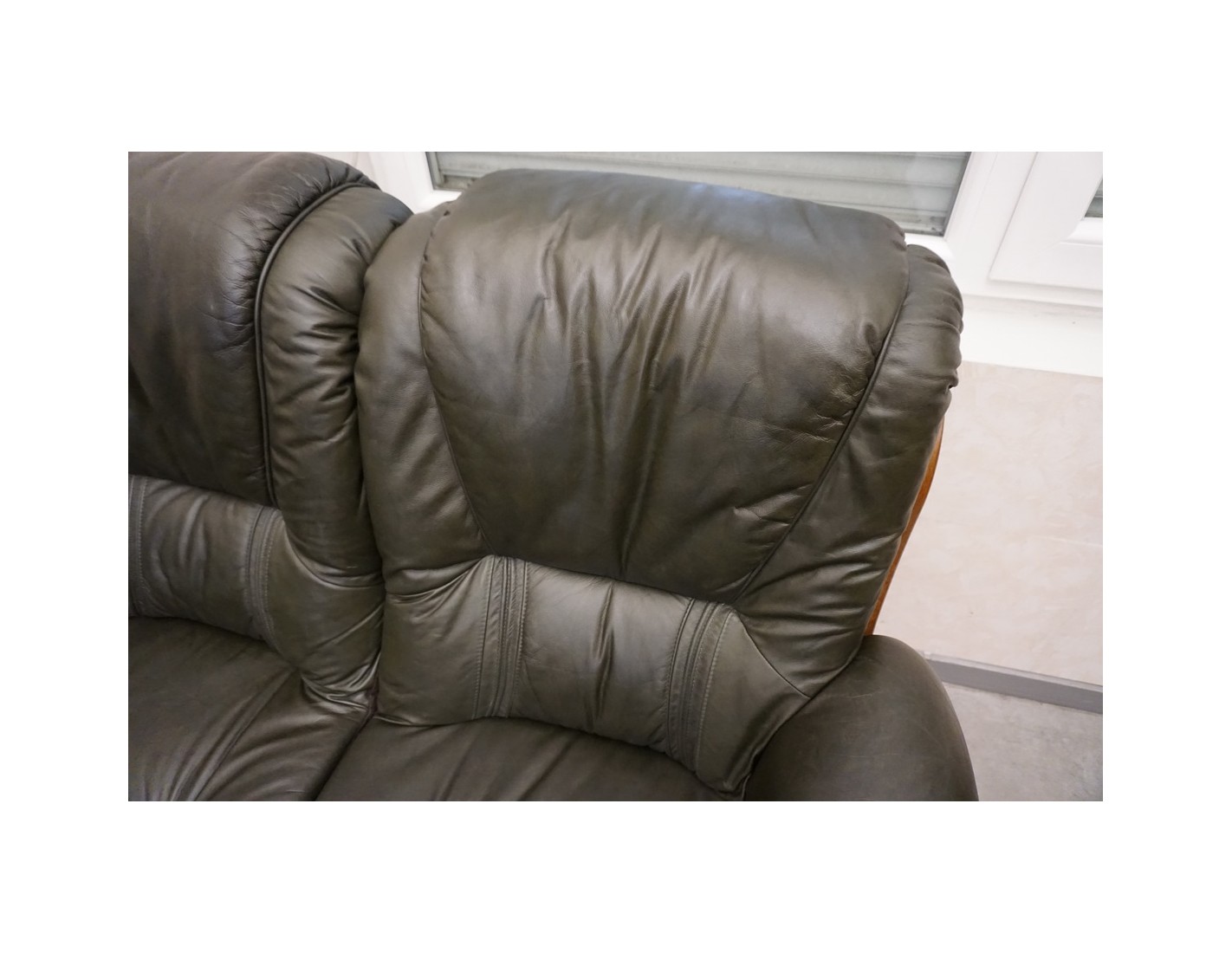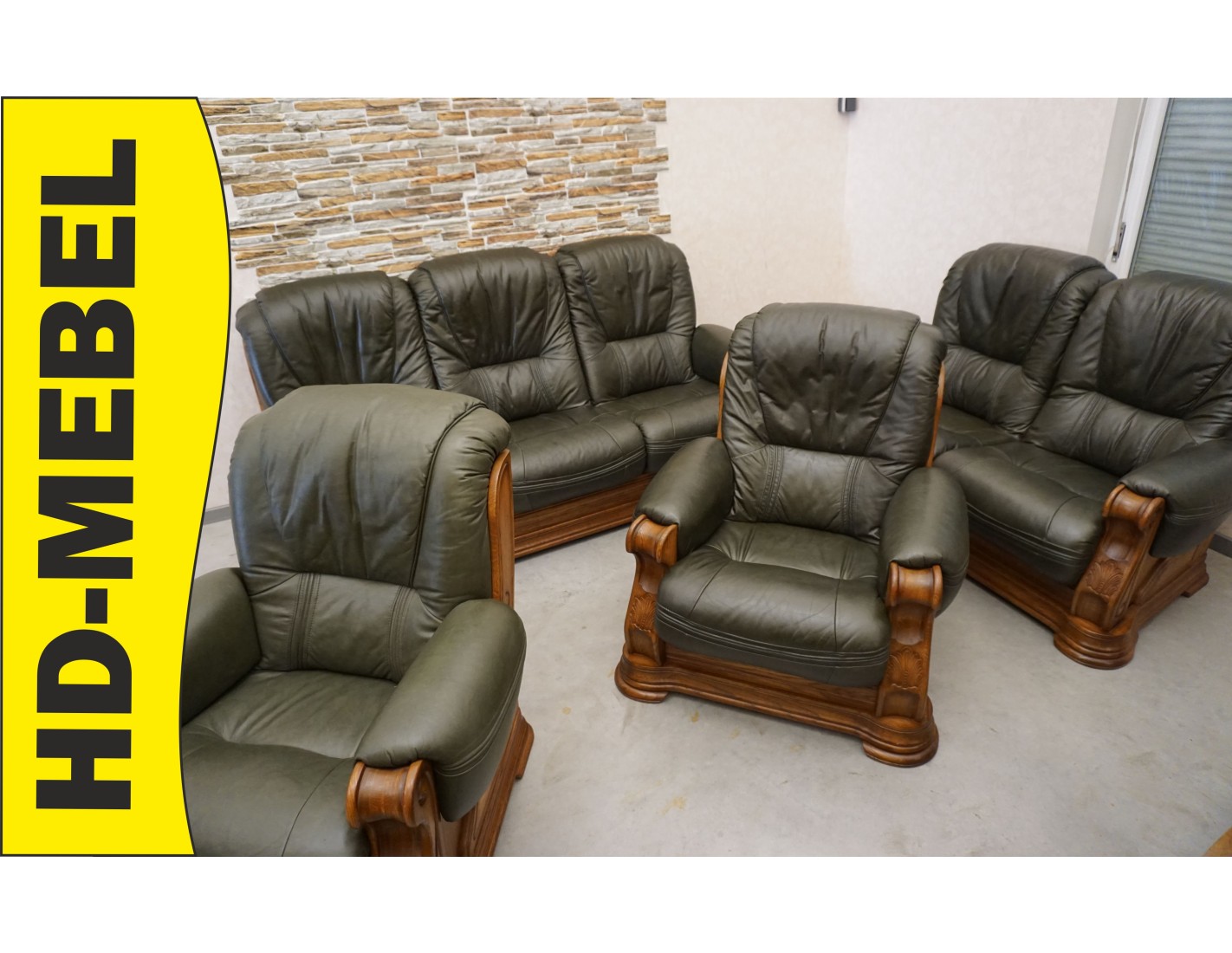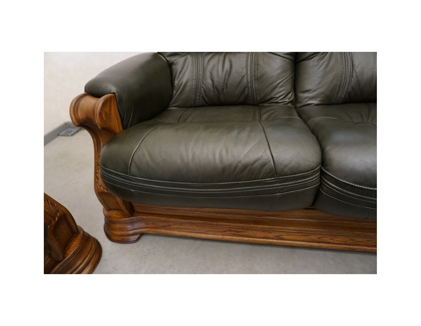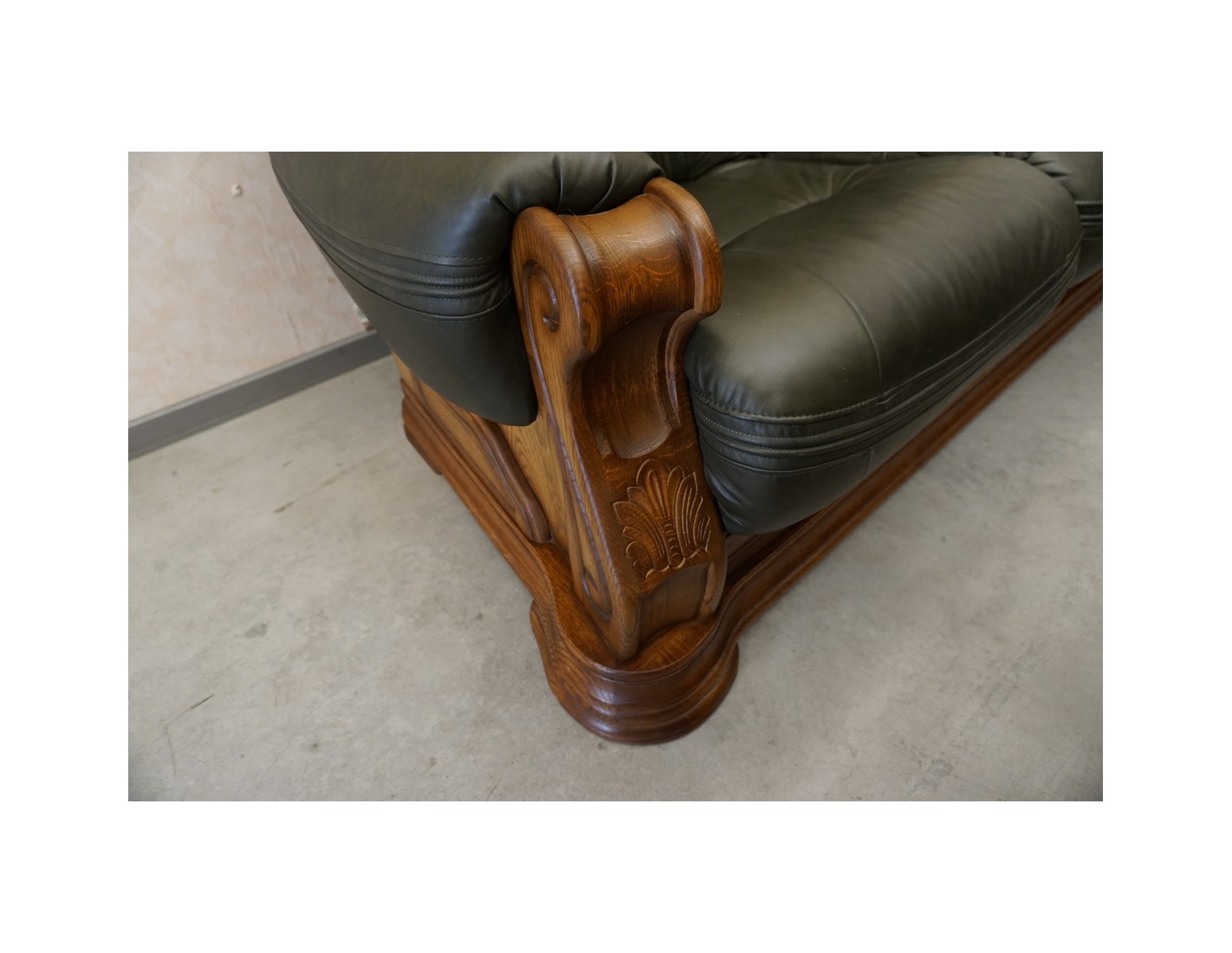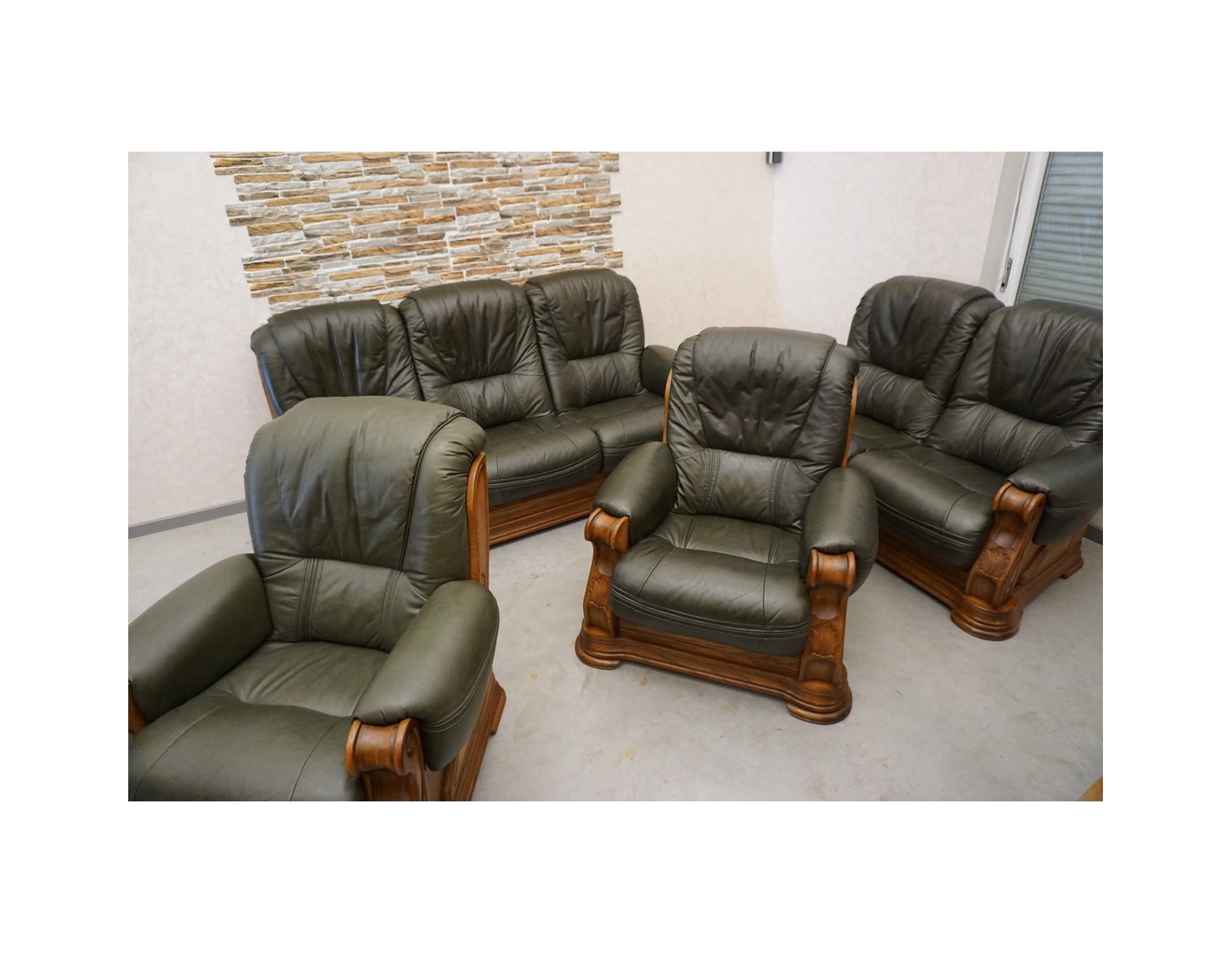 ZESTAW WYPOCZYNKOWY NA STELAŻU DĘBOWYM ZE SKÓRY NATURALNEJ 3+2+1+1
