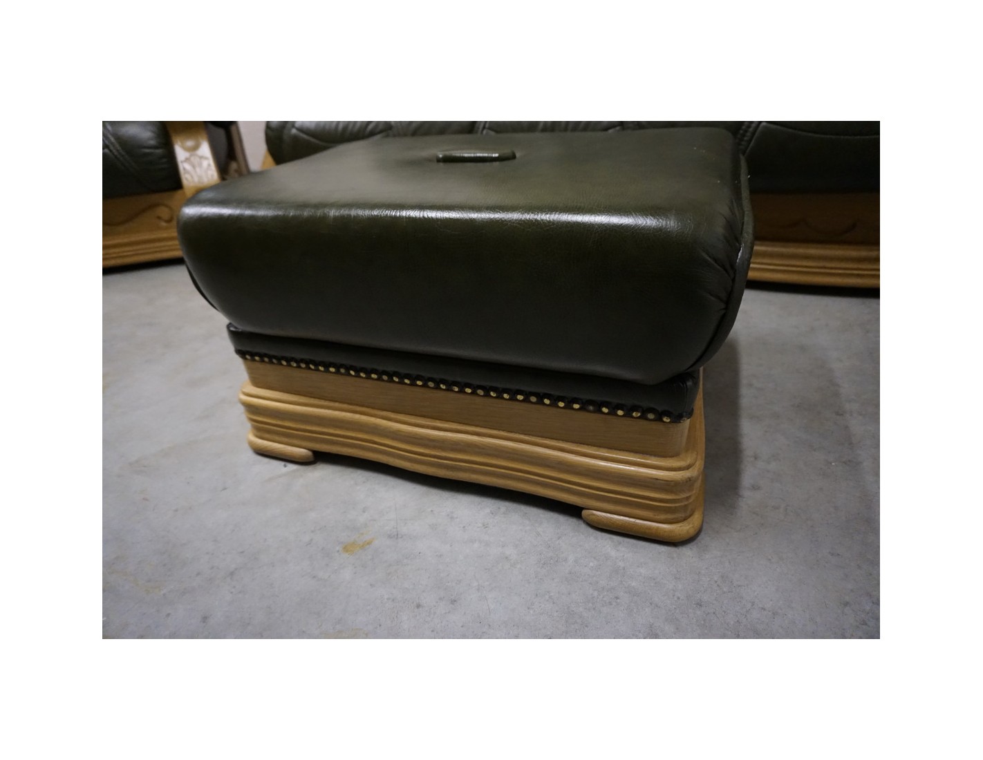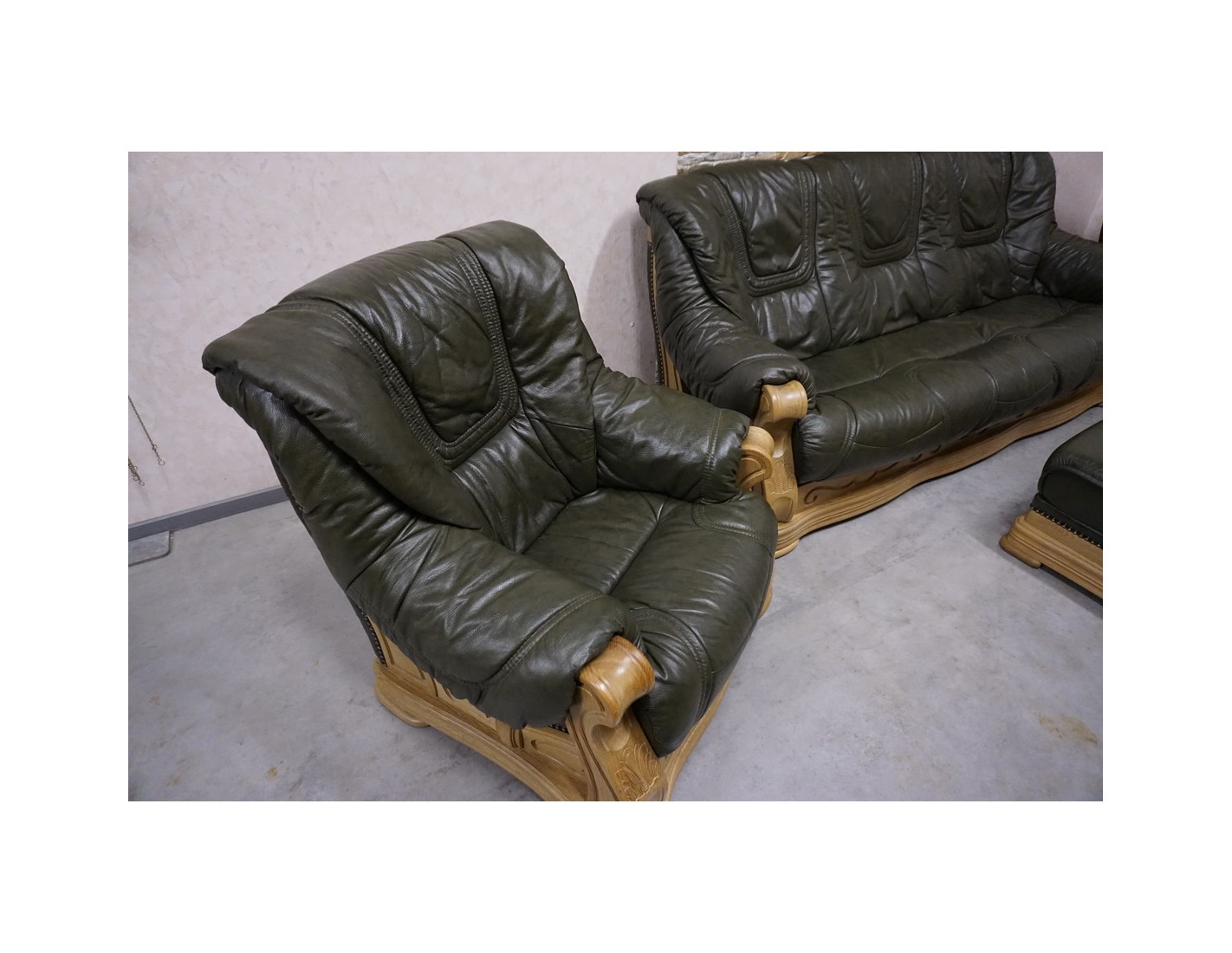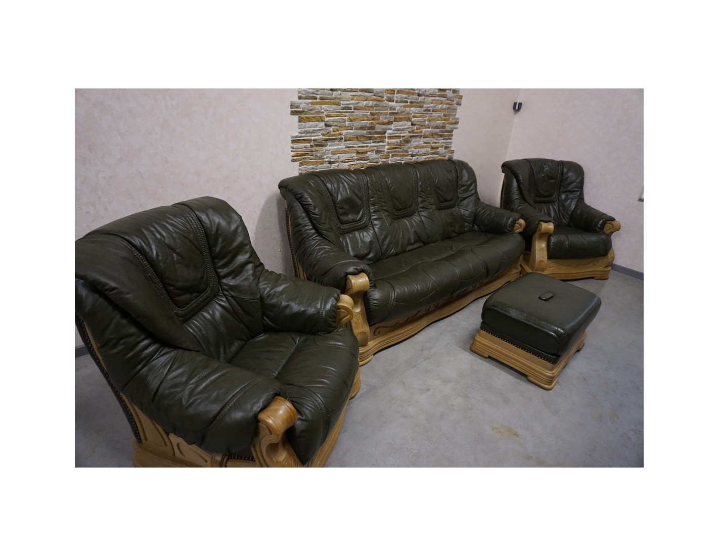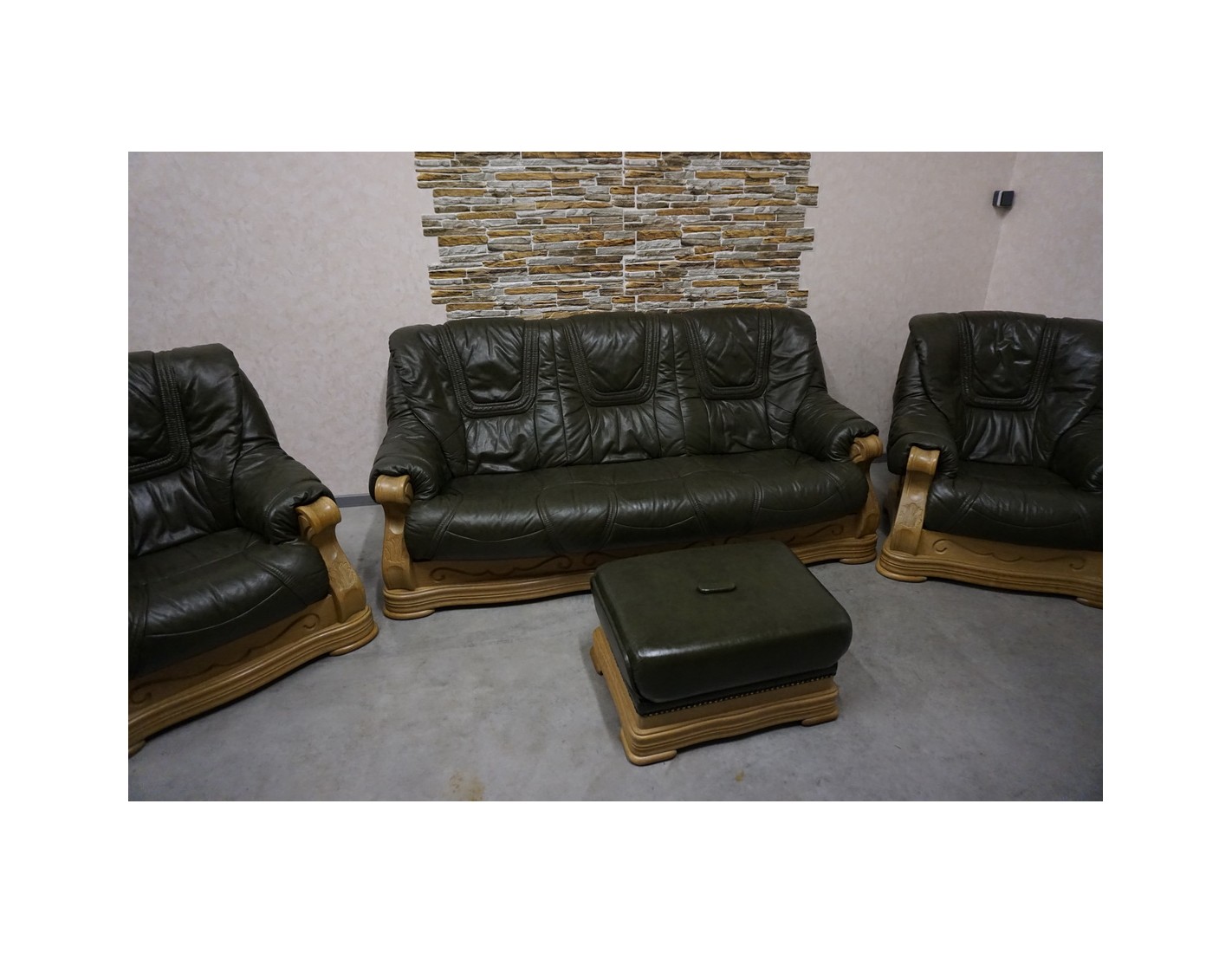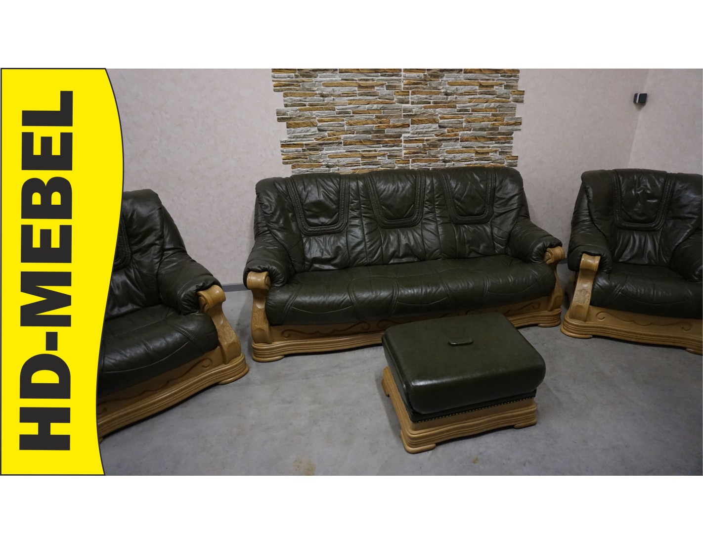 ZESTAW WYPOCZYNKOWY – SKÓRA NATURALNA NA STELAŻU DĘBOWYM 3+1+1+PUFA