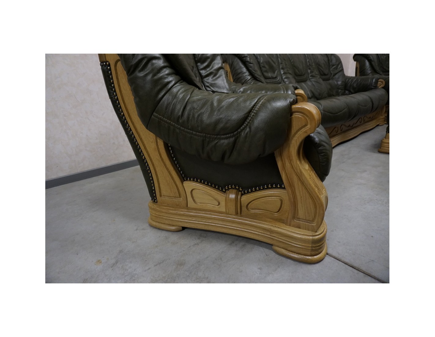 Elegancki i komfortowy zestaw wypoczynkowy wykonany ze skóry naturalnej, osadzony na solidnym stelażu dębowym. Klasyczna forma w połączeniu z naturalnymi materiałami sprawia, że komplet doskonale prezentuje się zarówno w tradycyjnych, jak i bardziej eleganckich wnętrzach.